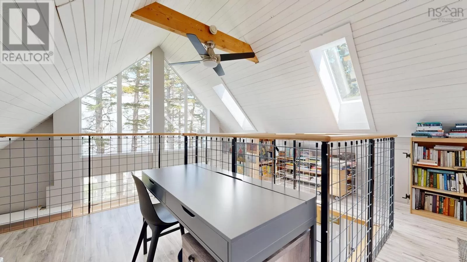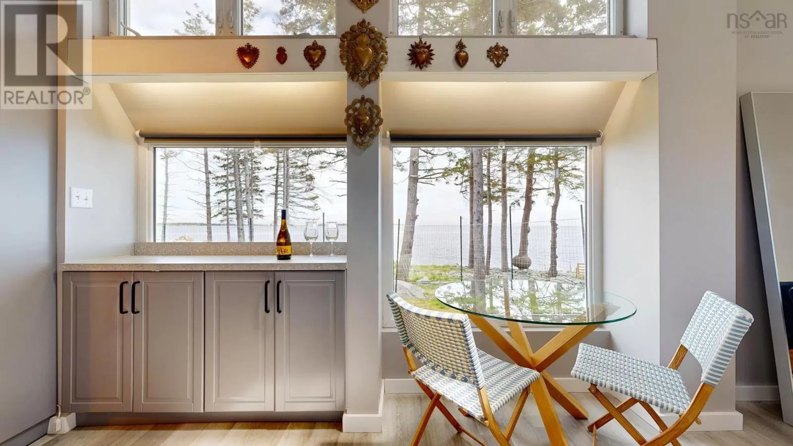 Take Highway 103 to Port Medway Road via Exit 17A, and then turn right on Long Cove Road to civic # 569 on the left. Architecturally designed 2 bedroom chalet featuring stunning ocean views with 230 ft of bold tidal oceanfront. Nestled in a protected cove with an easily walkable rock beach shoreline, this exceptional property combines thoughtful design, natural beauty, and year-round comfort; showcasing a bright and airy living space with expansive floor to ceiling gable windows that flood the home with natural light. Exposed beams, vaulted ceilings, and custom finishes throughout add warmth and character, while storage nooks provide smart and stylish functionality. The open concept layout includes a modern kitchen with stainless steel appliances, seamlessly connecting to the dining and living rooms. A bedroom and a 4-pc bathroom and laundry room complete the main floor. Enjoy your morning coffee in the enclosed sunroom conveniently located off the kitchen while watching the sun rise. A spacious and versatile loft with skylight windows on the upper level makes an ideal primary bedroom with inspiring views of the ocean and starry sky at night. Step outside to a large yard, perfect for gardening, outdoor gatherings around the fire pit, or simply relaxing by the waters edge. This property offers direct access to the ocean, inviting you to enjoy boating, kayaking, swimming, or delight in the playful visiting seals and abundant wildlife, such as herons, owls, ducks, minks, and otters, among others. This one of a kind low maintenance property would make a great vacation retreat or full time home. Located just 15 mins from Liverpool, 1.5 hrs from Halifax, and a short drive to some of Nova Scotias most beautiful white sand beaches. The welcoming community of Port Medway features local gems like Sea Ports Gifts and Treasures, Rosefinch Mercantile and Tea Room, a fire hall community centre with monthly live music and weekly luncheons and bingo, a government wharf with boat launch, the annual Readers' Festival, 2 lighthouses, and the historic Seely Hall, home to art and history exhibit (id:27476)