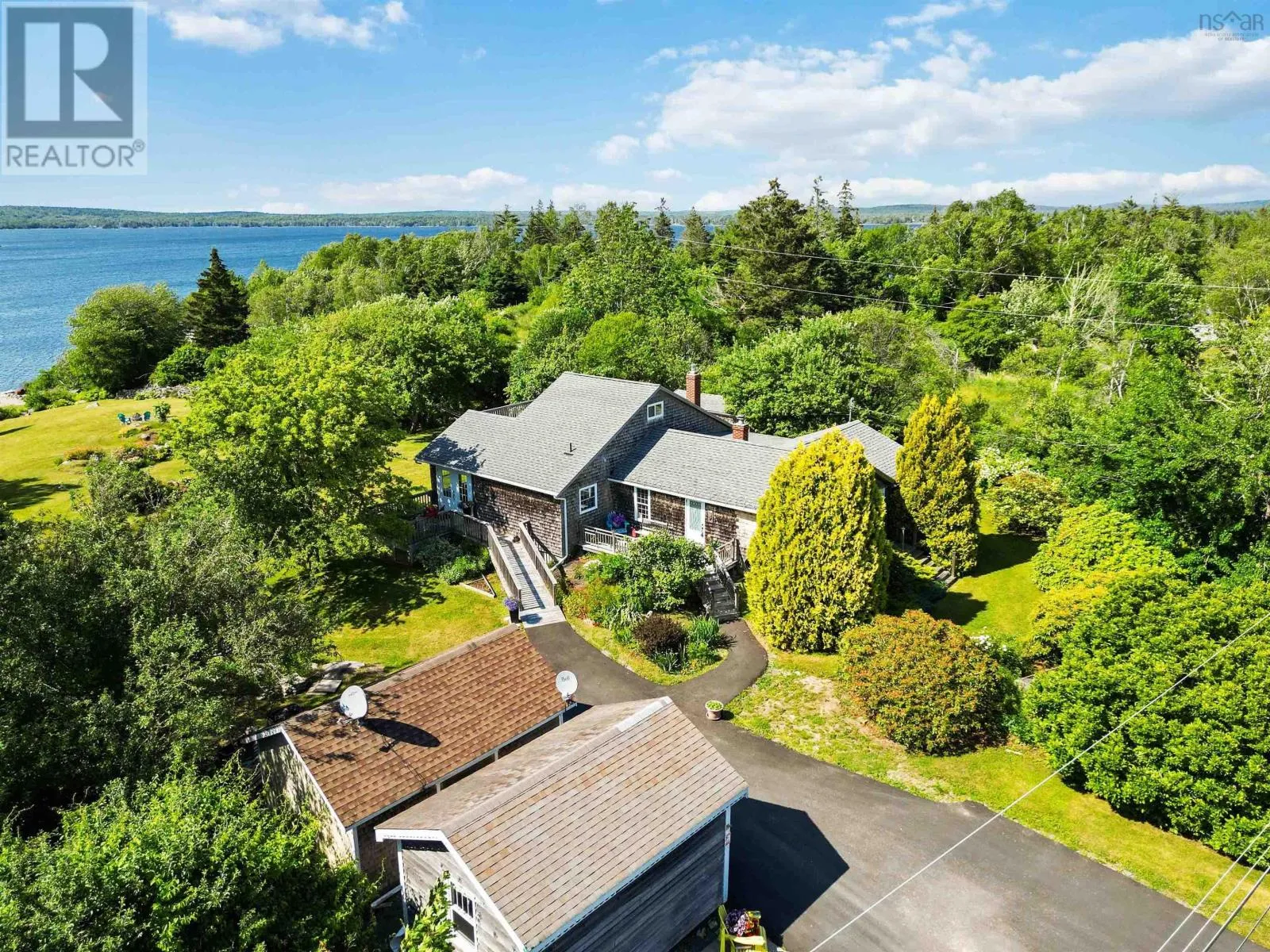 Highway 103 to Exit 17A to Port Medway, left on Roxbury, left on Fostertown Rd. Nestled on a quiet, safe street, is this beautifully landscaped 1.3-acre waterfront property offering privacy, tranquility, and breathtaking ocean views. It is located in the charming coastal village of Port Medway. The grounds are truly exceptional, adorned with mature trees, vibrant shrubs, and perennial flower beds that add colour and charm throughout the seasons. The home is perched at the top of a gently sloping lot, providing elevated views of the gardens, the wharf & the Atlantic Ocean beyond. A true rarity, the property features its own well-maintained wharf and adjacent slipway, providing direct access to the water. At low tide, there is approximately 14 feet of water at the mooring ideal for larger recreational boats. A 16-foot ramp and 10x20-foot float are no longer there but the existing underwater weights remain in place, ready for a future installation. The home is bright, spacious, and thoughtfully maintained. The main floor features a modern kitchen with a large family dining area complete with a propane fireplace, a spacious living room with an office nook, along with two inviting bedrooms, a renovated bathroom and a large laundry room that could be upgraded to a second bathroom. Upstairs, a loft bedroom opens to a private balcony that offers sweeping views of the gardens, the wharf, and Port Medway Harbour. The insulated crawl space and heat pump add energy efficiency and comfort. If the power goes out - no problem. The home has a propane powered 17kw Cummins generator that was installed in 2022. Four outbuildings on the property provide ample room for storage, hobbies, &gardening. Two of these sheds are wired, making them perfect for workshops or studio use. This peaceful retreat is just a short stroll to the village park, local store and gift shop. Whether youre seeking a year-round residence or a seasonal coastal getaway, this Port Medway gem delivers the perfect blend of maritime charm, modern comfort, & practical functionality. (id:27476)