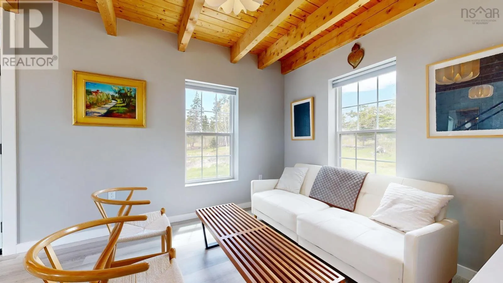 Take Highway 103 to Port Medway Road via Exit 17A, and then turn right on Long Cove Road to civic # 569 on the left. Architecturally designed 2 bedroom chalet featuring stunning ocean views with 230 ft of bold tidal oceanfront. Nestled in a protected cove with an easily walkable rock beach shoreline, this exceptional property combines thoughtful design, natural beauty, and year-round comfort; showcasing a bright and airy living space with expansive floor to ceiling gable windows that flood the home with natural light. Exposed beams, vaulted ceilings, and custom finishes throughout add warmth and character, while storage nooks provide smart and stylish functionality. The open concept layout includes a modern kitchen with stainless steel appliances, seamlessly connecting to the dining and living rooms. A bedroom and a 4-pc bathroom and laundry room complete the main floor. Enjoy your morning coffee in the enclosed sunroom conveniently located off the kitchen while watching the sun rise. A spacious and versatile loft with skylight windows on the upper level makes an ideal primary bedroom with inspiring views of the ocean and starry sky at night. Step outside to a large yard, perfect for gardening, outdoor gatherings around the fire pit, or simply relaxing by the waters edge. This property offers direct access to the ocean, inviting you to enjoy boating, kayaking, swimming, or delight in the playful visiting seals and abundant wildlife, such as herons, owls, ducks, minks, and otters, among others. This one of a kind low maintenance property would make a great vacation retreat or full time home. Located just 15 mins from Liverpool, 1.5 hrs from Halifax, and a short drive to some of Nova Scotias most beautiful white sand beaches. The welcoming community of Port Medway features local gems like Sea Ports Gifts and Treasures, Rosefinch Mercantile and Tea Room, a fire hall community centre with monthly live music and weekly luncheons and bingo, a government wharf with boat launch, the annual Readers' Festival, 2 lighthouses, and the historic Seely Hall, home to art and history exhibit (id:27476)