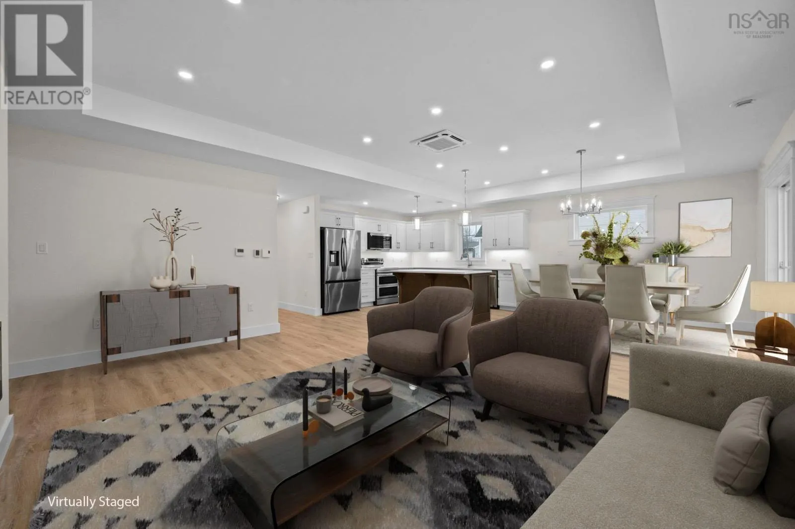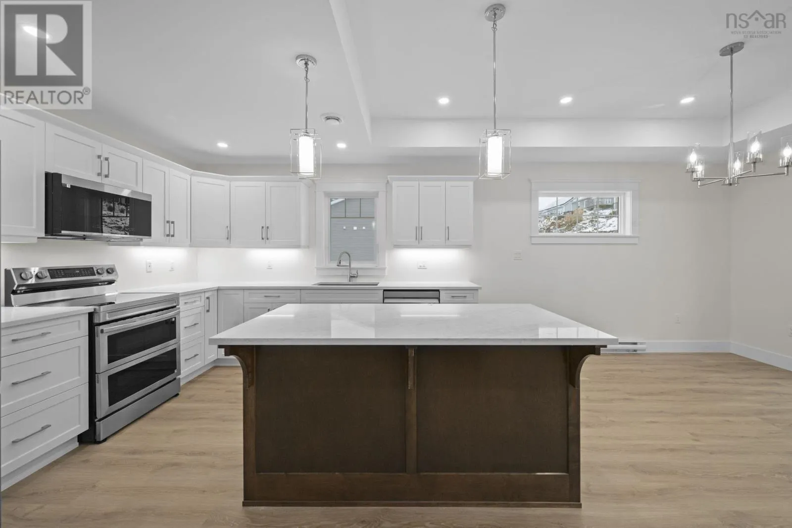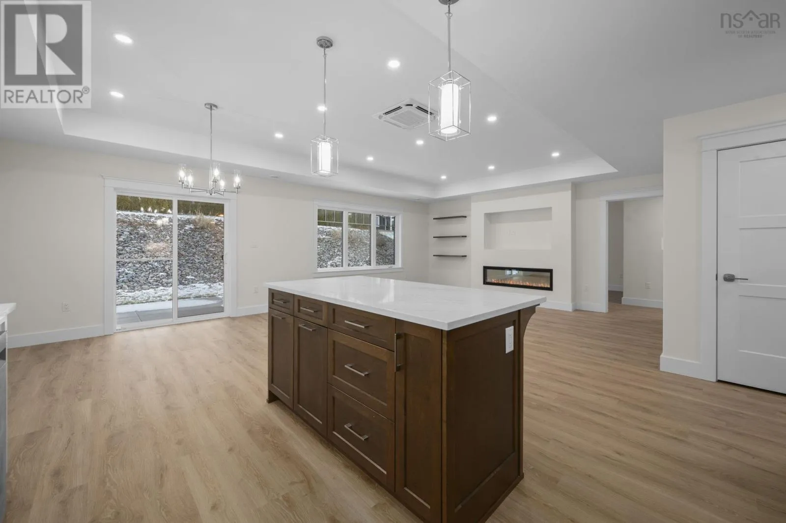 Highway 358 to Starr Points Road to Collins Road to Leaside Court New one level energy efficient home located in popular Lawrence Gate Subdivision. This 1,458 sf house is ideal for anyone wanting the convenience of limited maintenance that a new home provides. The main living area is an open concept Kitchen, Living and Dining rooms. The Kitchen features a large sit-up island, quartz countertops, appliances, and a nearby pantry with its own countertop and storage galore. The Living/Dining rooms feature a tray ceiling with lots of pot lights on dimmers, as well as an entertainment wall with an electric fireplace and a recess for a flush mounted TV. The Primary Suite offers an ensuite bath with large five ft shower with seat, as well as a very spacious walk-in closet. The two other Bedrooms can be used for that purpose , or one could be used as a Den. A large second bath is nearby, with the laundry tucked in one corner (washer/dryer included). Other features include an energy efficient hybrid hot water tank, a covered front veranda, a partially covered rear patio and an oversized single car garage, providing lots of storage. The lot has been sodded and the driveway paved. The listing Agent acknowledges that he is the owner of Morse Construction. (id:27476)