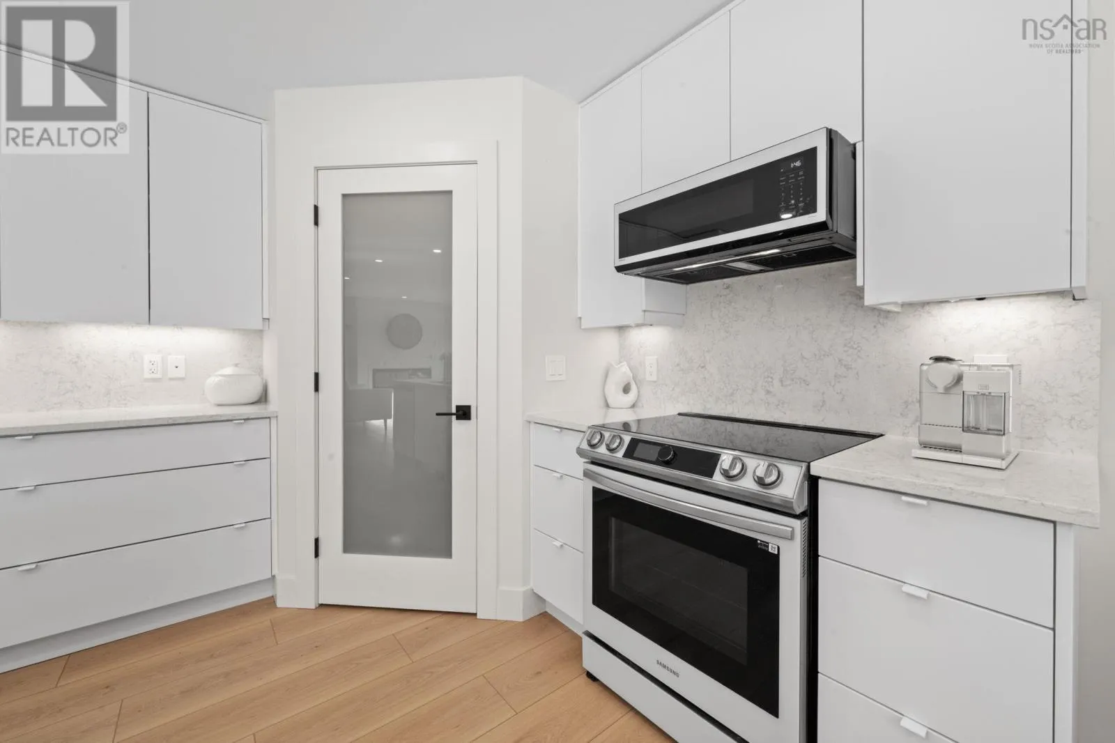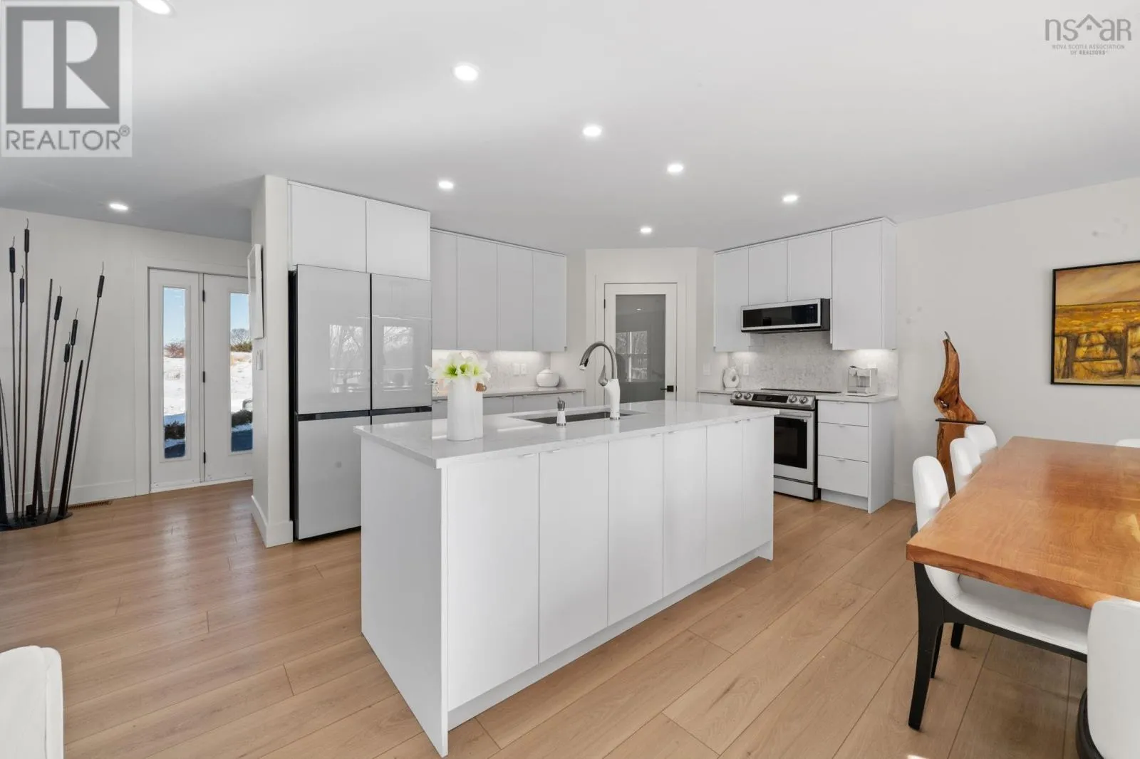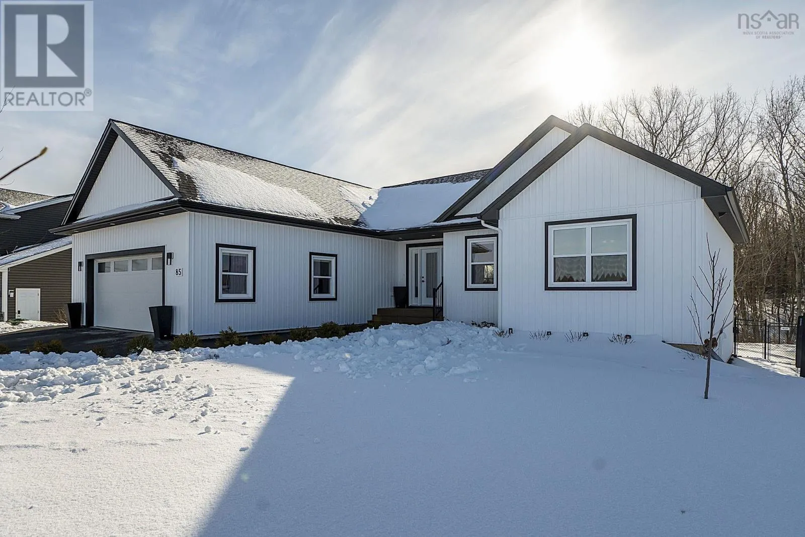from Hwy 101 take Exit 11, go North on Hwy 358, turn right onto Collins Road and left onto Steepleview. Property on left hand side. 85 Steeple View Drive - A composed residence defined by light, layout, and luxury. This 2,980 sq. ft. home occupies a 12,001 sq. ft. parcel, selected for its slight valley outlook and adjacency to protected treed lands. Interior finishes are cohesive and intentional, anchored by continuous flooring that unifies the main living spaces. The kitchen is thoughtfully planned, offering ample cabinetry, quartz countertops by HanStone, and a central island with integrated wine refrigeration and additional storage. Three bedrooms on the main level provide flexibility for both family living and single-level lifestyles. The primary suite features a generous walk-in closet and a well-considered ensuite with a freestanding soaker tub. Remote-controlled blinds and an electric fireplace contribute to comfort and ease throughout the main living area. The lower level offers a bright walk-out space currently used as a design studio, along with a 214 sq. ft. laundry room equipped with an industrial stainless-steel sink, supporting a range of practical uses as well as nearby full size bathroom. Two additional windowed rooms offer future development potential. Outdoor spaces have been designed with longevity in mind, with composite decking at both the front and rear of the home. The rear deck, approximately 35 x 11 , overlooks professionally sodded and fenced grounds supported by irrigation, newly established trees and shrubs, curated garden beds, and a seating area suited to quiet enjoyment. A nearby pathway offers access to walking trails and a park, reinforcing the sense of privacy balanced with connection to the surrounding neighbourhood. (id:27476)