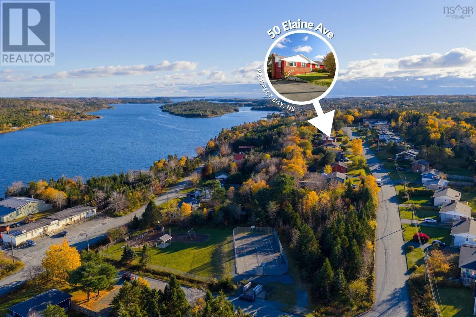 Prospect Rd to Prospect Bay Rd. Turn right onto Pinedale Dr. Turn left onto Elaine Ave. Destination will be on the left. Welcome home to 50 Elaine Avenue in scenic Prospect Bay - a cherished family home for over five decades. This roomy 5-bedroom, 2-bathroom bungalow offers 2,652 square feet of comfortable living space on a professionally landscaped 16,205 square foot lot with deeded ocean access. This well-maintained home features a spacious oak kitchen with abundant cabinet space, flowing seamlessly into the dining and living areas where you can enjoy captivating Prospect Bay views. The main level provides convenient one-level living with 4 bedrooms (one currently used as laundry) including a primary bedroom with ensuite. The walk-out lower level opens up exciting possibilities with a spacious rec room, family room, 5th bedroom, and rough-in for an additional bathroom-ideal for extended family living or income suite potential. Recent upgrades include a new chimney (2026), new roof (2026), drilled well (2023) and fresh exterior paint. The home also boasts an energy-efficient ductless heat pump for year-round comfort and a fully automated emergency generator ensuring peace of mind during power outages. Situated on a quiet street in an established neighbourhood, enjoy the convenience of a playground, convenience store, NSLC and school bus service all within walking distance, and an easy 25-minute commute to Downtown Halifax. With proximity to trails, golf courses, and coastal amenities, this is the perfect place to set down roots in Nova Scotia. (id:27476)