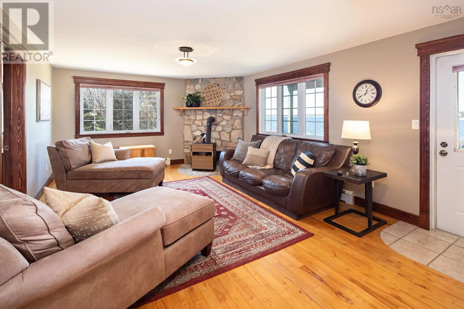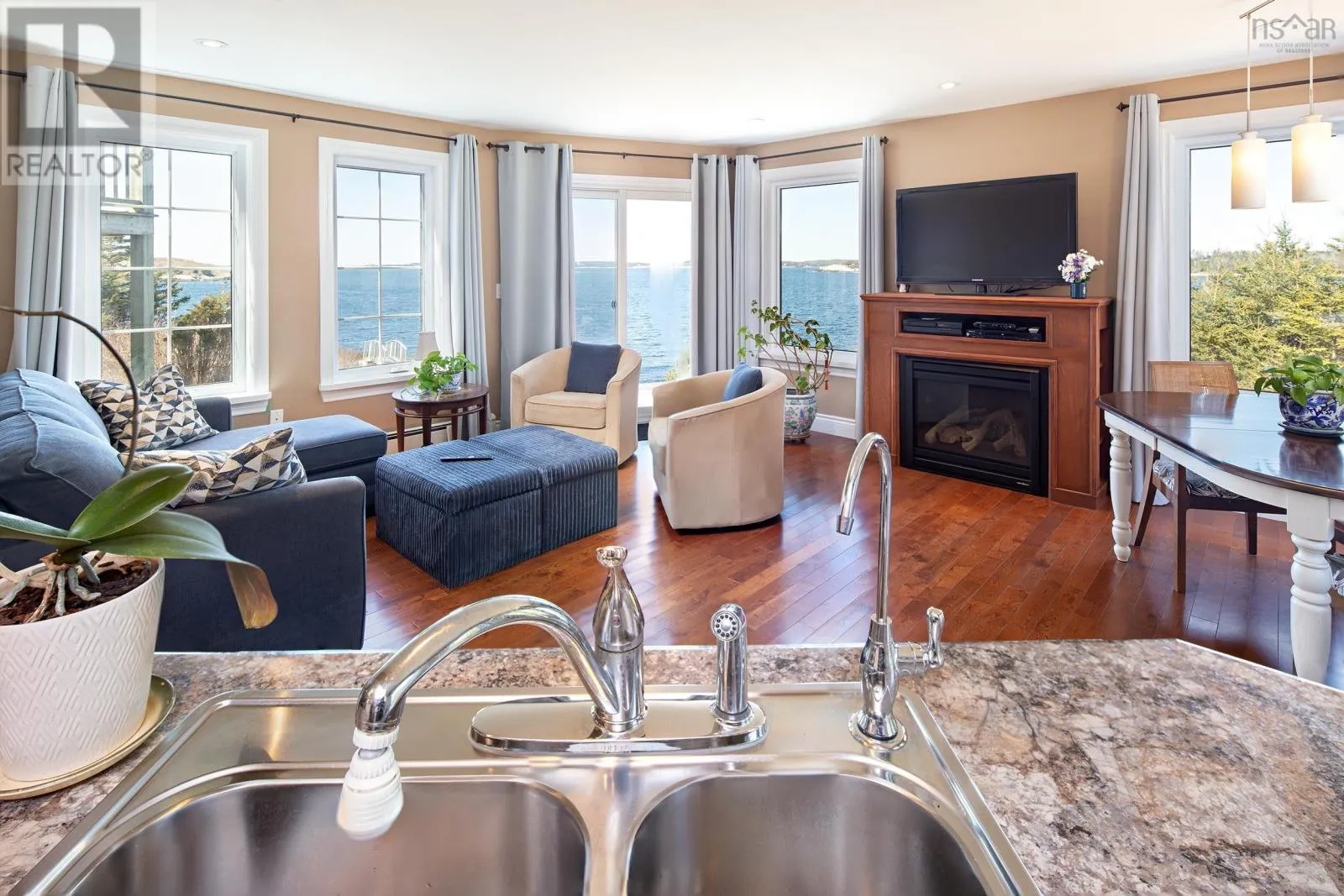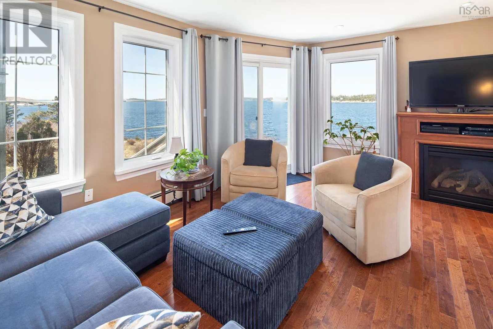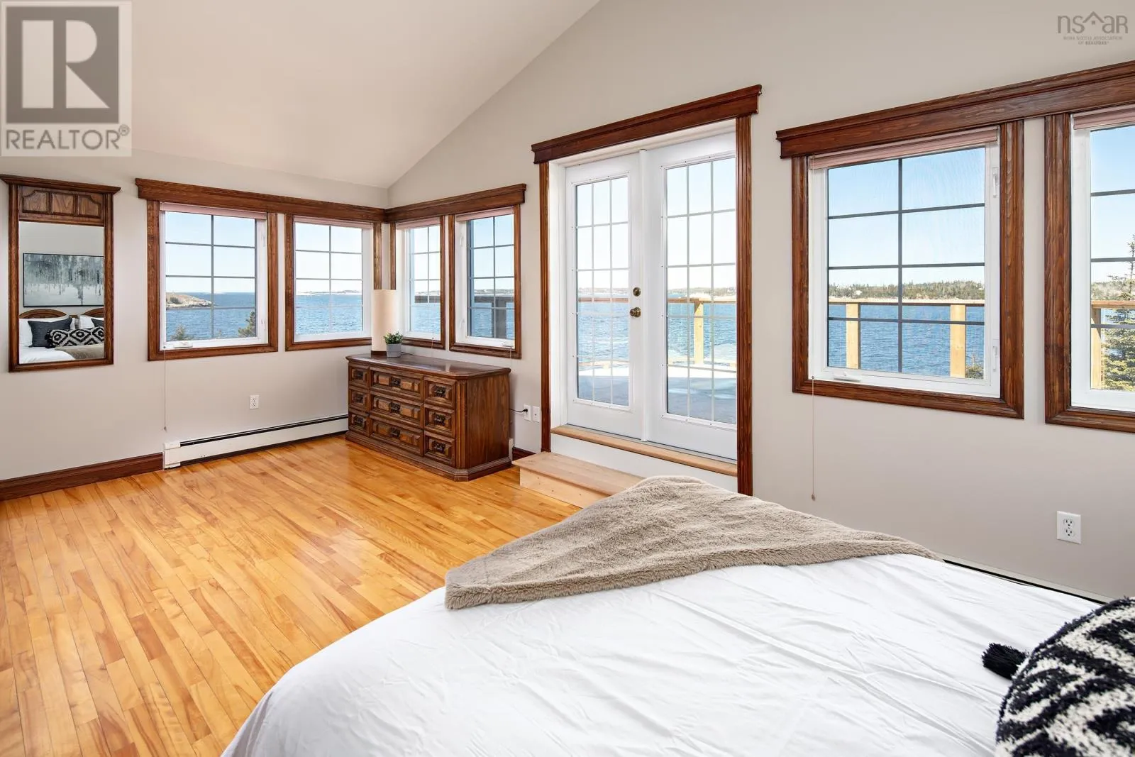Prospect Bay Rd to Seligs Rd, to Jamile Rd, to Hages Lane Welcome home to this beautiful waterfront property on 3+ acres with privacy and approx 185 ft of shore frontage on Shad Bay with 4 bedrooms and 5 baths! See stunning ocean views from almost everywhere in the home and enjoy the sea air and nature that surrounds you! This wonderful custom built home is move in ready for its new family! With a double and singled attached garage, double large paved driveway, shed- it has room for everyone and everything. Enter the home via the large foyer with a 2pc powder room conveniently located next to the front door. Take note of the open concept living room with stone fireplace, dining area and chef's kitchen with cathedral ceilings and tons of windows allowing in natural light and views of the nature and ocean just outside your door. This area is great for entertaining and socializing with family and friends while preparing a yummy meal! Stunning views, centre island with cooktop and prep sink and pot filler, double wall ovens and tons of storage and counterspace. Up a short set of steps you will find the Primary bedroom with walk-in closet, 5pc Spa Inspired ensuite with double sided propane fireplace and its own private balcony, a 2nd bedroom with walk-in closet and 4 pc bath as well as laundry conveniently located on this level. Down a level from the main floor is a amazing space- great for adult children, extended family with a kitchen of its own, family room with great views and a private deck, dining area, 5pc bath and a bedroom along with a separate entrance and mud room area. Downstairs in the basement is a large rec room, a bedroom with a walk in closet, 3pc ensuite and a den area great for home office or work out area. Close by High Head walking trail. Appliances are included. Check out the Virtual Tour (id:27476)