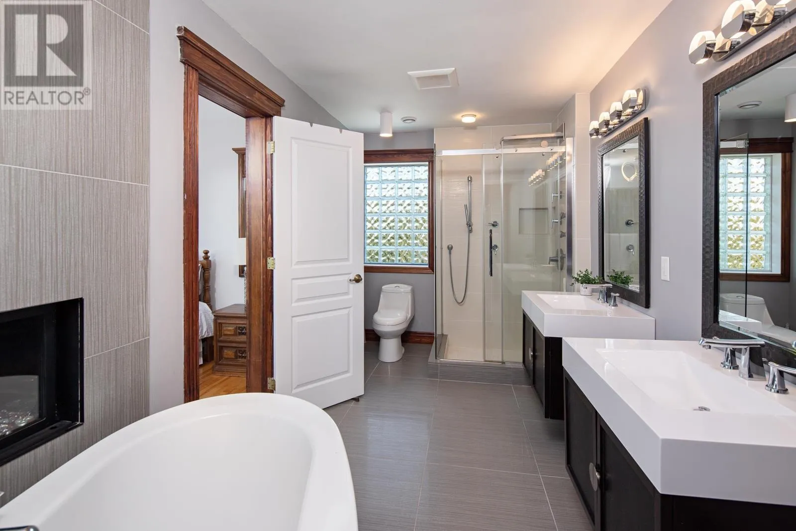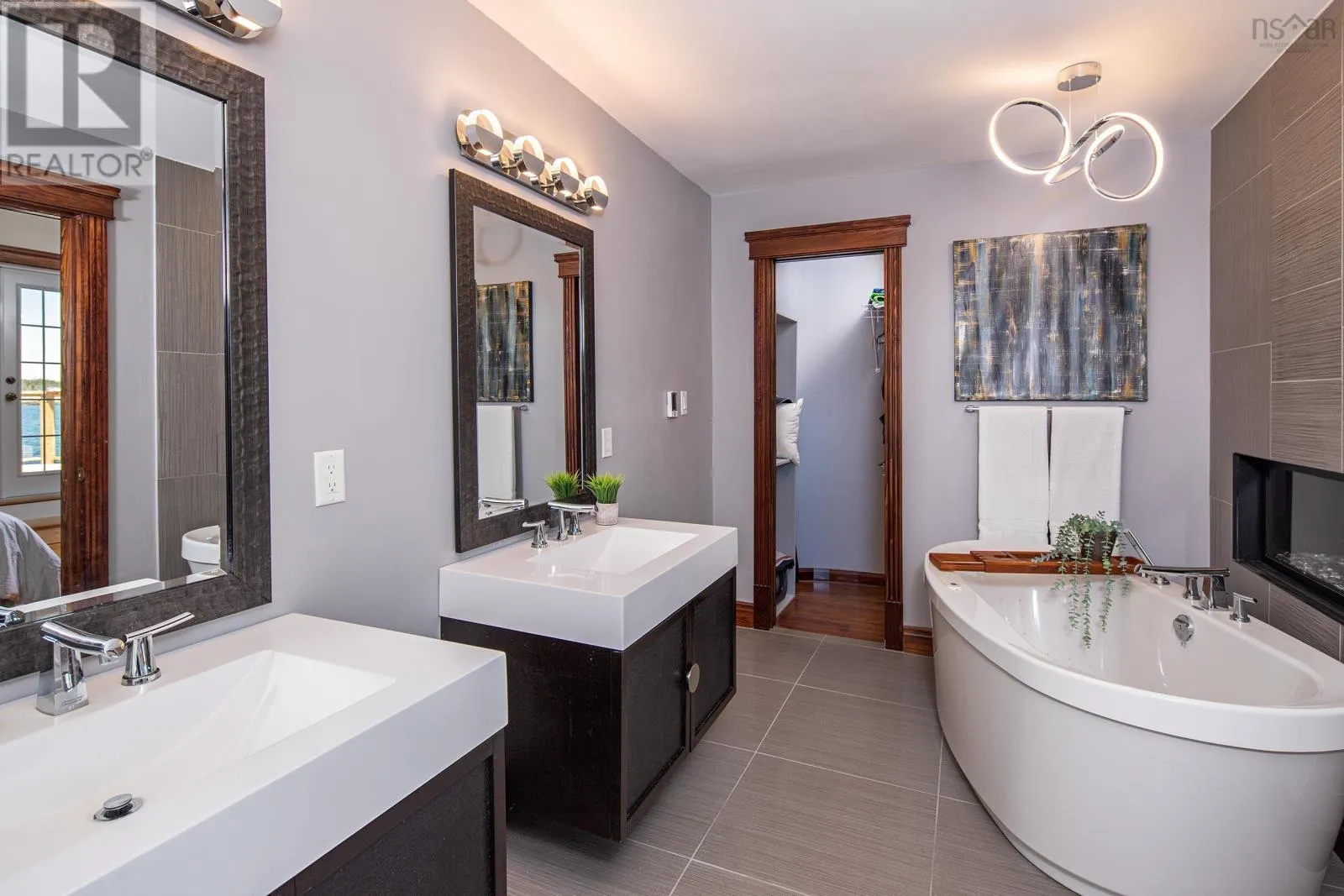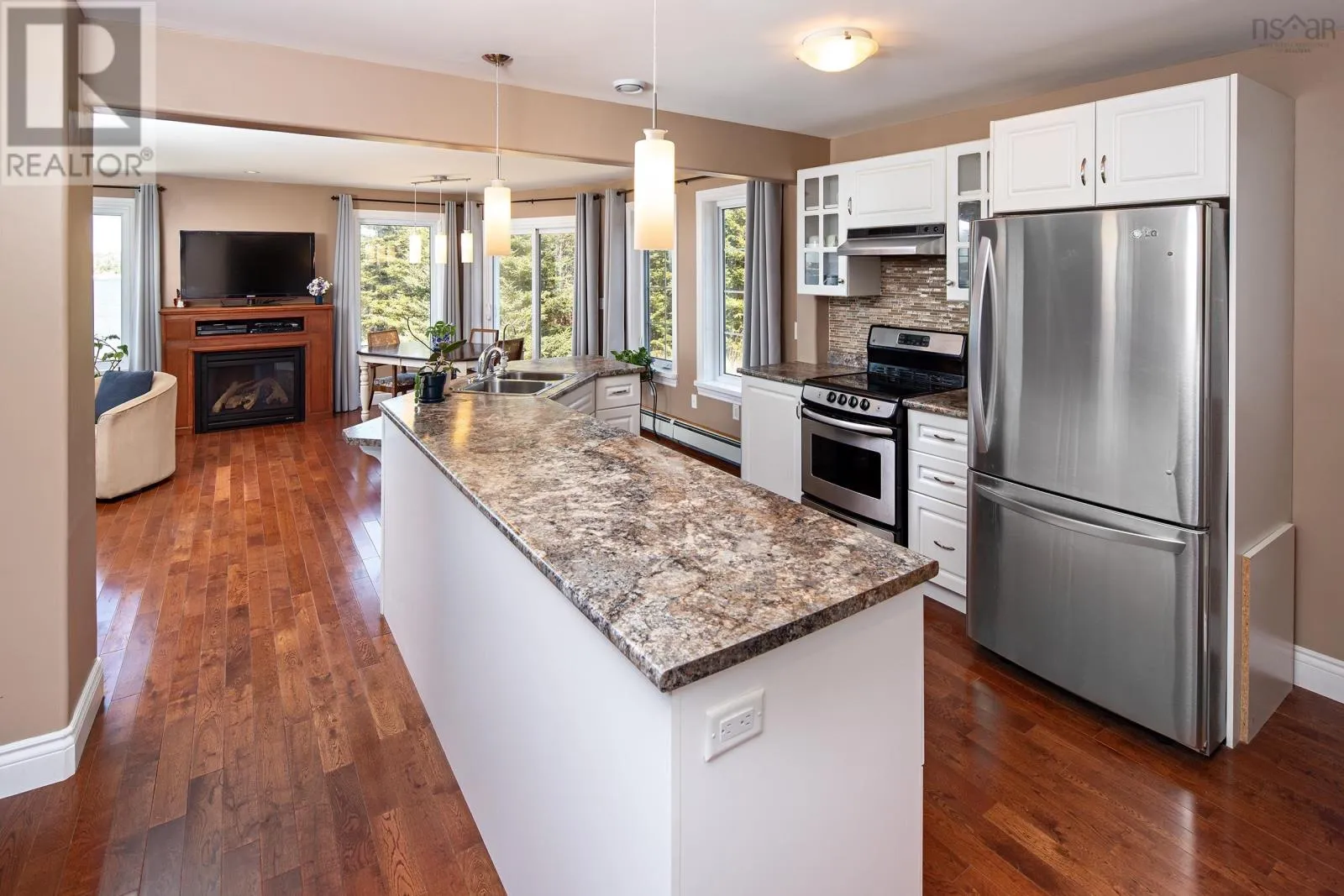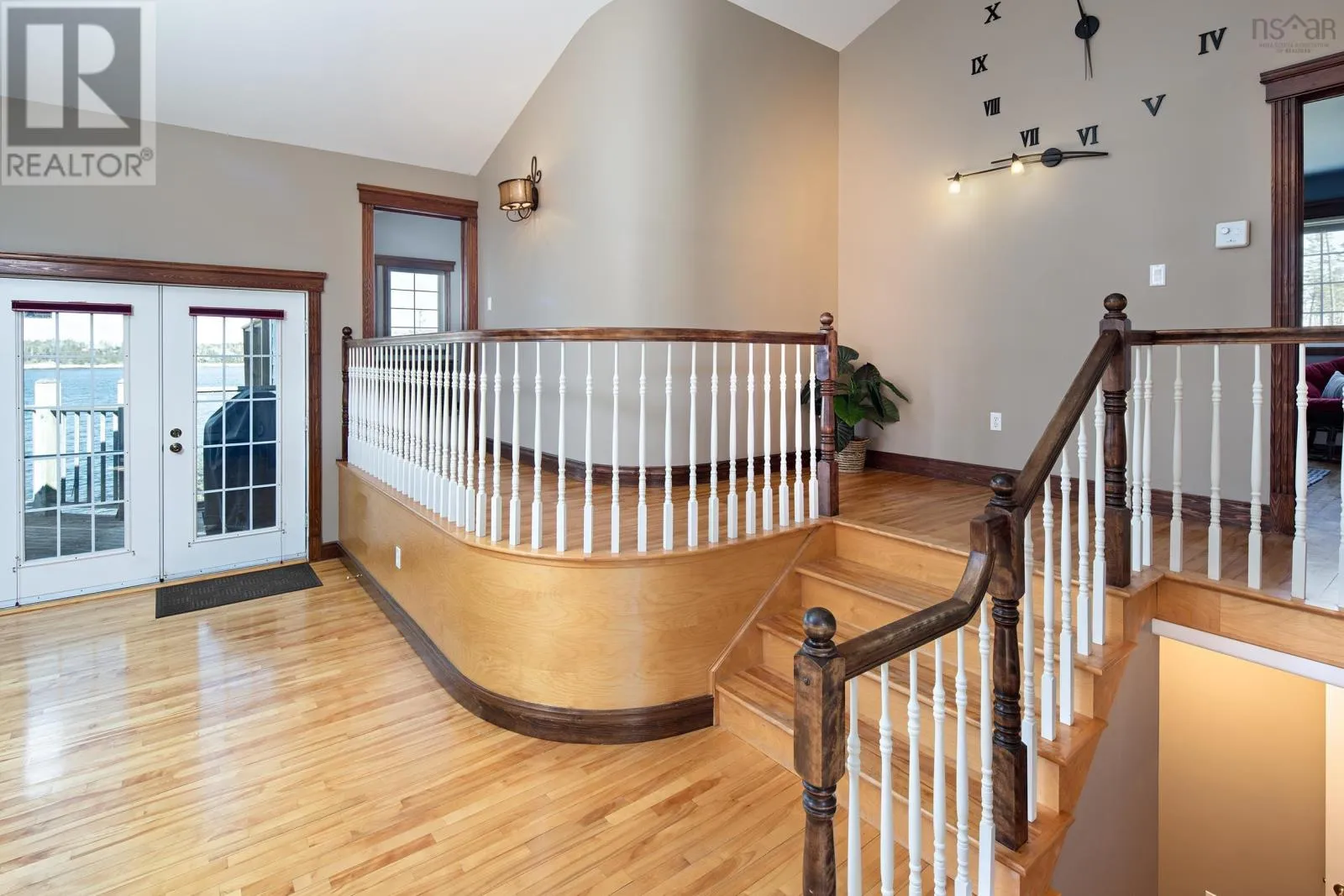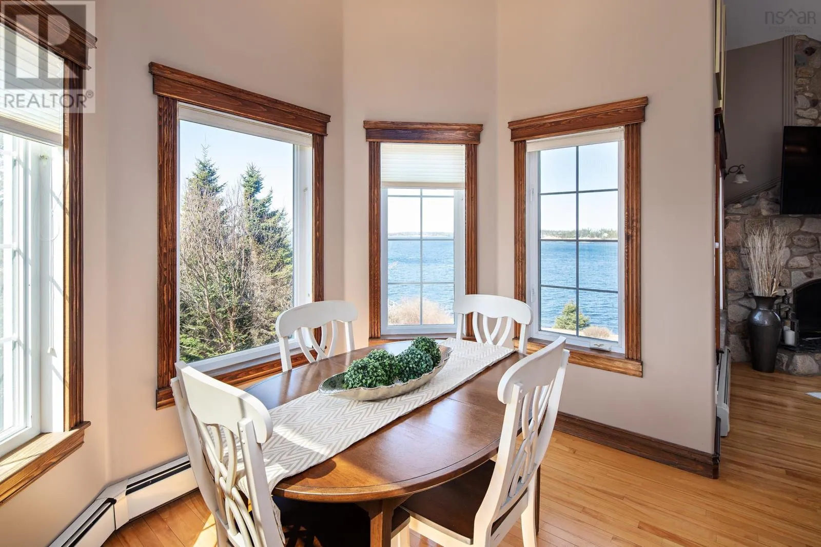 Prospect Bay Rd to Seligs Rd, to Jamile Rd, to Hages Lane Welcome home to this beautiful waterfront property on 3+ acres with privacy and approx 185 ft of shore frontage on Shad Bay with 4 bedrooms and 5 baths! See stunning ocean views from almost everywhere in the home and enjoy the sea air and nature that surrounds you! This wonderful custom built home is move in ready for its new family! With a double and singled attached garage, double large paved driveway, shed- it has room for everyone and everything. Enter the home via the large foyer with a 2pc powder room conveniently located next to the front door. Take note of the open concept living room with stone fireplace, dining area and chef's kitchen with cathedral ceilings and tons of windows allowing in natural light and views of the nature and ocean just outside your door. This area is great for entertaining and socializing with family and friends while preparing a yummy meal! Stunning views, centre island with cooktop and prep sink and pot filler, double wall ovens and tons of storage and counterspace. Up a short set of steps you will find the Primary bedroom with walk-in closet, 5pc Spa Inspired ensuite with double sided propane fireplace and its own private balcony, a 2nd bedroom with walk-in closet and 4 pc bath as well as laundry conveniently located on this level. Down a level from the main floor is a amazing space- great for adult children, extended family with a kitchen of its own, family room with great views and a private deck, dining area, 5pc bath and a bedroom along with a separate entrance and mud room area. Downstairs in the basement is a large rec room, a bedroom with a walk in closet, 3pc ensuite and a den area great for home office or work out area. Close by High Head walking trail. Appliances are included. Check out the Virtual Tour (id:27476)