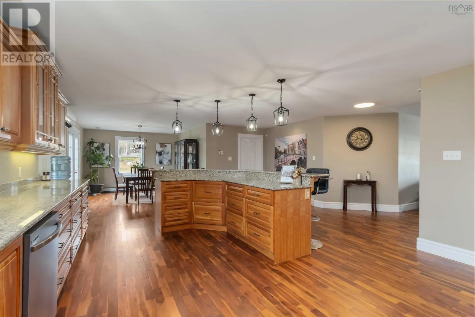 Prospect Road to Lower Prospect Bay Road to Seligs Road This 13 year old home sits on a sprawling 42 acre lot in beautiful Prospect Village, with a water view and 5,646 sq. ft of living space. The very loved raised bungalow is too incredible to pass up for those buyers looking for a dynamic two level living with income and further development potential! 5 generously sized bedrooms include a primary en-suite bath with a walk in closet and 3 more bathrooms. A beautiful new in-law suite with separate walkout entrance offers privacy and independence for extended family, guests or even an airbnb. The open kitchen is adorned with walnut cabinets, granite countertops and walk in pantry. This space seamlessly transitions into the living room, featuring vaulted ceilings, enhancing the sense of space, coupled with the coziness and charm of the custom stone floor to ceiling fireplace. Downstairs is the ultimate media center, a full sized pool table area and a huge custom mess bar. In addition, a very large workshop area will be changed over to a yoga, gym room in November as the home business is moving. The furnace has been replaced with a brand new on demand electric boiler and the full array of roof top solar panels ensure that your electricity is merely a fraction of a tiny home's bill. With 2 new heat pumps, an upgraded generator panel and new water softener complete with a reverse osmosis system, all the worry has been taken care of. There is a brand new 2 car garage that is wired and heated with a heat pump. This property represents a compelling opportunity for those seeking a spacious and luxurious home with potential to recoup some of your investment through the suite and a subdivision process. Sellers have an an application for subdivision approval for 4/5 lots. Approval will shared with buyer. Back of property fronts onto Brennans Road. (id:27476)