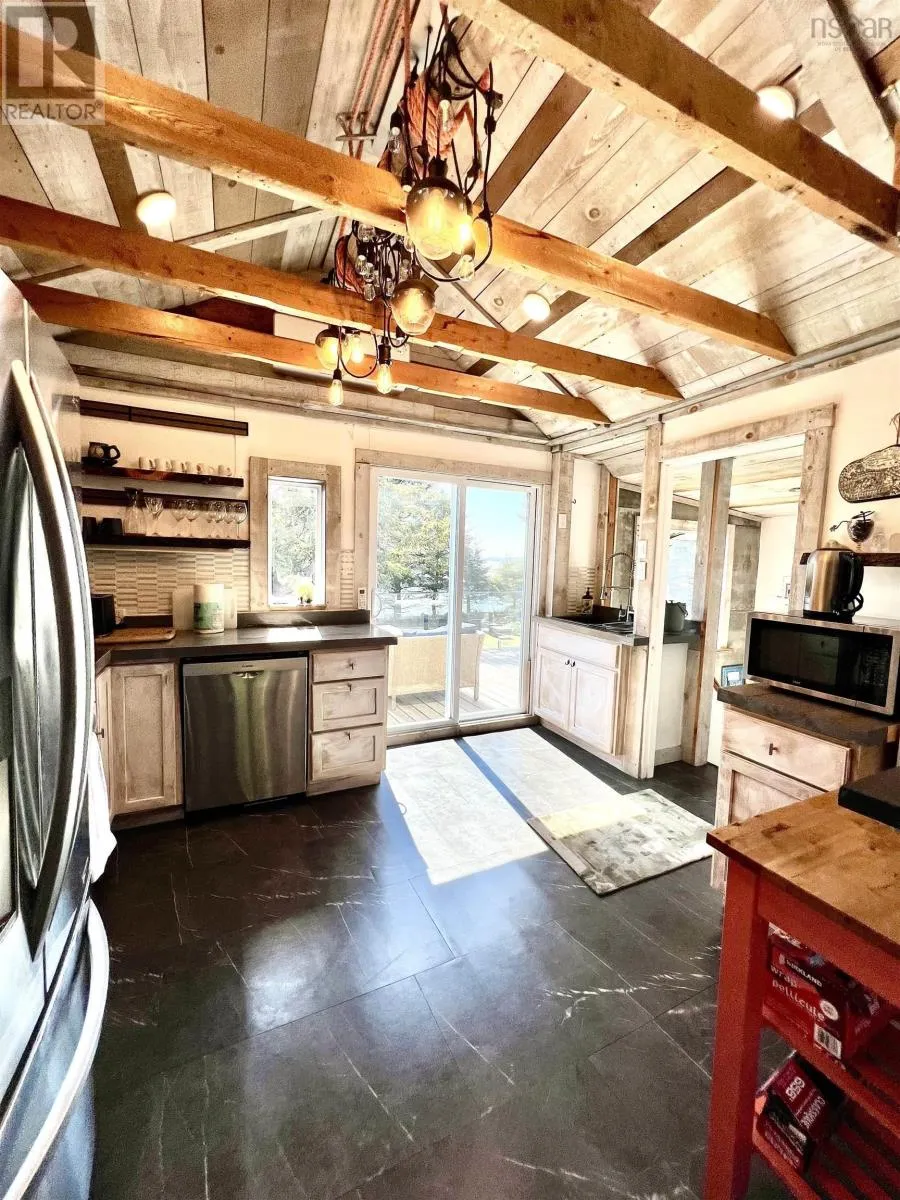 103 to exit 5a to queensland property is on water side next to cleveland beach Turn-key coastal living just steps from Cleveland Beach. This 3-bedroom , 1.5 bath "The Beach House" (1,040 sq ft) sits on a 10,000 sq ft lot and includes a separate 11 x 23 bunkie with a full bath and kitchenette. Originally built in 1982, the home has had many upgrades in the past 10 years, features of paved driveway for multiple vehicles and is set on a private lot that backs onto Cleveland Lake and Cleveland beach provincial Park. The property is zoned MU-1 (Mixed-Use 1). Key Details - 1040 square-foot main home + I'm11 x 23 Bunkie. - 3 bedrooms; 1 1/2 bath in main house; 3 season bunkie with full bath. - Paved driveway for multiple vehicles. - Lot: 10,000 sq ft - Zoning: MU-1. - Upgrades: Metal roof, new metal siding, new Septic, Generac generator. - Location: 300 yards to Cleveland Beach; private lakefront setting next to the beach. - Potential uses; year-round residence, cottage or Airbnb investment. - Turn-key with all furniture, firewood, and contents included. Walk out the back door for kayaking, paddle boarding, swimming, boogie boarding, and plenty of fun in the sun, activities. Close to all amenities, shore club, and in the Shatford trust area. (id:27476)