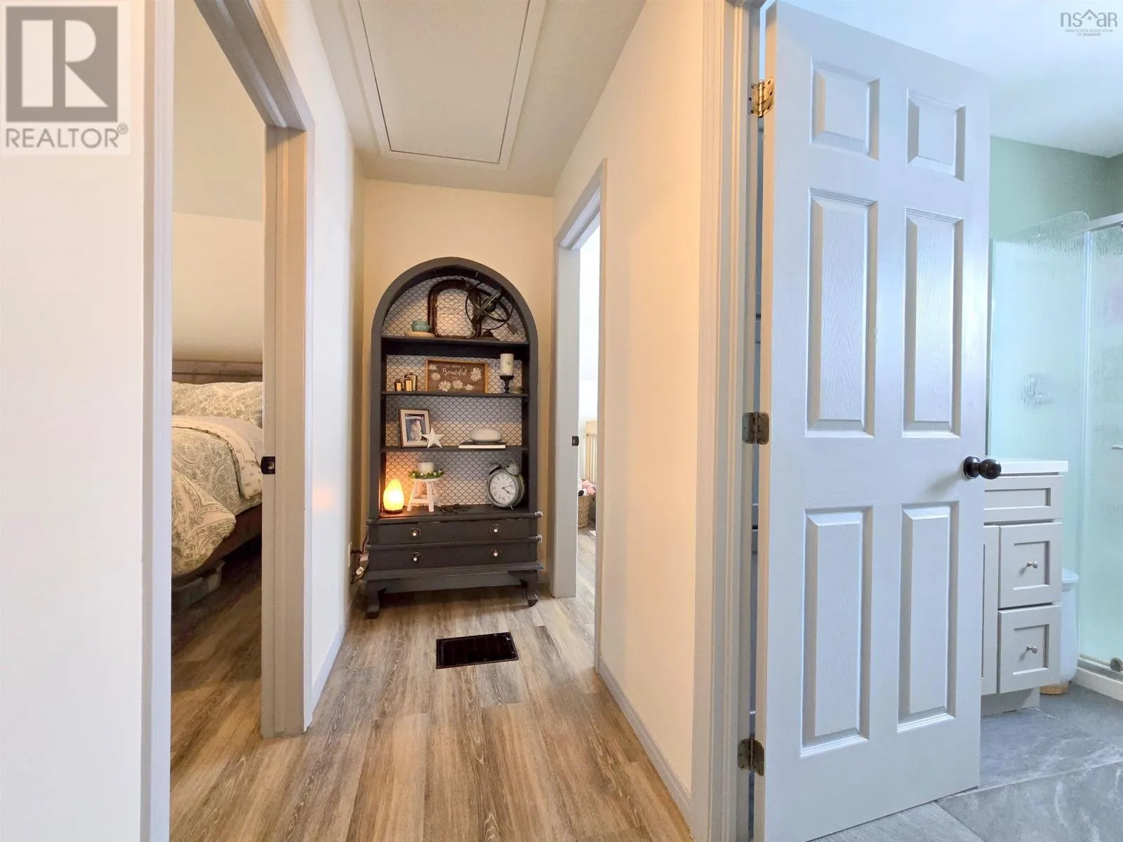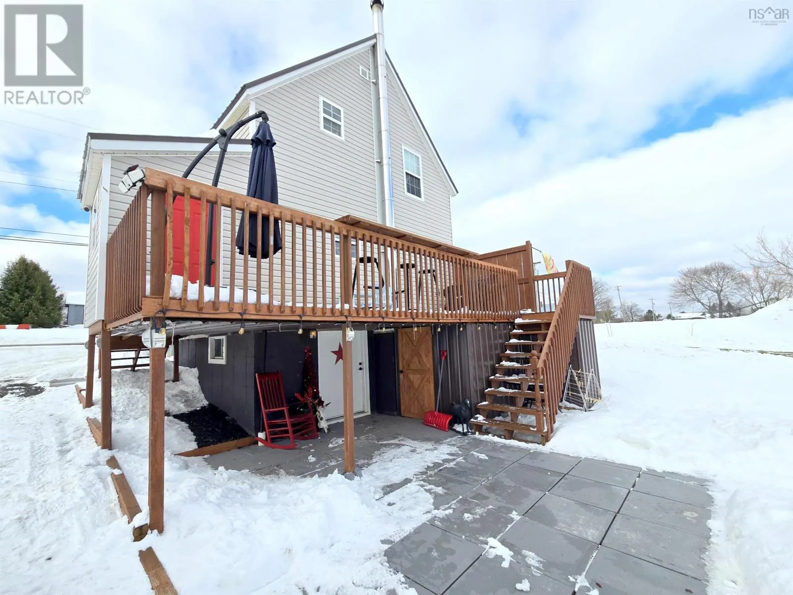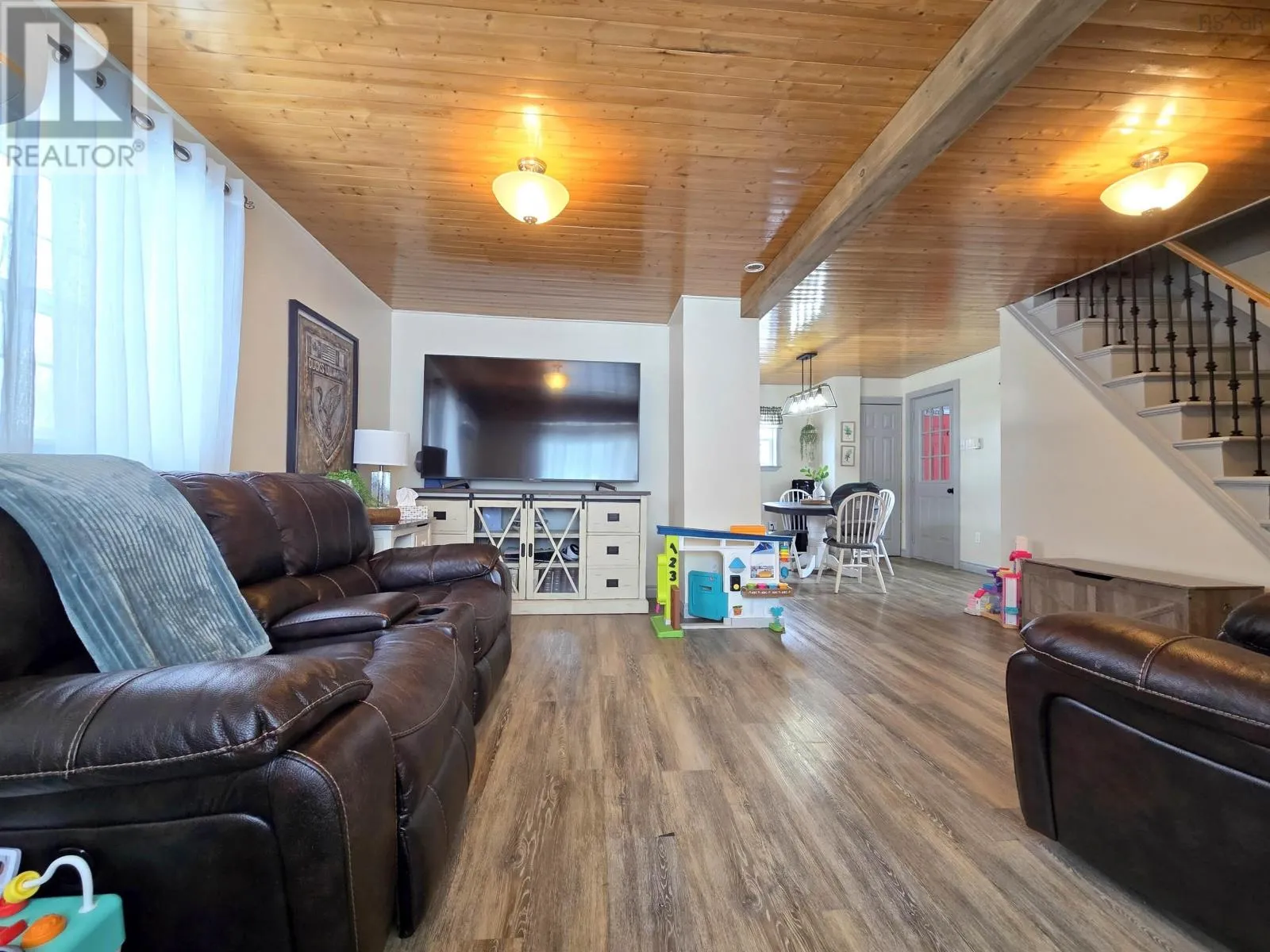 From Highway 242 River Hebert, turn onto Barronsfield Road. House is on the right before you get to the high school. Welcome to this tastefully and thoughtfully decorated 1/5-storey home offering three full levels of comfortable living space, perfectly suited for families or anyone needing flexible room to grown. The main floor welcomes you with a bright foyer at the front entry, while the back porch provides convenient access to the patio and eat-in kitchen that flows easily into the cozy living room - ideal for everyday living and entertaining. Upstairs, the second level features two generous bedrooms and a full 4-piece bathroom, creating a private and functional sleeping area. The full developed basement adds exceptional value with 8-foot ceilings, poured concrete construction, and a walkout for easy exterior access. This level includes a comfortable rec room, a large bonus room with a walk-in closet, and a full bathroom - perfect for guests, a home office, or additional living space. Heating is efficient and versatile with min-split heat pump, electric baseboard heaters, and an airtight wood stove that distributes heat though ductwork. A generator hookup offers added peace of mind. Outside, relax or entertain on the patio or backyard firepit area while taking in the expansive views, and enjoy the convenience of being just a 2-minute walk to the high school. A solid, thoughtfully laid-out home with great features, including metal roof, plenty of parking, and beautiful views - this one is well worth a look. (id:27476)