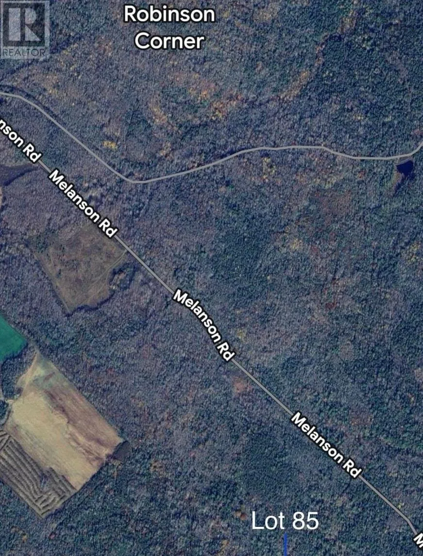 Avonport Exit, to Gaspereau River Rd, to Melanson Rd, follow to corner of Melanson and Peck Meadow Rd and walk in. Discover the perfect spot to build your dream home on Lot 85 Melanson Road in scenic Robinsons Corner, Kings County. Nestled in the heart of the Annapolis Valley, this peaceful, treed lot offers a private setting with easy access to nearby towns like Wolfville, Kentville and New Minas. Enjoy the natural beauty of the area, with orchards, vineyards, and stunning Bay of Fundy views just a short drive away. With road frontage, this property is ideal for those looking to create a quiet retreat or a year-round residence in one of Nova Scotias most desirable regions. The 25 acres is zoned Forest Resource. Buyer to verify where the nearest power poll is through NS Power. Dont miss your chance to own a piece of the Valley lifestyle. (id:27476)