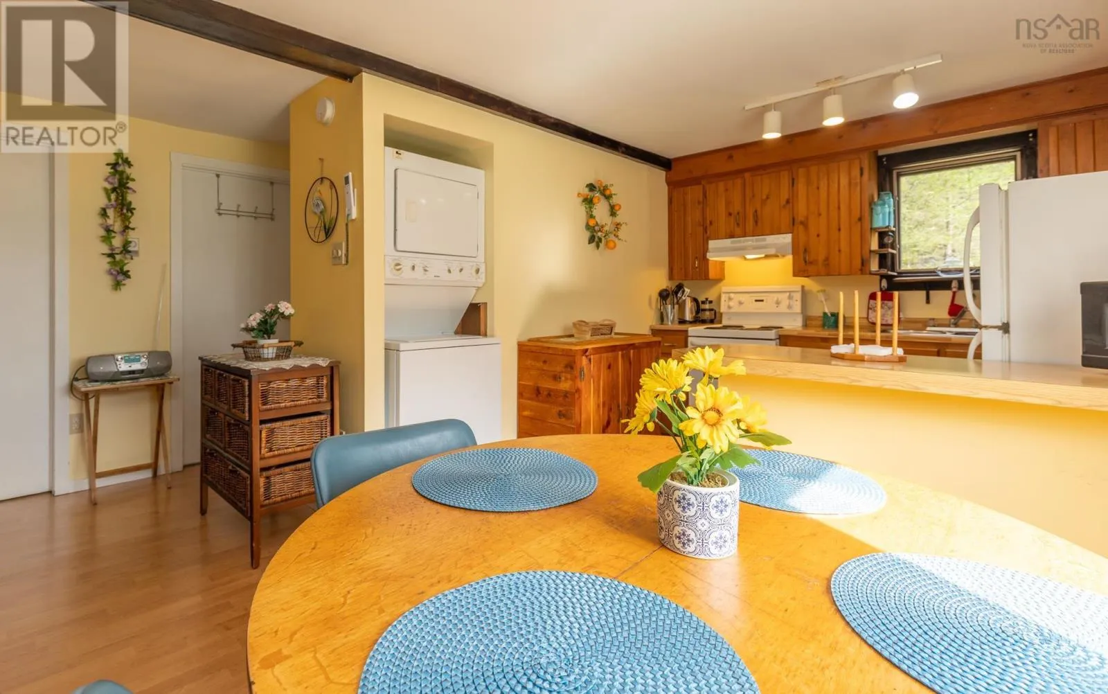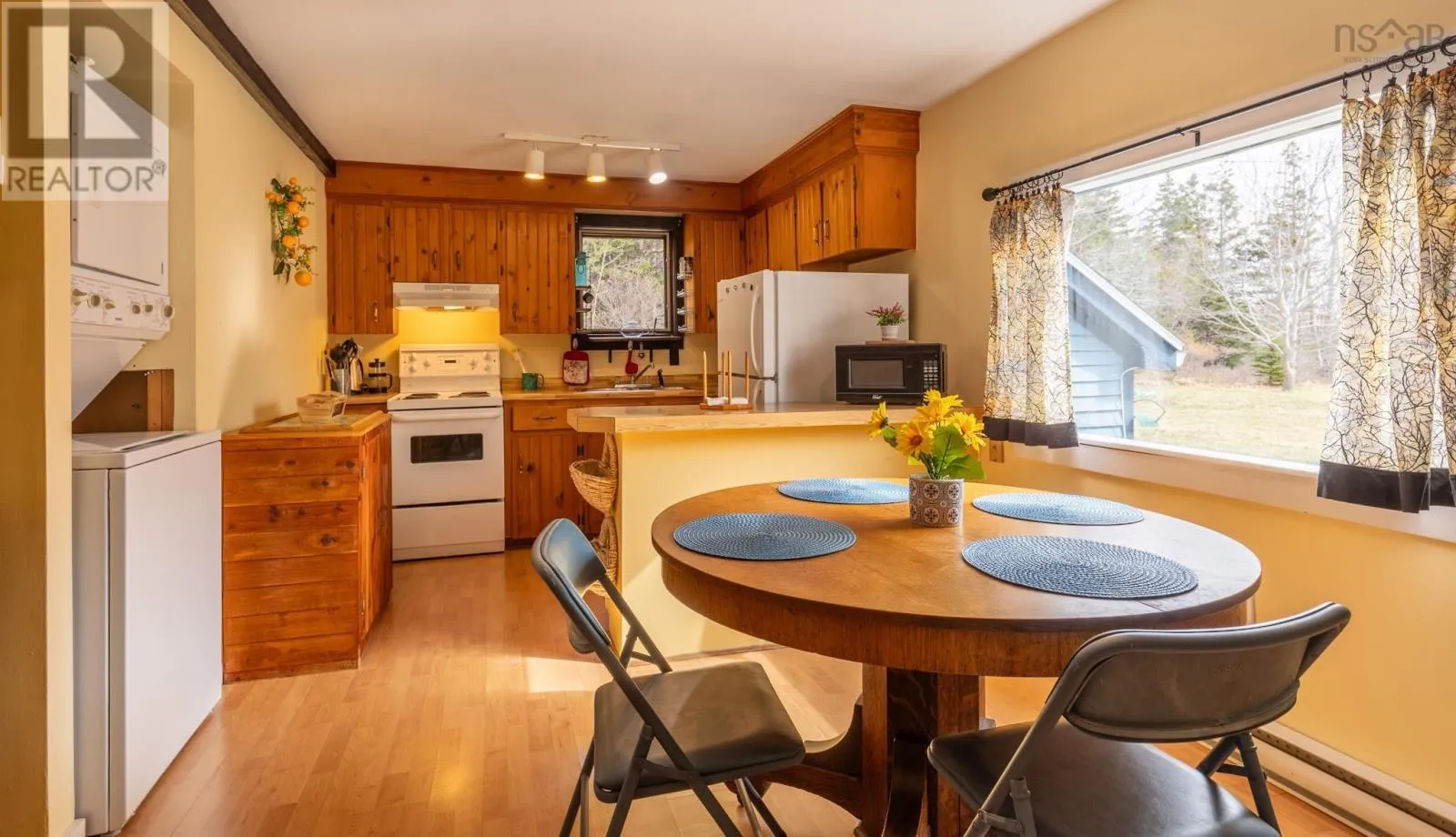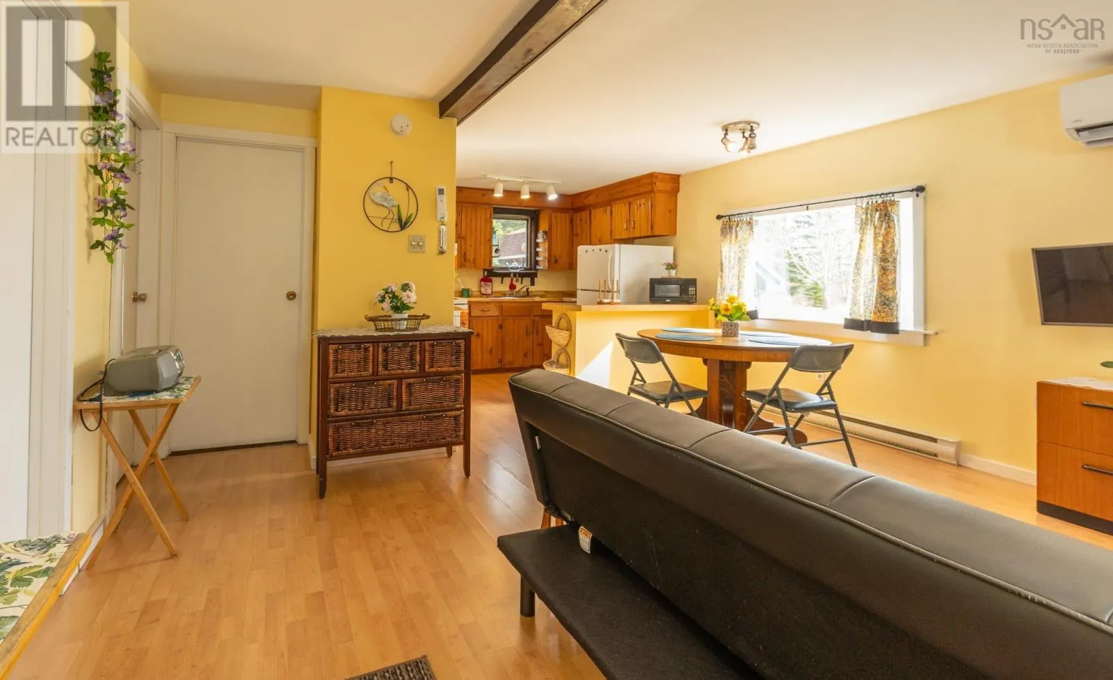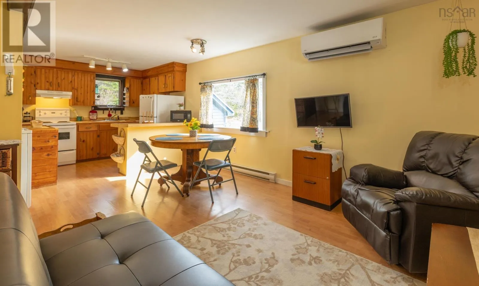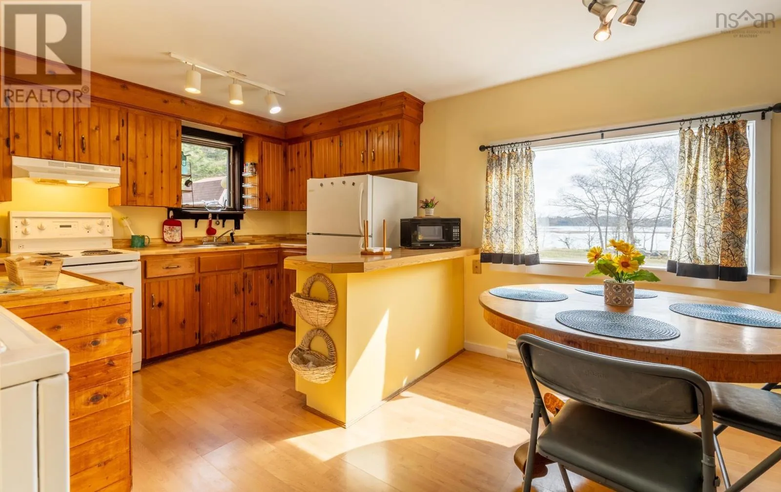 From Tusket take Highway 3, by the St. Anne's Catholic Rectory(church) turn into Rocco Point Road and proceed to civic # 436 on right. Property is not signed. Welcome to 436 Rocco Point Road - where the Abrams River meets the ocean. This one-of-a-kind property offers approximately 10.5 acres of serene privacy and an impressive 645 feet of waterfront with a stunning mix of stone and sandy shoreline. Set where the tidal river flows into the sea, the area is known for its natural abundance - clams and oysters can often be found nearby. A peaceful trail from the home leads directly to the waters edge. The home is surrounded by over 1 acre of field/lawn and around 9 acres of forest with mature pine, oak trees and a century old stone wall. Whether you're seeking a year-round residence or a cozy coastal getaway, this charming home offers comfort and functionality. The open-concept layout combines living and dining areas with a well-appointed kitchen and convenient laundry space. There are two generously sized bedrooms, a full bath, and a spacious screened porch - perfect for a BBQ, entertaining or simply enjoying the fresh ocean air. Wake up to a beautiful sunrises over Little Sluice Bay across the road. Additional features include a newly built, wired 16 x 20 garage and an 8 x 12 shed offering ample storage. Located just 10 minutes from Tusket and 25 minutes from Yarmouth, you're never far from essential amenities while enjoying the peace and beauty of coastal living. The public wharf is just a short walking / driving distance. Dont miss the opportunity to own a piece of the Maritimes! (id:27476)