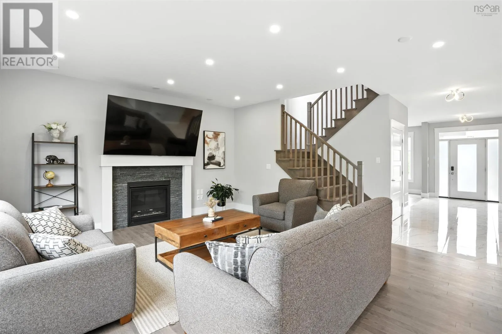 Wentworth Dr to Theresa McNeil Grove Welcome to 26 Theresa McNeil Grove Over 3,800 Sq. Ft. of Modern Luxury and Comfort This stunning 4-year-young executive home is nestled in a quiet, family-friendly neighborhood and offers the perfect combination of privacy, space, and high-end finishes. With 5 bedrooms, 4.5 bathrooms, a double garage, and over 3,800 sq. ft. of beautifully finished living space, this home is ideal for families of all sizes. The main floor features a bright and spacious living room with large windows and a cozy natural gas fireplace, creating a warm and inviting space to relax. The chef-inspired kitchen is fully equipped with a sleek waterfall island, natural gas stove, a massive walk-in pantry, and extensive cabinetrytruly a dream for those who love to cook and entertain. Step outside to the oversized composite deck with privacy glass, perfect for outdoor dining or enjoying quiet evenings. Upstairs, the primary suite offers a peaceful retreat with a large walk-in closet and a spa-like ensuite featuring a soaker tub, custom shower, and double vanity. A second bedroom with its own ensuite provides great convenience for guests or extended family. The walkout basement is a standout with 10-foot ceilings, a huge fifth bedroom, a flex room ideal for a gym, office, or playroom, rough-in for a wet bar. Located close to all amenitiesincluding schools, parks, shopping, and highway accessthis home combines modern luxury with everyday convenience in one of the areas most desirable communities. (id:27476)