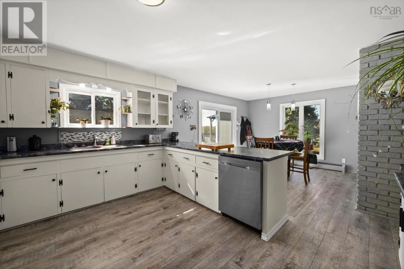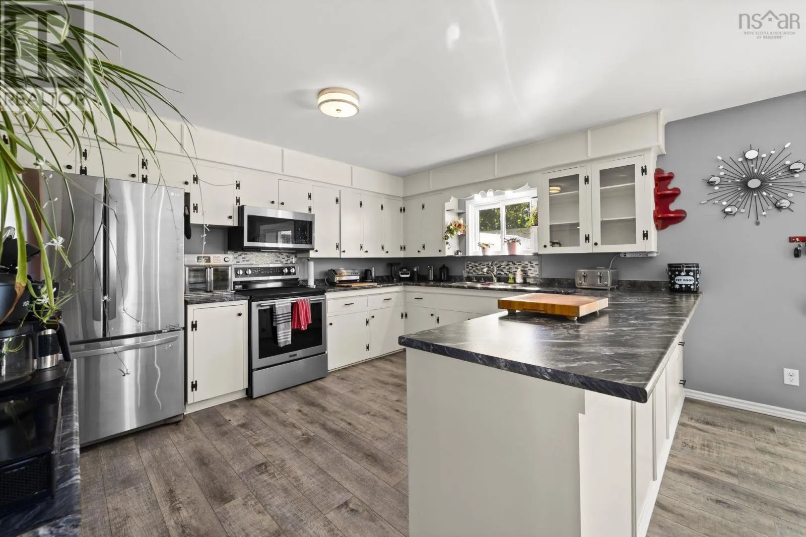 From Berwick or Coldbrook 101 access travel on Hwy 1 to turn down Bentley Rd. , travel to Lawrence Rd. Home in on corner lot. Move in ready Annapolis Valley home, located in a rural setting but just minutes to Berwick and 100 series Highway access. 3-bedroom 1 bath and double attached garage. Main floor of this split entry has spacious living room and open concept dining room and large kitchen. Desirable for entertaining or baking up a storm. Basement has large bedroom and rec room, while huge storage area and walkout add the potential of creating private living quarters. Updates and improvements during ownership have been all windows and doors have been replace ( just not front door), Spray foam insulation in basement, insulation in attic, vinyl plank flooring laid up and down, kitchen remodel, oil tank new in 2018, metal roof, decks, garage doors, 2 heat pumps, 2 sheds, garden beds for veggies and plenty of perennials. Watch stunning sunsets from back deck as you overlook quintessential valley farmland. The Town of Berwick offers recreation centre with curling, walking track and ice rink, shopping, medical clinics, farmers markets and restaurants. Just 20 minutes to Kentville and Valley Regional Hospital and an hour and 15 to Halifax (id:27476)