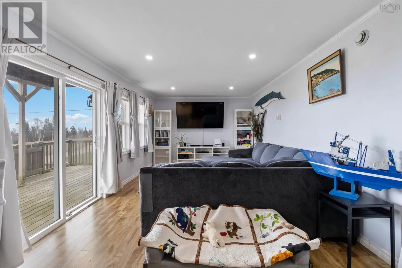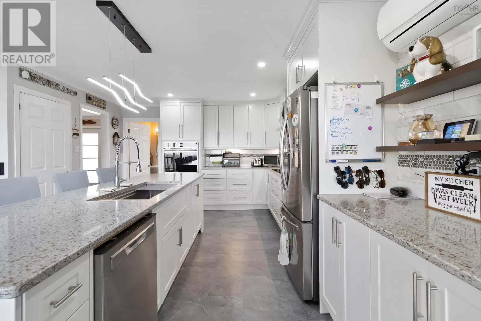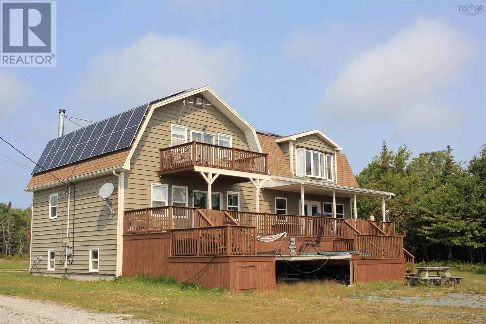 Roseway Beach Road, Paces Lane is on the left. Property is on the left and signed. Nestled on 2.4 acres and just a 5-minute stroll from the sandy shores of Roseway Beach, this 4-bedroom, 3-bath home offers the perfect blend of coastal charm and modern comfort. Step inside through the foyer and youre welcomed by a beautifully renovated kitchen that combines style with functionality. Featuring custom cabinetry, sleek stainless steel appliances, a spacious island with a sunken sink, and a pot tap above the cooktop, this kitchen is a dream for culinary enthusiasts. Its open-concept design flows seamlessly into the dining area, making it ideal for family meals and entertaining. The living room is filled with natural light from large windows, creating a warm and inviting space to gather. The main floor also includes two full bathrooms, a home gym, and plenty of room for a busy family lifestyle. Up a private staircase, the primary suite offers a true retreat. The spacious bedroom overlooks the ocean, while the luxurious ensuite boasts a stunning 5x8 walk-in tile and glass shower. A walk-in closet with laundry completes this private haven. A second staircase leads to three additional bedrooms, one of which features a private balcony with sweeping ocean views. The finished basement expands the living space with a large rec room and bar, perfect for entertaining. A utility room with a walkout, abundant storage, and a workshop add to the homes functionality. Outside, the expansive deck invites you to relax and enjoy the fresh sea air with family and friends. Practical updates include solar panels for lower energy costs, a heat pump, and a new oil/wood furnace. A full list of recent renovations is available upon request. This is a rare opportunity to own a spacious, updated home just steps from one of the South Shores most beautiful beaches. (id:27476)