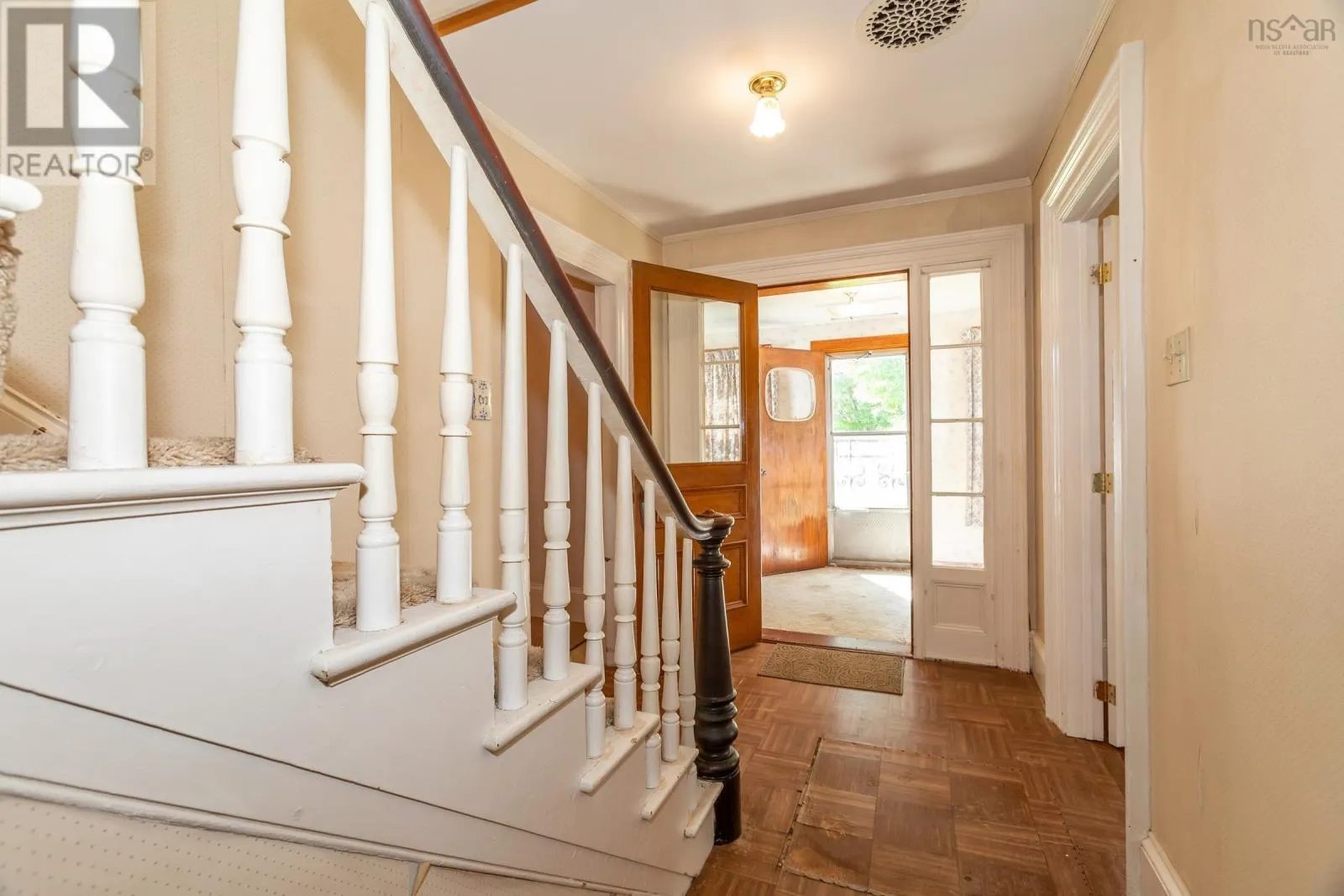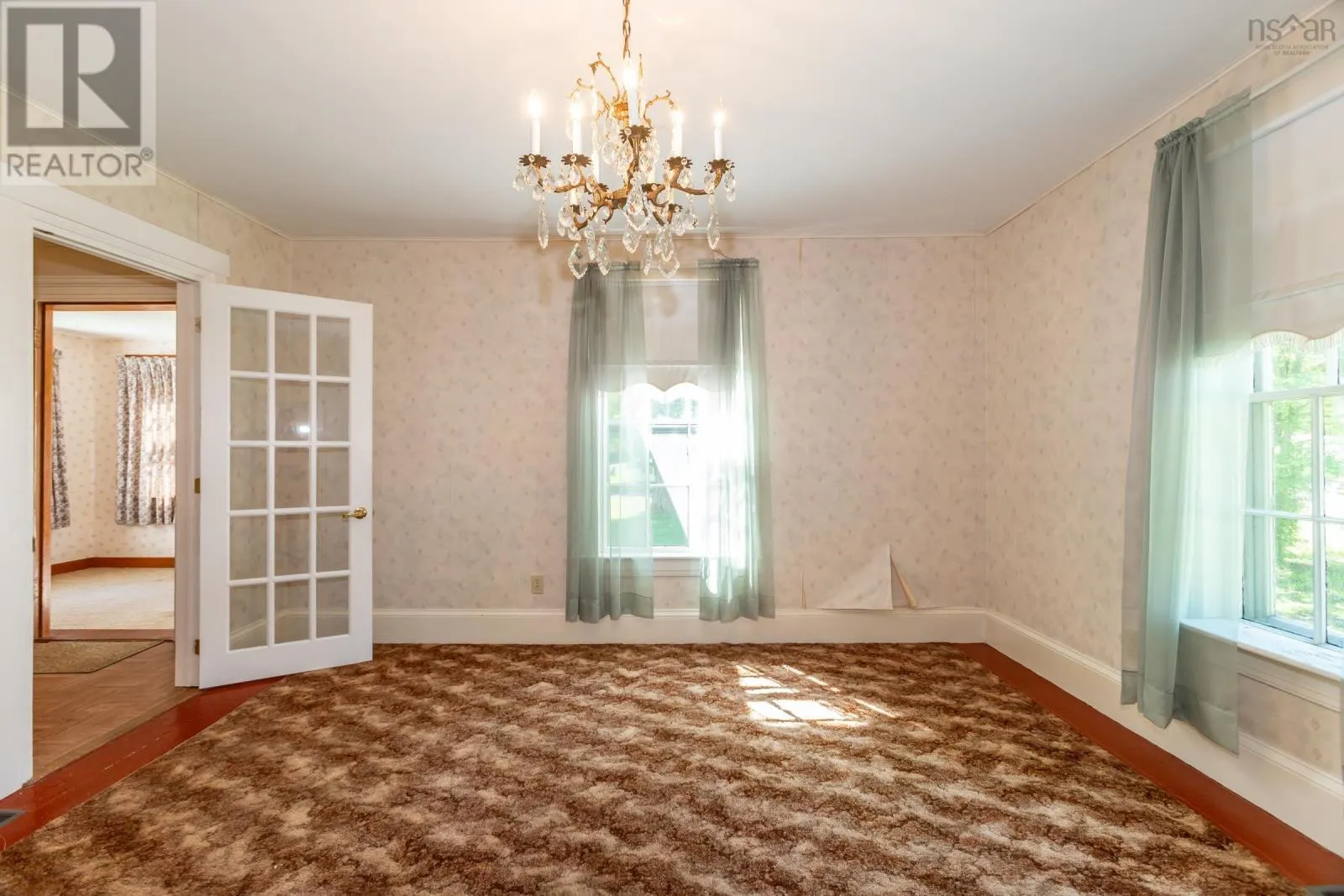From Annapolis Royal, 11km East on Highway 201 to civic number 1851; From Bridgetown 13 km West on Highway 201 to civic number 1851. The Dargie House is a character filled home set on a beautiful 1 acre lot in charming Round Hill. Built in 1892, it is ready for a new owner to restore and enjoy its historic Victorian charm. The home features arched windows, wide baseboards, a grand front staircase, with a second back staircase from the kitchen. A large back entry mudroom includes laundry hook-up and a storage room. The kitchen has a WETT-certified wood-burning stove for cozy heat and a pantry for everyday staples. The center hall layout offers two updated working fireplaces and a generous front sunporch ideal for relaxing or entertaining. Recent updates include roofing shingles (approx. 7 years old), freshly painted exterior (2023), rebuilt chimneys, and updated electrical systems. The high basement provides easy access to these systems and has a walk-out to the backyard. Much of the interior remains original, giving you the opportunity to upgrade while preserving the homes historic character. An older carriage house/barn offers flexible use as a garage or potential stable, with room to fence the backyard and additional access from Wharf Road. Located in scenic Annapolis County, the property is situated minutes between historic Annapolis Royal and the quaint village of Bridgetown. This is a chance to own a piece of Nova Scotia history and shape it into your own. (id:27476)