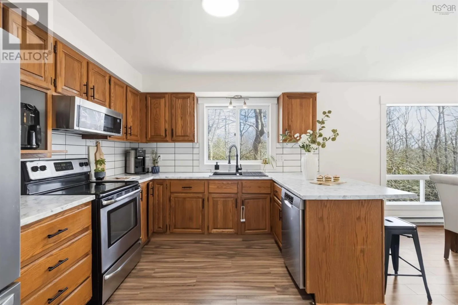 Cobequid Rd to First Lake to Cavalier Dr Located in the heart of Lower Sackville, 165 Cavalier Drive offers the ideal blend of outdoor lifestyle and city convenience. Step outside and enjoy nearby Sackville Lakes Provincial Park, take a morning jog along the First Lake Glen Slauenwhite Trail, or enjoy weekend hikes through the scenic Second Lake trail system, adventure is literally on your doorstep. Commuting is a breeze with the newly completed highway offering a efficient route directly to Burnside and Halifax. This home features three bedrooms on the main level and one on the lower level, with two bathrooms, perfect for a growing family. The main level is bright and spacious, with a large living room kept comfortable year round by a ductless heat pump. The kitchen was built for a family, with a ton of counter space, storage, double sink and breakfast bar top so the kids can do homework as you cook dinner! Once all the homework is done and everyone is full, nights can be spent in the large rec room playing games, watching movies or warming up by the stove. When the day is done, retreat to the back deck to relax with friends, enjoying the rare privacy of a property that backs onto a lush greenbelt and natural wooded backdrop (id:27476)