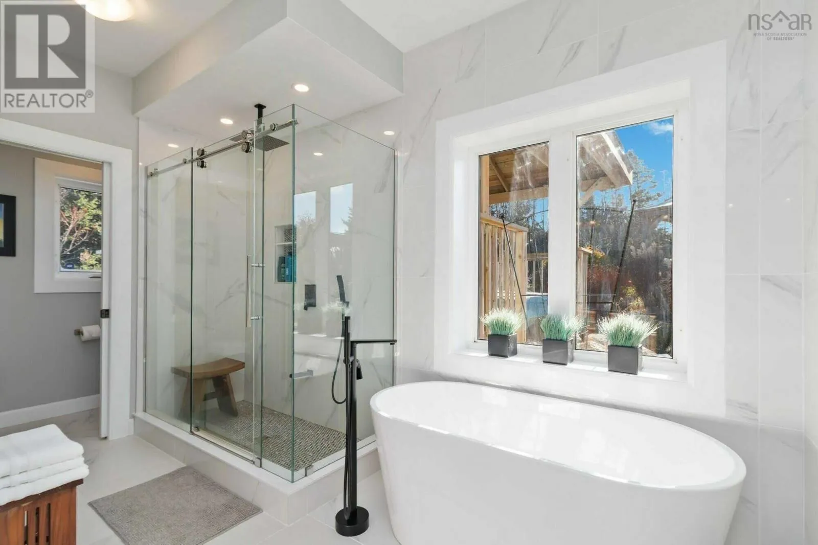 Herring Cove Road to Ketch Harbour Road to Bald Rock Road Visit REALTOR® website for additional information. Coastal bungalow with ocean views, 2.79 acres & new oceanfront guest house in Sambro. Perched on an elevated lot with sunsets and distant ocean views, this bright, updated ranch-style bungalow offers single-level living, modern upgrades, and great indooroutdoor flow. The open-concept kitchen/family room features a large island, solid-surface countertops, and a walkout to the backyard. A second open living/dining area at the front also has garden doors to landscaped grounds with stone pathways, perennial gardens, pond feature, pergolas, covered hot tub, and an elevated firepit area overlooking the ocean. The spacious primary suite includes its own walkout, a renovated ensuite with a double tiled shower, a standalone soaker tub, double sinks, and a huge custom walk-in closet. Three additional bedrooms sit privately down a separate hallway. Updated laundry room, triple garage, in-floor radiant heat (4 zones), ductless heat pump, security cameras, surround sound, and wood-burning fireplace/wood stove with firewood included. A major bonus: a solar panel system keeps power bills at approximately zero. $3/month. Across the quiet road, the property includes 265 feet of direct granite oceanfront and a new modern coastal guest house with its own well/septic, triple-pane hurricane-rated windows, stylish finishes, front deck, and ample parkingideal for family or Airbnb. Near Crystal Crescent Beach and 25 minutes to Halifax, this rare coastal estate offers privacy, views, and versatile multi-living potential. (id:27476)