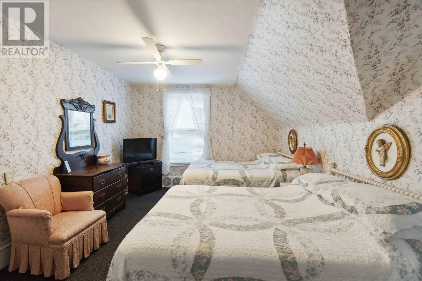 From Digby, take HWY 217 to Sandy Cove, turn Right on Church Hill Road, property is on the right hand side. Nestled on the charming Church Hill Road in the picturesque village of Sandy Cove, this grand century home offers endless possibilities and immense potential. Hosting views of Sandy Cove Harbour and St. Mary's Bay, this substantial property presents a unique opportunity for those seeking an exceptional residence or an entrepreneurial venture, such as a bed and breakfast. The property features 8 spacious bedrooms, 4 of which boast their own ensuite 4-piece bathrooms, in addition to 2 more four piece bathrooms adjacent to two of the bedrooms and 2 washrooms on the main floor. The expansive layout includes a large industrial-sized kitchen, a generous dining room, and a sunroom that spans the front of the house, bathing the space in natural light and affording a peaceful water view. Upstairs, a second-floor balcony offers breathtaking views, while the basement holds two rooms that once served as a bar and games room, adding a sense of history and versatility to the home. In addition to the main house, the property includes two charming cottages, affectionately named "Captain William" and "Captain Nelson," each complete with a 4-piece bath, a bedroom, and a cozy living/sleep area, with one cottage also featuring a small kitchenette. Located just minutes from a beautiful sandy beach on the Bay of Fundy side and a short drive to Lake Midway Provincial Park, this property is approximately 20 minutes from the town of Digby and its amenities. Whether you're envisioning an exceptional home or starting a B&B business, this exquisite property awaits a new owner to unlock its full potential. Opportunities like this don't come along every day! (id:27476)