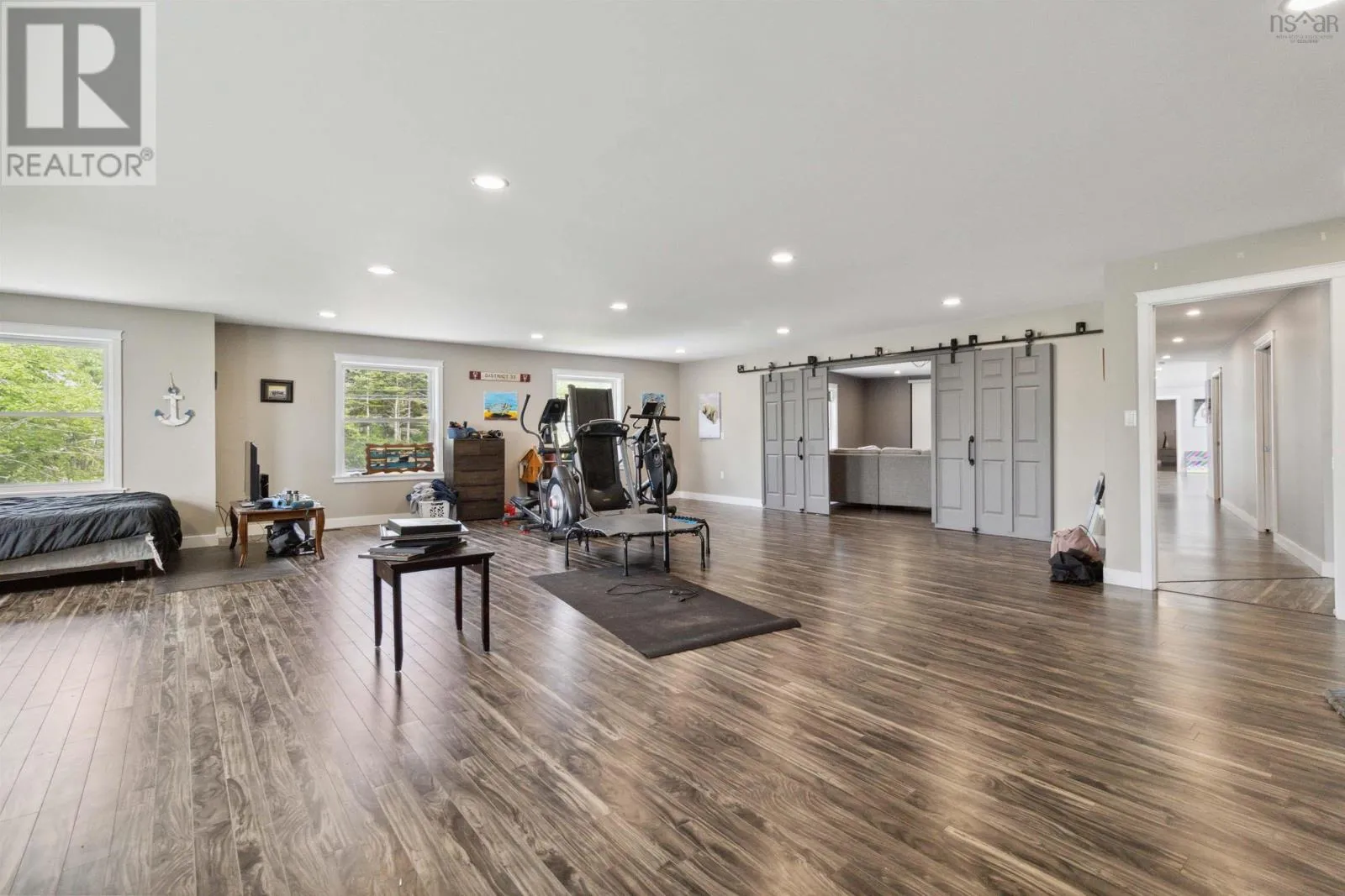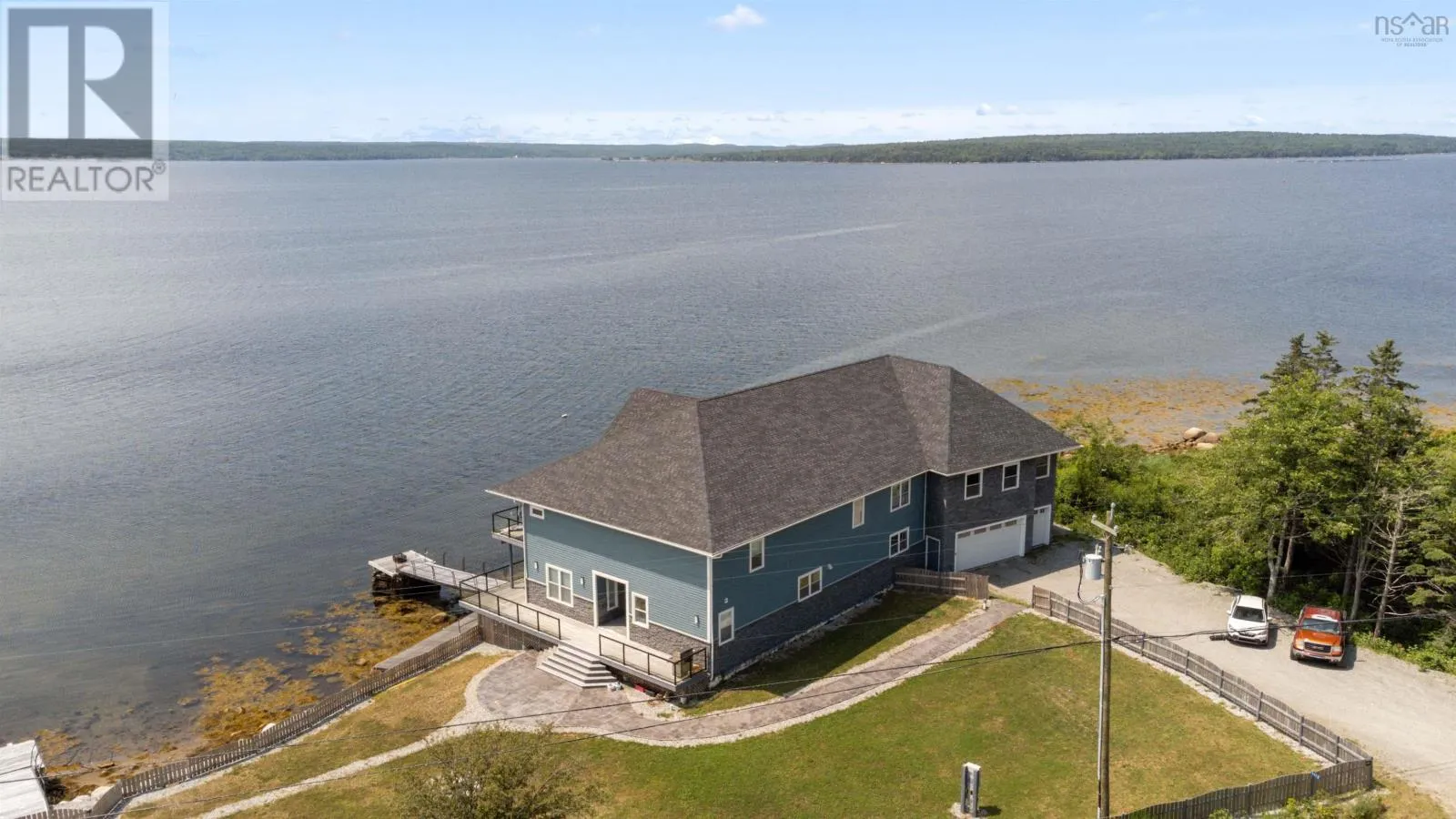 From Shelburne, head south on Sandy Point Road. property is on your right. 1112 Sandy Point Rd. Discover the epitome of coastal luxury with this magnificent, one of a kind oceanfront estate located on the picturesque Shelburne Harbour. Spanning over 9,700 square feet, this property offers unparalleled elegance and comfort, perfect for those seeking the ultimate waterfront lifestyle. Stepping inside the home, you are immediately greeted with the open concept design of the main entertaining area. The kitchen boasts two large islands and two ovens. It has corian countertops with plenty of counter space and storage, not to mention a large walk-in pantry. Continuing from the kitchen, you have the expansive living room with an open ceiling design, exposing the upper cathedral ceiling and allowing light from the oversized upper windows to fill the space. The formal dining room is located off the living room, with large windows that bring in the ocean views. On the main level, you will also find a large office overlooking the ocean, a full bathroom, an attached multi car garage, and an in-home gym fitted with rubber flooring. Moving up to the second level you're greeted with the stunning views of Shelburne Harbour. The large windows and open design make this a great sitting area to relax and take in the sun. The spacious primary bedroom is complete with a Jacuzzi tub, a balcony, a walk-in closet, and a stunning ensuite with an oversized walk-through shower. The second level also hosts the massive rec room, home theatre room, 1.5 bathrooms, as well as 3 bedrooms all with access to a connected balcony that overlooks the ocean. The basement level has recently been transformed into a 2 bedroom, 1 bathroom inlaw suite with its own kitchen, bathroom/laundry, and living rooms. There is also right of way access to the boat launch next-door. (id:27476)
