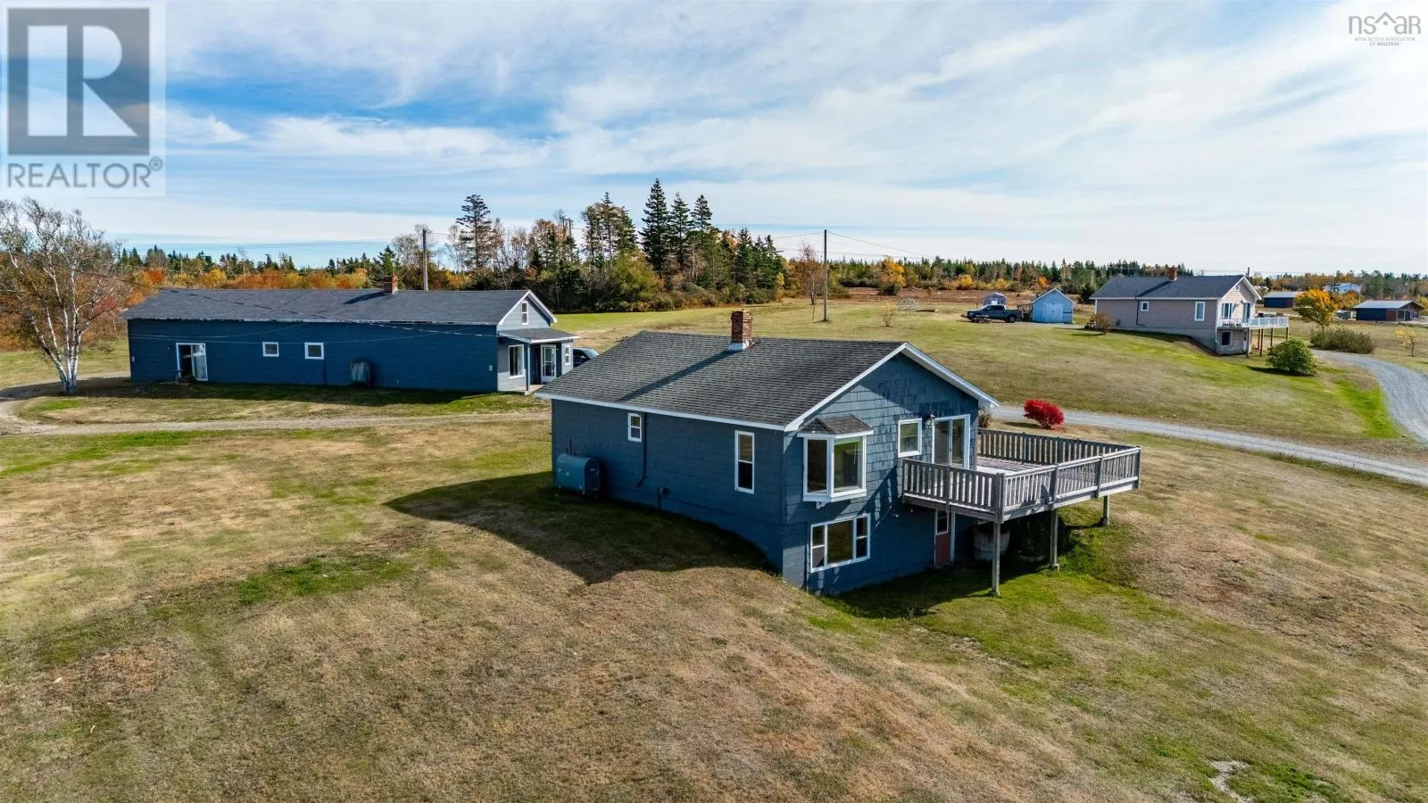 Common Cross Road. Signed on the right Discover the charm and versatility of this unique two-bedroom home set on an expansive 14-acre property surrounded by picturesque landscapes. The main home features a spacious kitchen and living room, ideal for family gatherings or quiet evenings at home. A convenient main-level laundry area full bath and two bedrooms add to the comfort and functionality of this thoughtfully designed layout. The lower level offers a large, flexible space that can easily serve a recreation room, home office, or additional storage area. With both oil and wood heating systems, this home remains efficient and easy to heat throughout the year. Step outside to enjoy a large deck-perfect for entertaining or simply relaxing as you watch the sun set over the peaceful countryside. Outdoors, you'll find a brand-new 12 x 10 greenhouse for gardening enthusiasts, a large barn for lawn and garden tools and a traditional cold cellar ideal for preserving your harvest. You will also find several ponds on the property adding exceptional value, the property also includes a separate building with two spacious two-bedroom apartments, presenting an excellent opportunity for rental income. With its vast acreage, scenic setting, and multiple income possibilities, this property is truly a rare find--offering the best of rural living with modern comfort and potential. (id:27476)