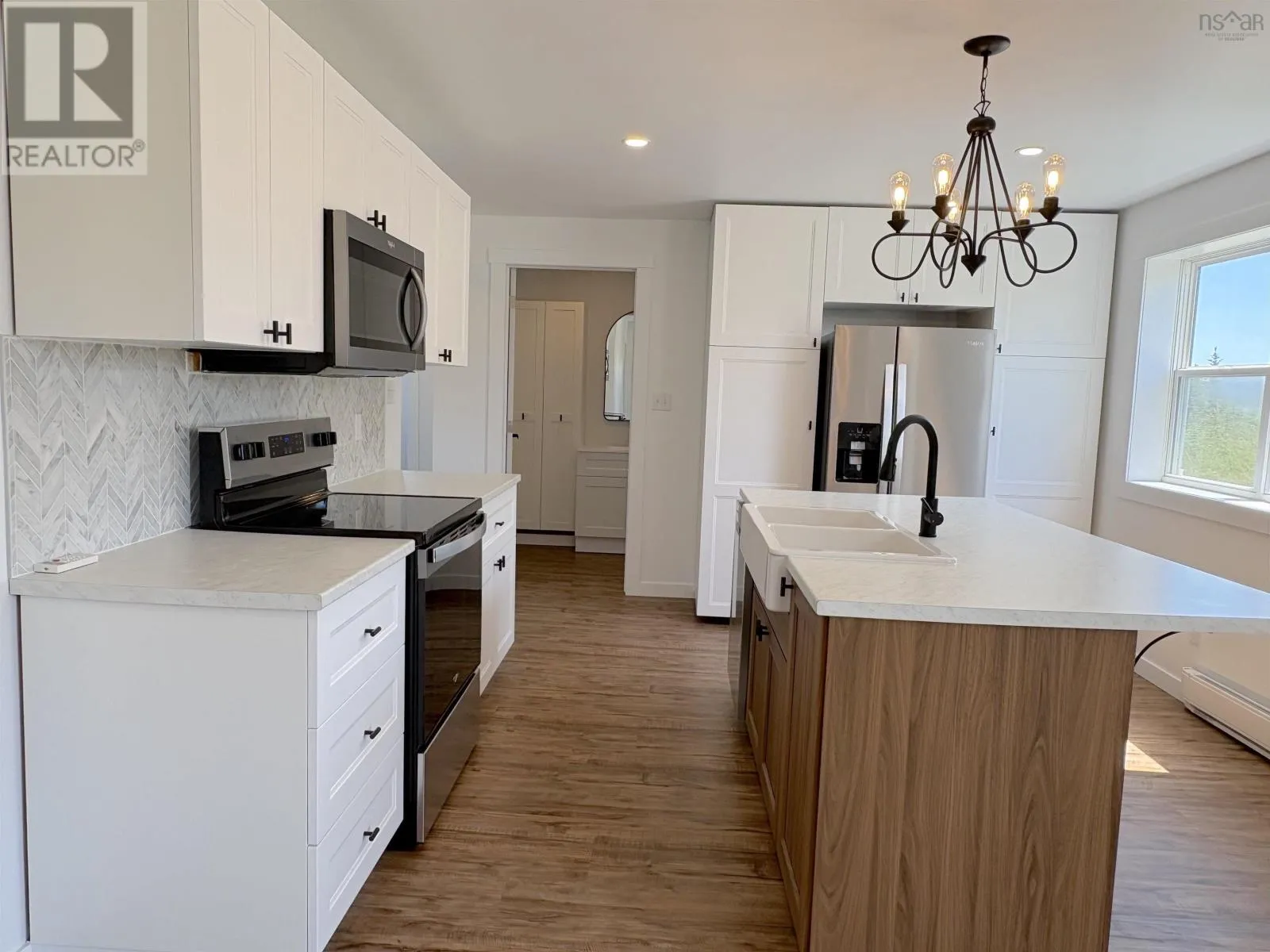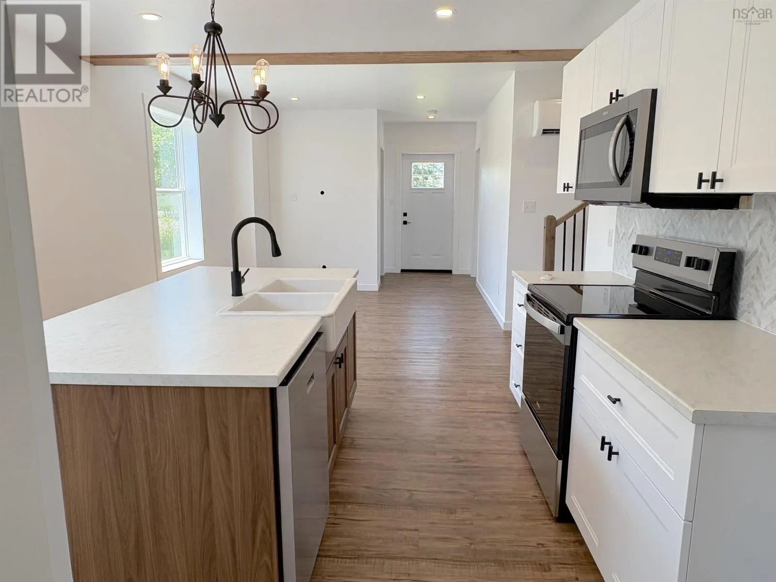 off highway 103 take exit to villagedale follow signs towards baccaro house is on the corner of port latour road and smithsville wharf road Welcome to 17 Smithsville Wharf Rd, a charming Haven just a short stroll from the stunning shores, where pristine white sand meets breathtaking views. This elegantly renovated home is move-in ready, featuring high end appliances and a modern heat pump. Perfectly blending character with convenience. As you enter, you are greeted by a spacious mudroom and a convenient laundry area. The heart of the home boasts an open concept kitchen equipped with a large island, seamlessly flowing into a cozy living space. Adjacent to the living area discover the primary bedroom complete with a convenient two piece bath for your comfort. Venture upstairs to find two generously sized bedrooms, each offering ample storage solutions. This property is not just a home; it's a lifestyle waiting to be embraced. Located close to many beaches, golf course and provincial park. (id:27476)