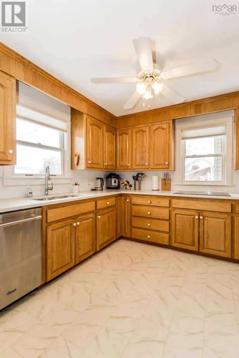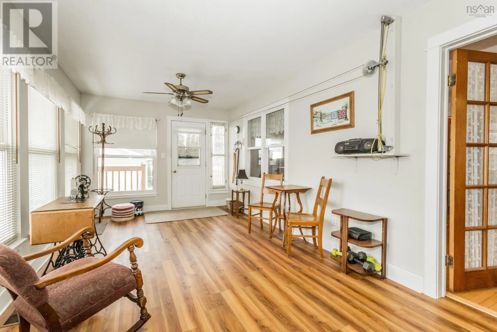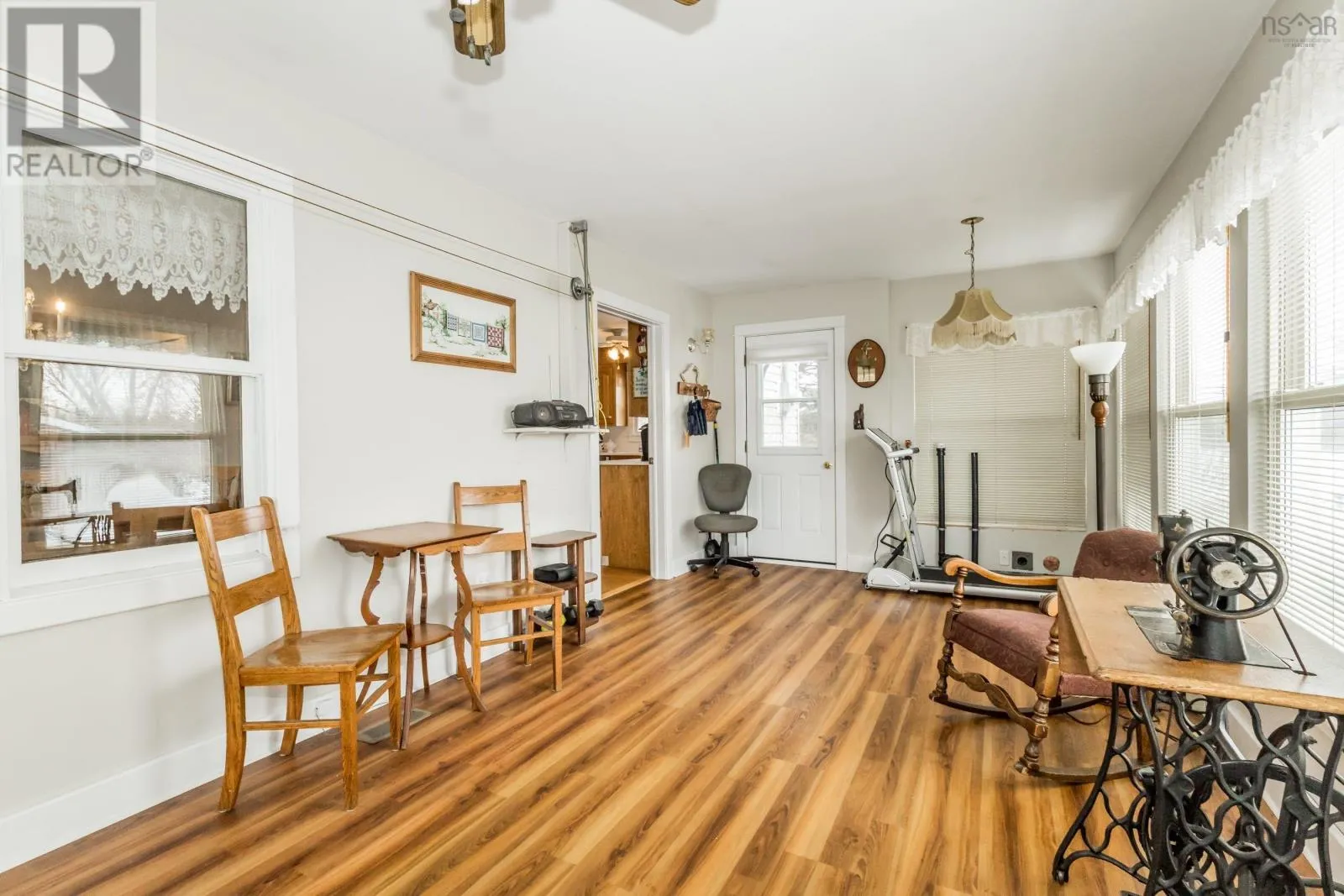 From Hwy 1 turn Into Berwick, continue past the highway into Somerset, look for civic/sign on LHS. Well loved and originally owned bungalow located in the quaint community of Somerset. This wonderful property has been extremely well kept and all the heavy lifting is already done. Situated on just shy of a half-acre lot, this private backyard offers three outbuildings, which include a detached 24x24 wired double garage with an additional 12x21 extra storage add-on, a 12x20 baby barn which is perfect for a workshop, and also a garden shed. A covered back veranda is the perfect place to enjoy the view and relax. Inside you will find a south facing sunroom with ample windows and space, a spacious eat-in kitchen with beautiful oak cabinets, solid surface countertops, and a tile backsplash with all kitchen appliances included. A lovely formal dining space with beautiful hardwood floors. An inviting living room with a wood fireplace, heat pump, and plenty of space for the family to enjoy. 2 good size bedrooms on the main and a 4pc bath with laundry and a claw-foot tub. Downstairs you will find the 3rd bedroom, large rec room, 1/2 bath, and ample storage and a cold/wood room. The home has been very well maintained with newer roof shingles, a newer back deck, maintained heating appliances, and much more. With great curb appeal and within 5 minutes to the town of Berwick and highway 101 access, this property is ready for new owners. Line up your agent of choice today for your very own viewing. (id:27476)