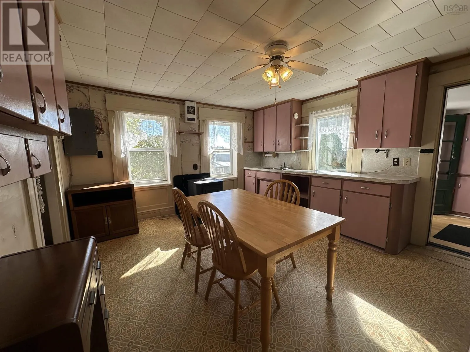 Main shore road to Peterson road Just minutes from town, sits this 4-5 bedroom, 2 bath century farmhouse with a beautiful yard filled with an active vegetable garden, apple trees, fir trees, a stone wall, and 4 sheds for lots of storage! The 1.6 acre property measures 150' x 450'.  Walk into the mudroom with laundry and then into the eat in kitchen. There's a room off the kitchen that would make a nice office or large walk-in pantry. The 5th bedroom was created on the main floor by dividing the living room with a partial wall to make the primary bedroom. This could easily be removed to enjoy a large living room with views of beautiful backyard and farm fields in the distance. If you're looking for an attached garage the rec room with patio doors can be converted back to its original use as a garage. Upstairs you will find 4 bedrooms, a full bath and the stairs to the wide open attic which can be used for all the storage you will need! (id:27476)