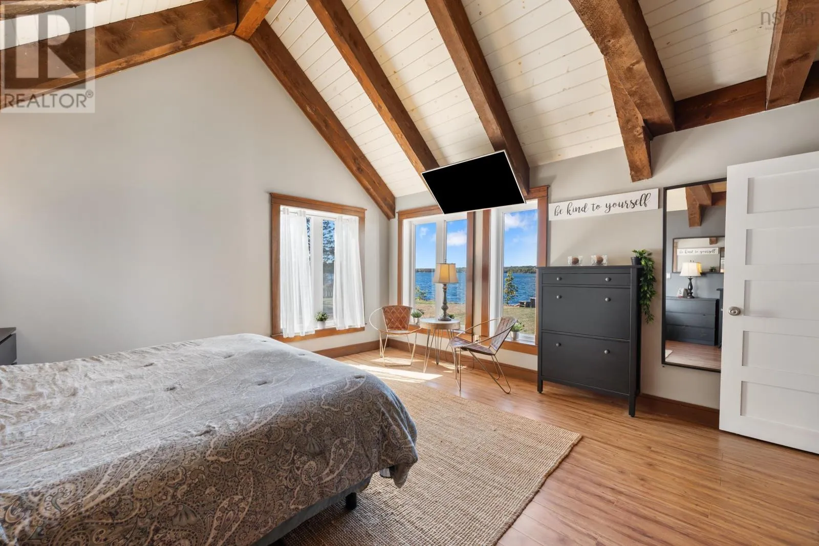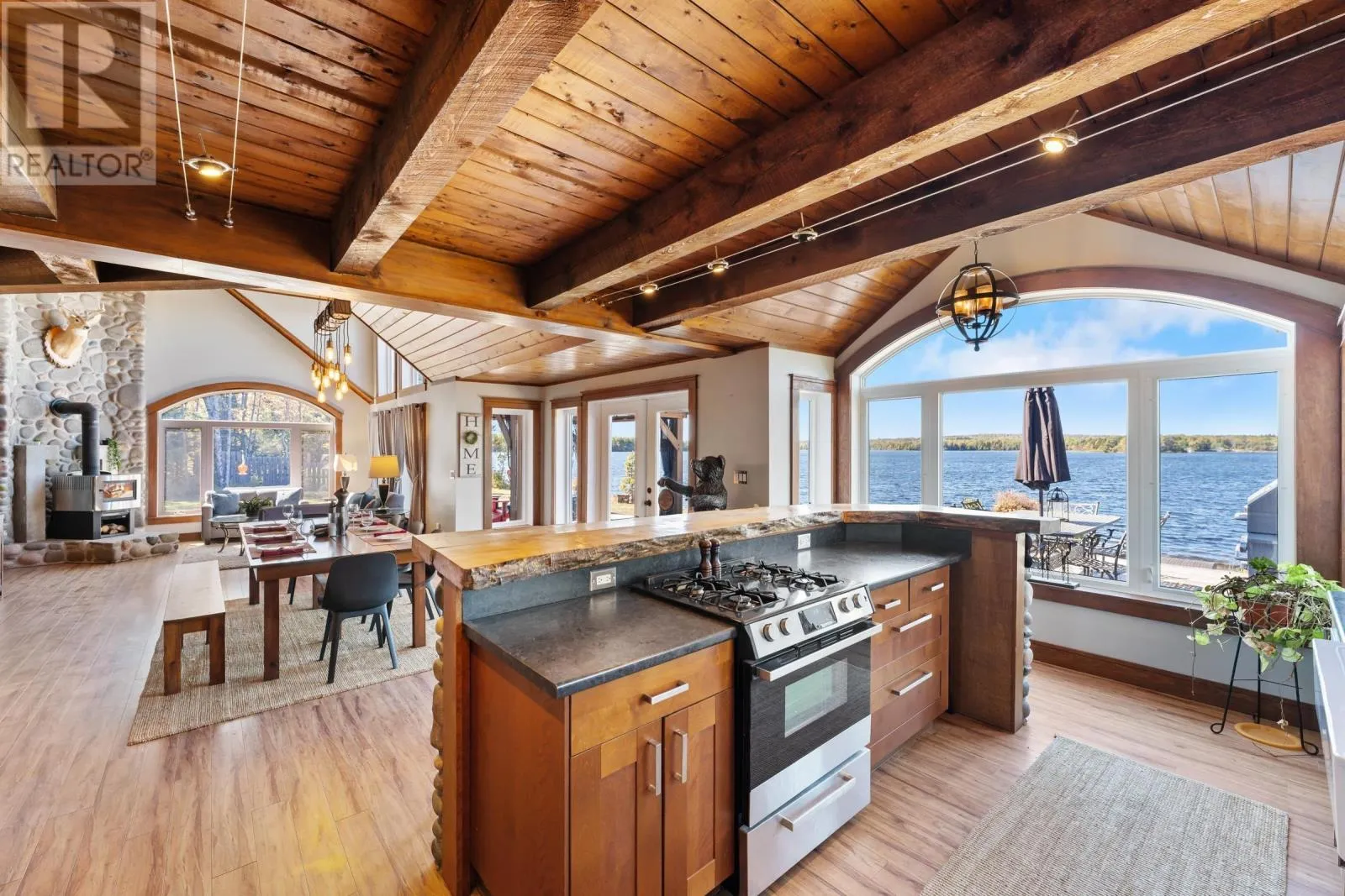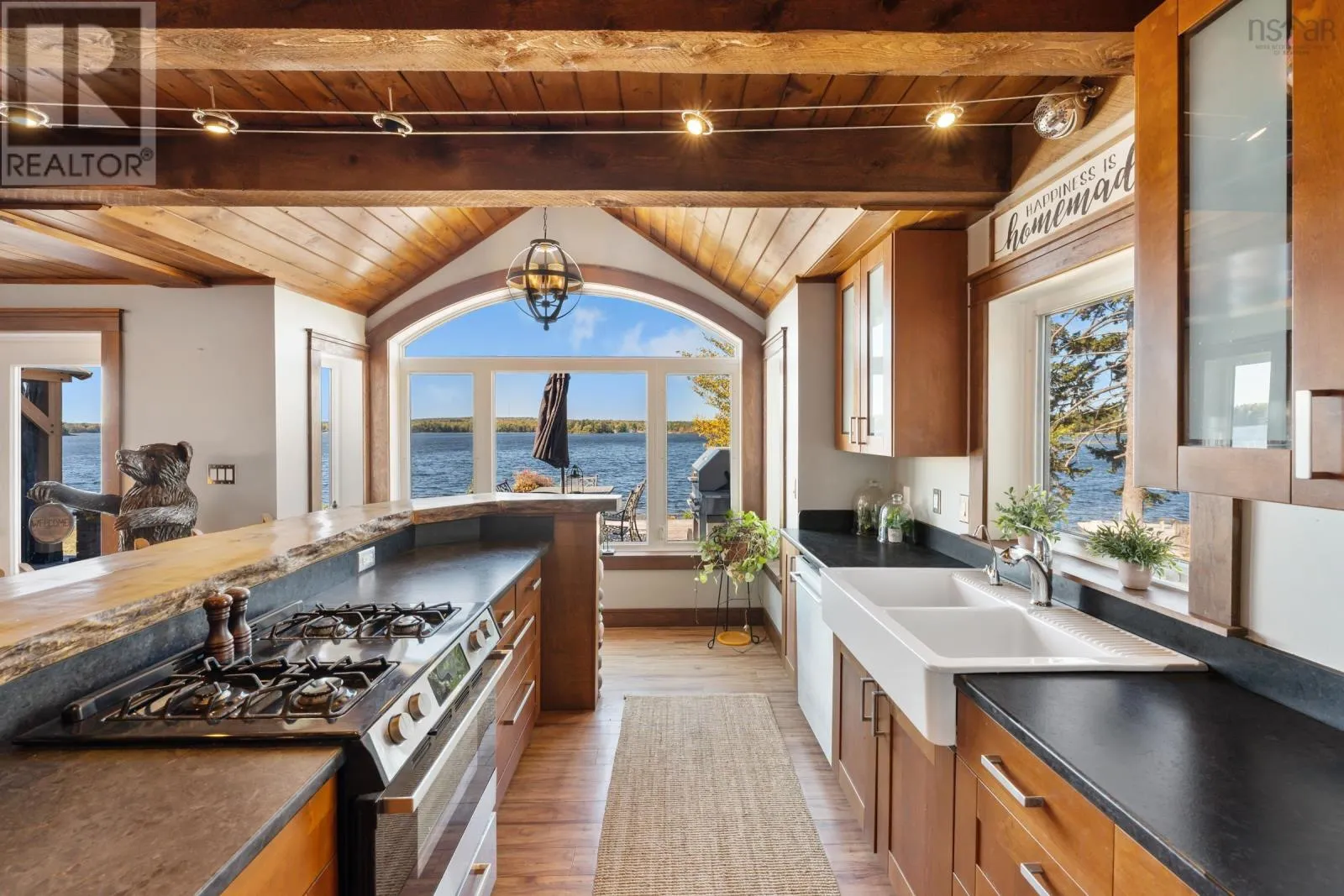 Contact Listing Agent Live the dream at 141 and 143 Timberland Trail, located on nearly 9 acres with approximately 494 feet of water frontage on desired Porters Lake. This lake is located 15 minutes to the town of Digby and is the perfect lake to swim, fish and boat on. This property features a main house, separate apartment and detached, year round ,waterfront cabin, all with their own kitchens and living spaces. The outside spaces are plentiful and welcoming with covered porches, outside fireplaces, play and entertainment areas, beautifully landscaped lawns and gardens and a beach and dock area. Inside the main house you will be greeted by fantastic views from every room, open kitchen, living and dining. A main floor primary suite with a 4 piece bath and walk in closet. There is also a large family room with a pool table and bar in place. On the upper level 3 additional bedrooms and another full bath. The upstairs apartment holds 1.5 baths, two bedrooms and a kitchen and living room, again with spectacular views. There is also a double attached, heated and wired garage, dog run and house, 2 story boathouse, 400 Amp power entrance, wine cellar, in floor heat and the most amazing sunsets. Being offered mostly furnished and with all appliances and guest space essentials! (id:27476)