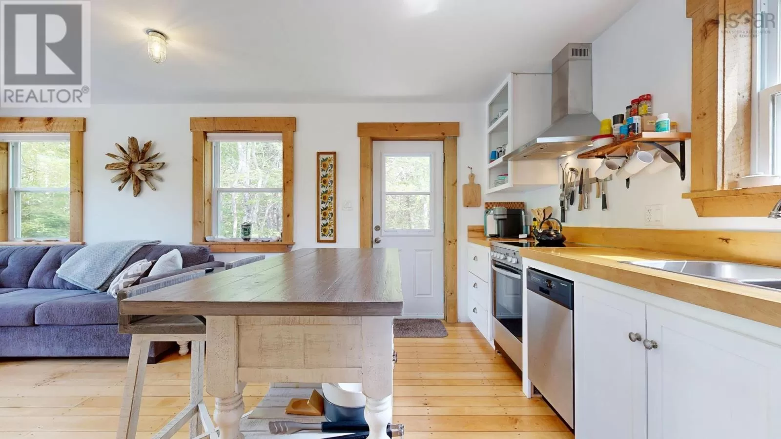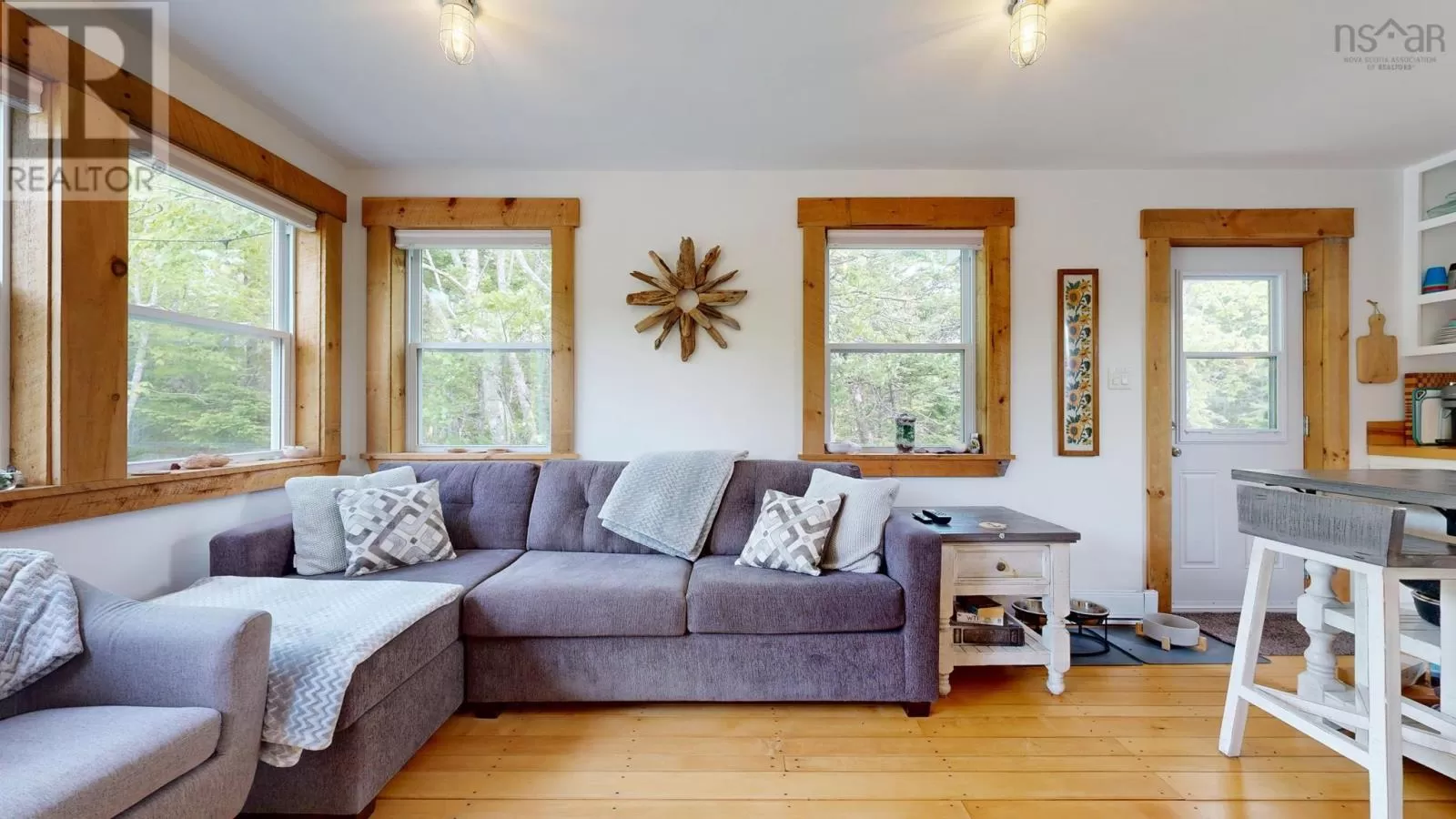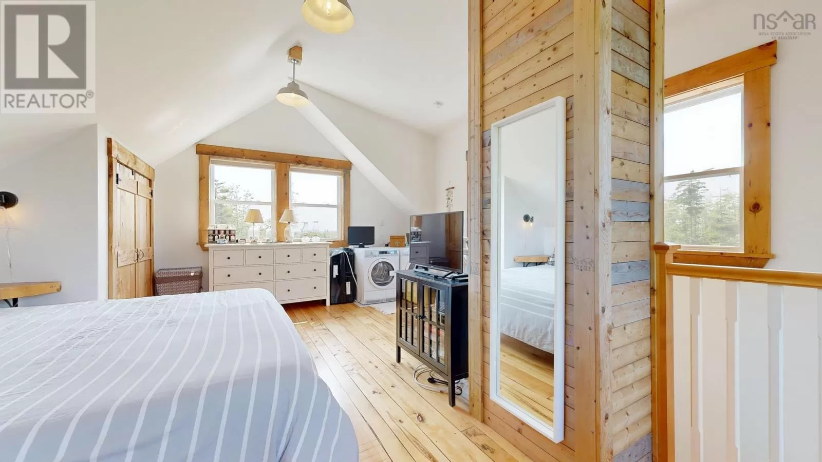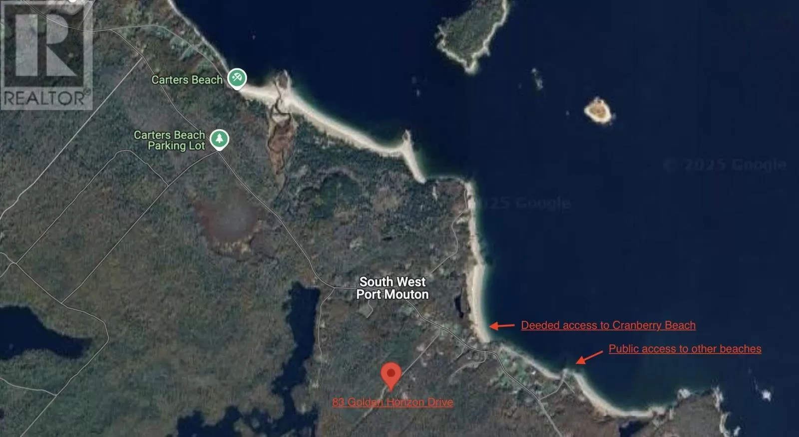 Take highway 103 to exit 21, turn right onto lighthouse route 3, then left onto Central Port Mouton Road, and right onto Golden Horizon Drive to civic # 83. Welcome to 83 Golden Horizon Drive perched on a scenic hill overlooking breathtaking sunsets and a serene natural landscape surrounded by trees. Set on 1.02 acres, this thoughtfully designed 1-bedroom, 1-bath home offers the perfect blend of privacy, craftsmanship and low maintenance living. Built in 2017 with high quality materials and comfort in mind, the 756 square feet home maximizes every inch of space. The main floor welcomes you with a sun-filled, open-concept living area anchored by warm maple floors, pine trim, and a cozy wood stove. A pantry and a stunning spa-inspired bathroom with a glass-enclosed shower complete this level. Upstairs, the bright and airy loft-style bedroom offers elevated views of the horizon, a convenient office nook, his-and-her closets, and laundry. The heated basement provides valuable additional storage, keeping your main living space clutter-free. Enjoy deeded access to Cranberry Beach, a secluded stretch of white sand on the same coastline as the famous Carters Beach. Just a 5-minute stroll away, this private beach offers endless opportunities for swimming, surfing, kayaking, and more. Protected by restrictive covenants and maintained through a road association, this property ensures a peaceful, well-kept environment. Whether you're seeking a full-time home or seasonal getaway, this property captures the essence of coastal living in a tranquil, elevated setting. Located only 24 km to Liverpool, and 160 km to Halifax. Furnishings are negotiable. (id:27476)