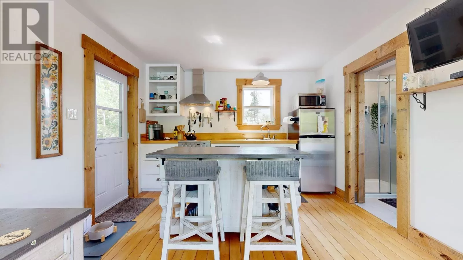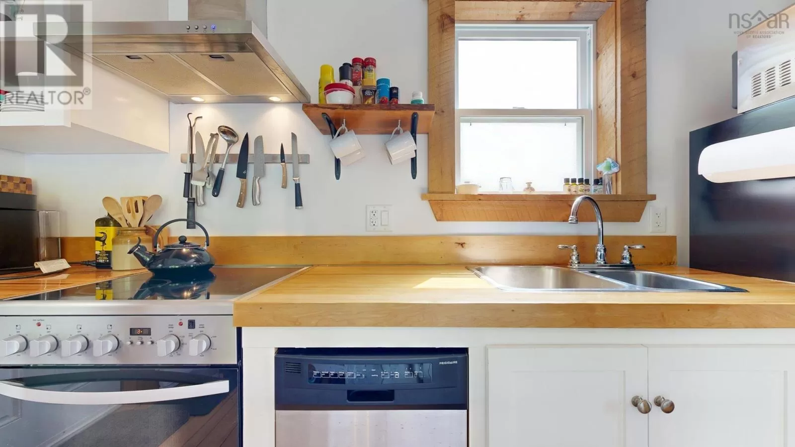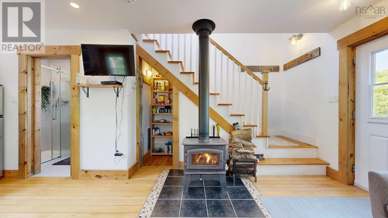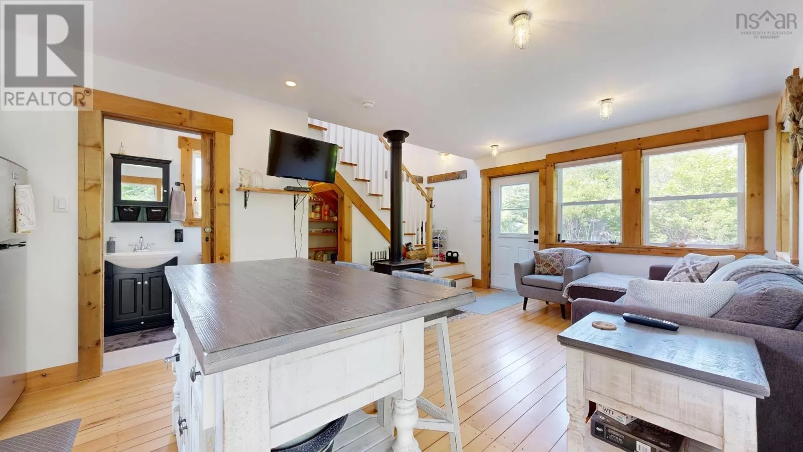Take highway 103 to exit 21, turn right onto lighthouse route 3, then left onto Central Port Mouton Road, and right onto Golden Horizon Drive to civic # 83. Welcome to 83 Golden Horizon Drive perched on a scenic hill overlooking breathtaking sunsets and a serene natural landscape surrounded by trees. Set on 1.02 acres, this thoughtfully designed 1-bedroom, 1-bath home offers the perfect blend of privacy, craftsmanship and low maintenance living. Built in 2017 with high quality materials and comfort in mind, the 756 square feet home maximizes every inch of space. The main floor welcomes you with a sun-filled, open-concept living area anchored by warm maple floors, pine trim, and a cozy wood stove. A pantry and a stunning spa-inspired bathroom with a glass-enclosed shower complete this level. Upstairs, the bright and airy loft-style bedroom offers elevated views of the horizon, a convenient office nook, his-and-her closets, and laundry. The heated basement provides valuable additional storage, keeping your main living space clutter-free. Enjoy deeded access to Cranberry Beach, a secluded stretch of white sand on the same coastline as the famous Carters Beach. Just a 5-minute stroll away, this private beach offers endless opportunities for swimming, surfing, kayaking, and more. Protected by restrictive covenants and maintained through a road association, this property ensures a peaceful, well-kept environment. Whether you're seeking a full-time home or seasonal getaway, this property captures the essence of coastal living in a tranquil, elevated setting. Located only 24 km to Liverpool, and 160 km to Halifax. Furnishings are negotiable. (id:27476)