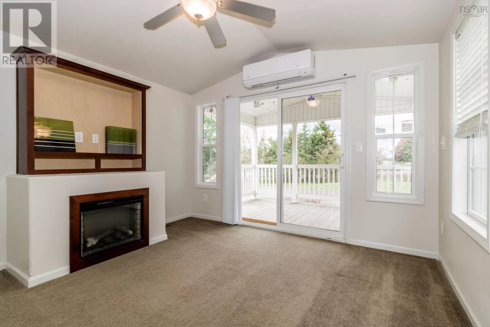 North on Spa Springs Road, property on LHS, See Sign. Excellent starter or retirement property. Situated on an acre lot with multiple outbuildings, privacy, and within 10 minutes to Middleton town amenities. This property has lots of potential and more. Featuring a one-level living home with 2 bedrooms with built-in cabinets perfect for storage and built-in bunk beds. A 4-piece main bath with storage under the vanity. Open concept living space with a stylish kitchen equipped with appliances, a propane cooking stove, excellent storage, and stylish cabinets. Vaulted ceilings, a lovely electric fireplace focal point, and an efficient heat pump. Patio doors leading onto the covered front veranda, a perfect place to sit and relax while drinking your morning coffee. Excellent opportunity for some hobby farming as well, with a 22x35 barn with water, 11x14 outbuilding or workshop, and an additional 12x8 shed. Gravel driveway with an abundance of parking and a brand-new side deck. This home is move-in ready and can accommodate a quick closing. Book your viewing today! (id:27476)