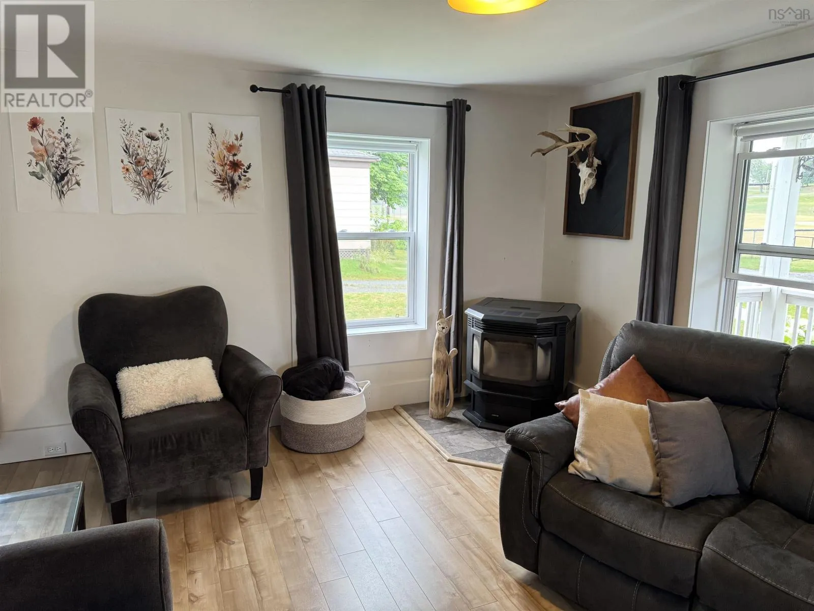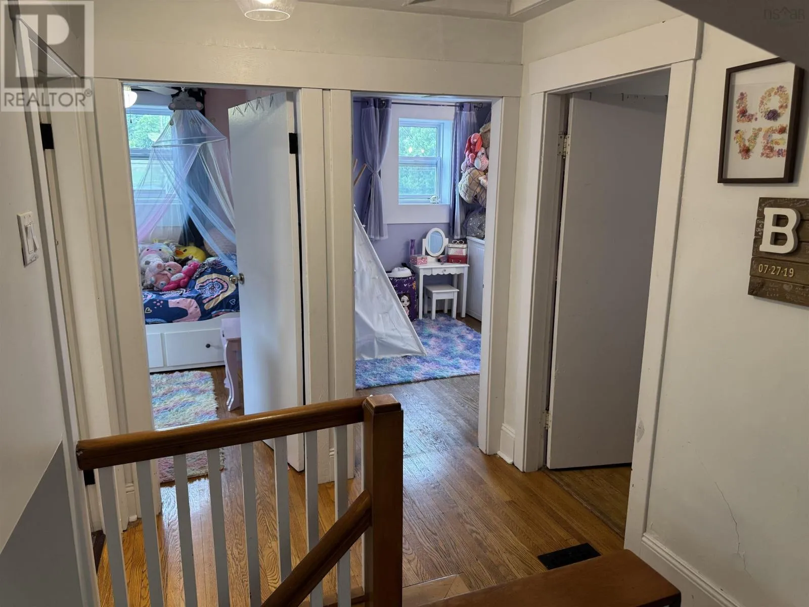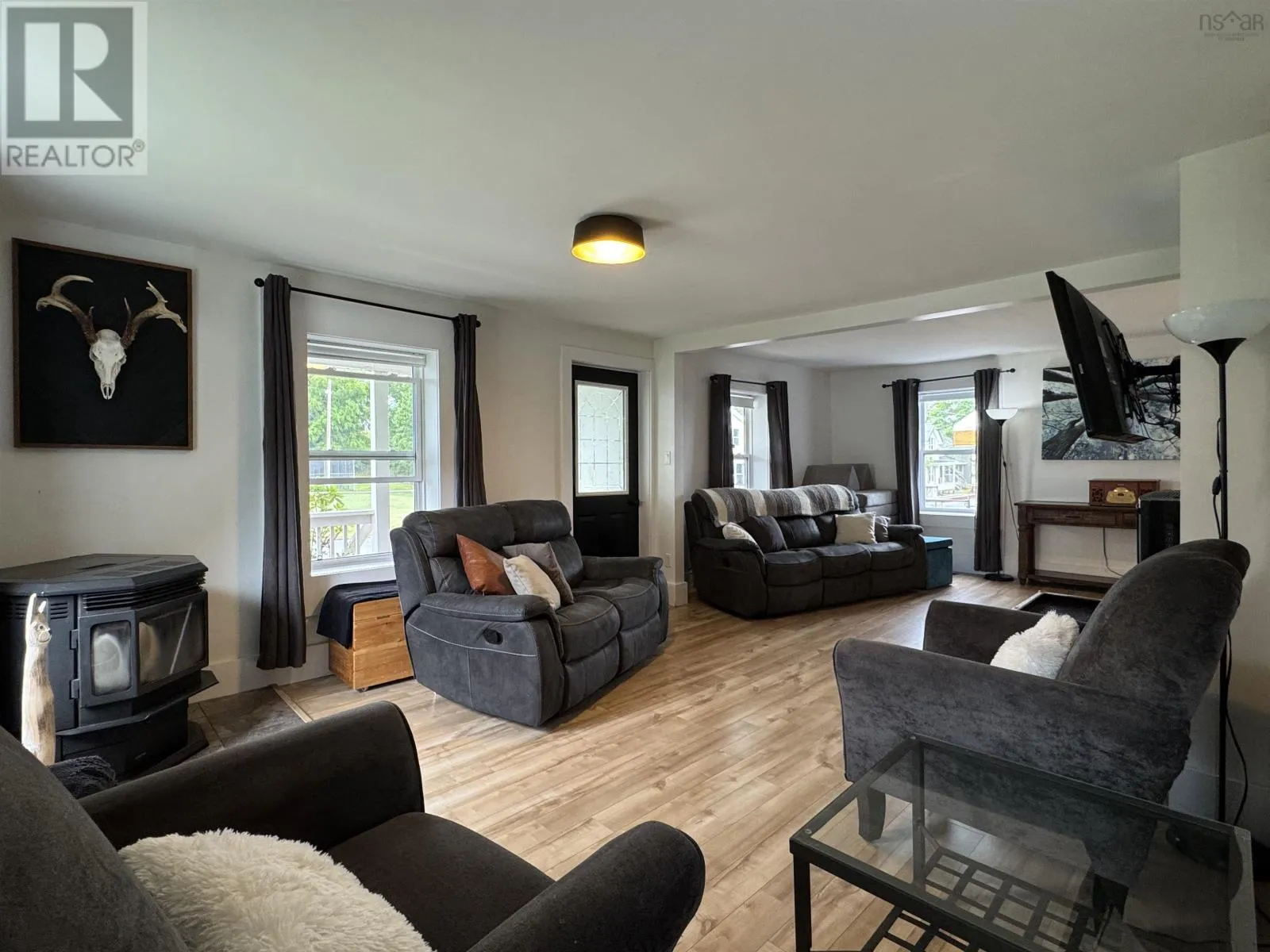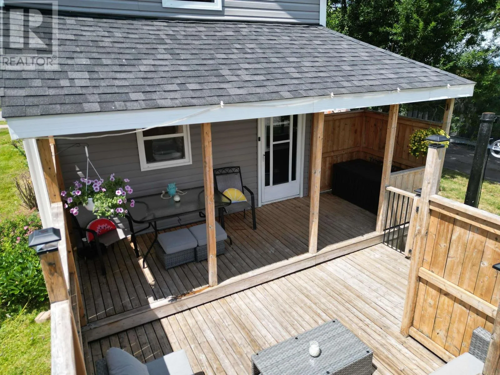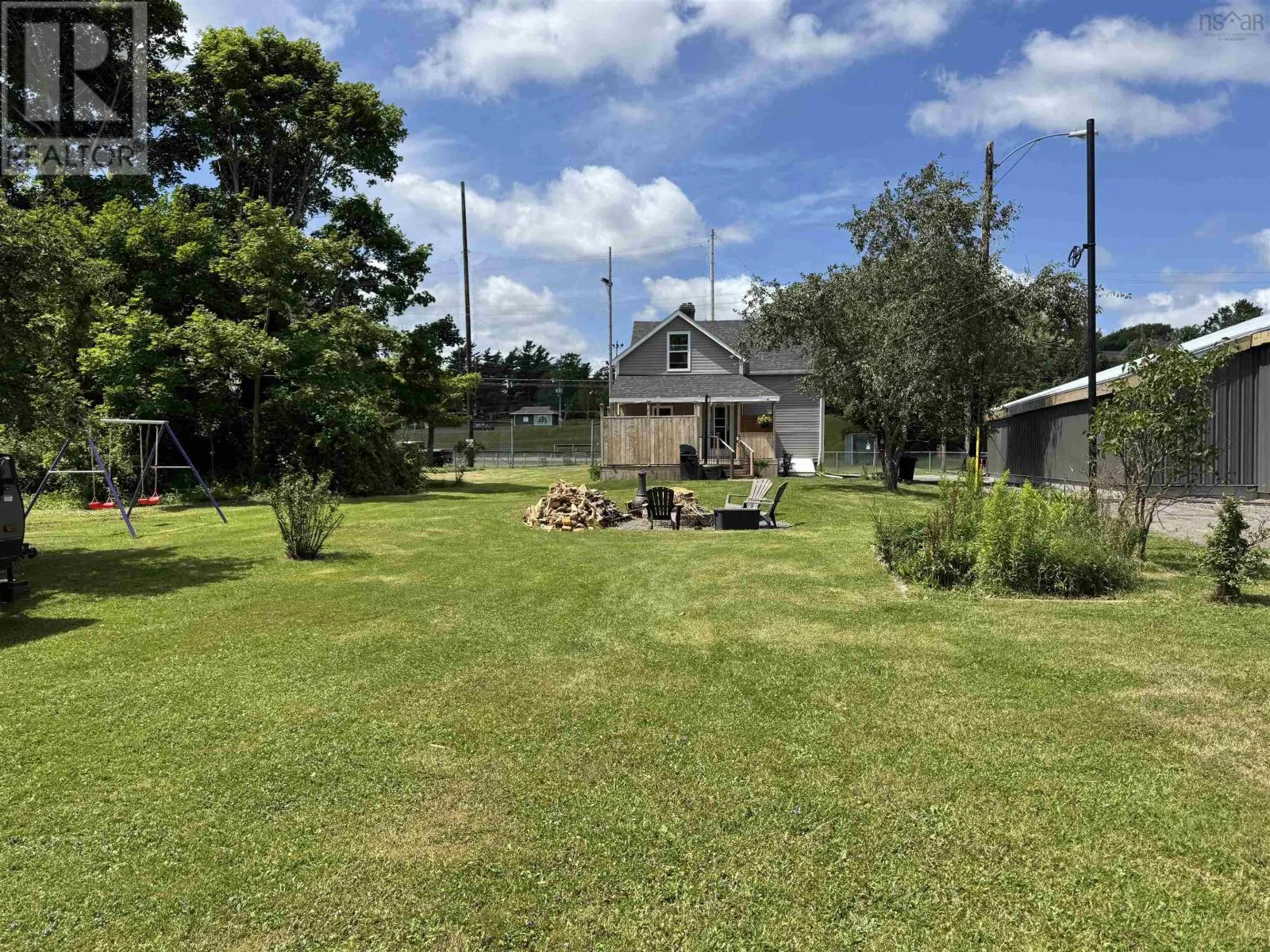 From South Main street turn up Jubilee Ave. Turn left on Stellar Street, property adjacent to the new indoor courts, watch for the sign. Welcome to this charming 4-bedroom, 1.5-bath home nestled on a quiet one-way street in Stellarton, directly across from the ball field and just a short stroll to Main Streets shops, restaurants, and amenities. Step inside to find a beautifully renovated main floor where the living and dining room flow seamlessly together, complete with a cozy pellet stove for those chilly evenings. The kitchen offers plenty of room to cook and gather, and opens onto a two-tiered back deck with a privacy wall perfect for outdoor entertaining or quiet relaxation. Upstairs, you'll find four bedrooms and a full bathroom that has been tastefully updated. With newer windows, insulation, and siding, this home offers both charm and peace of mind. The deep, landscaped backyard is a true retreat with a fire pit, shed, and plenty of room to play or garden. Enjoy your morning coffee on the classic covered front verandah and take in the friendly neighborhood vibe. A wonderful opportunity in a prime location dont miss your chance to make it yours! (id:27476)