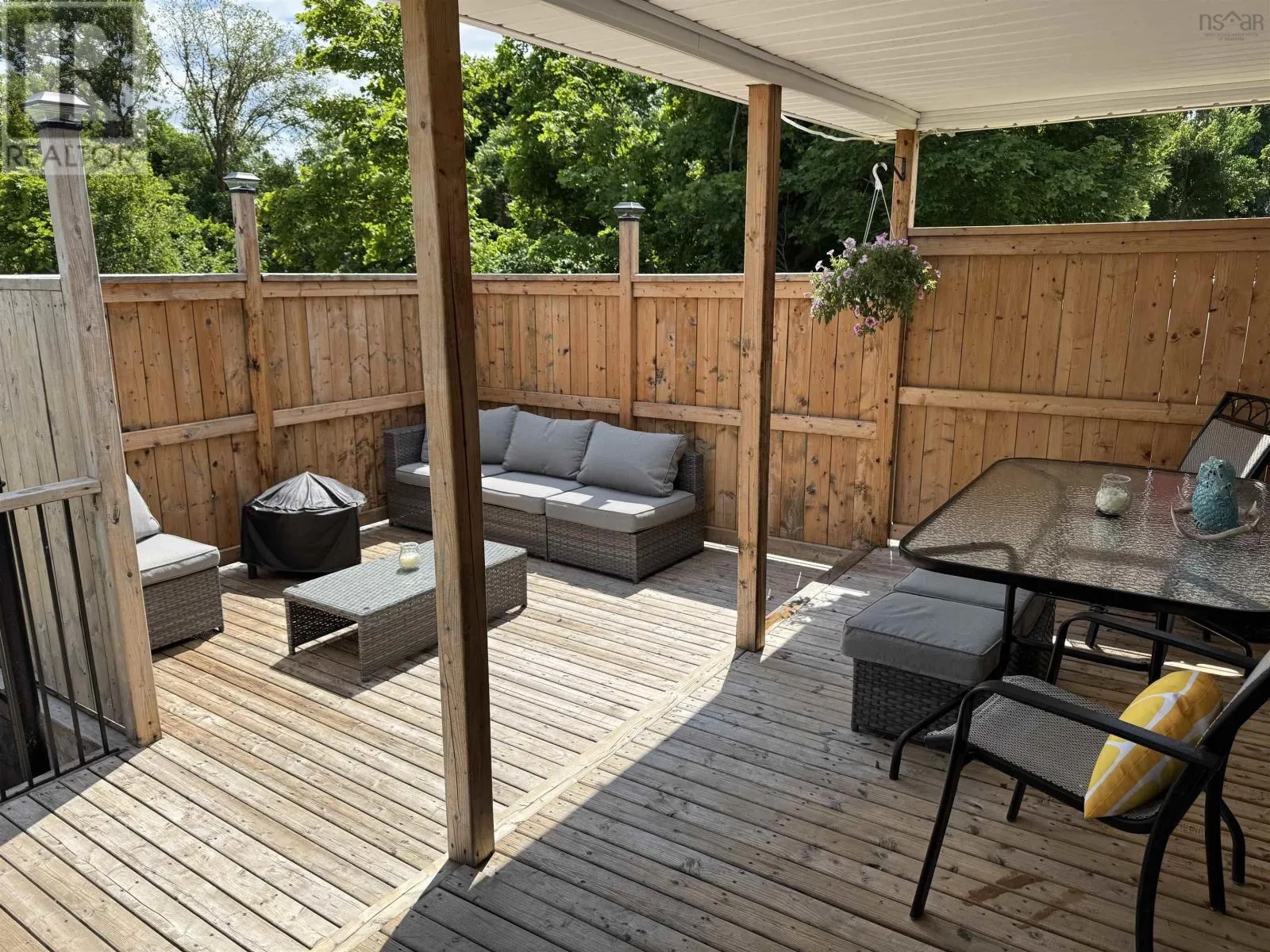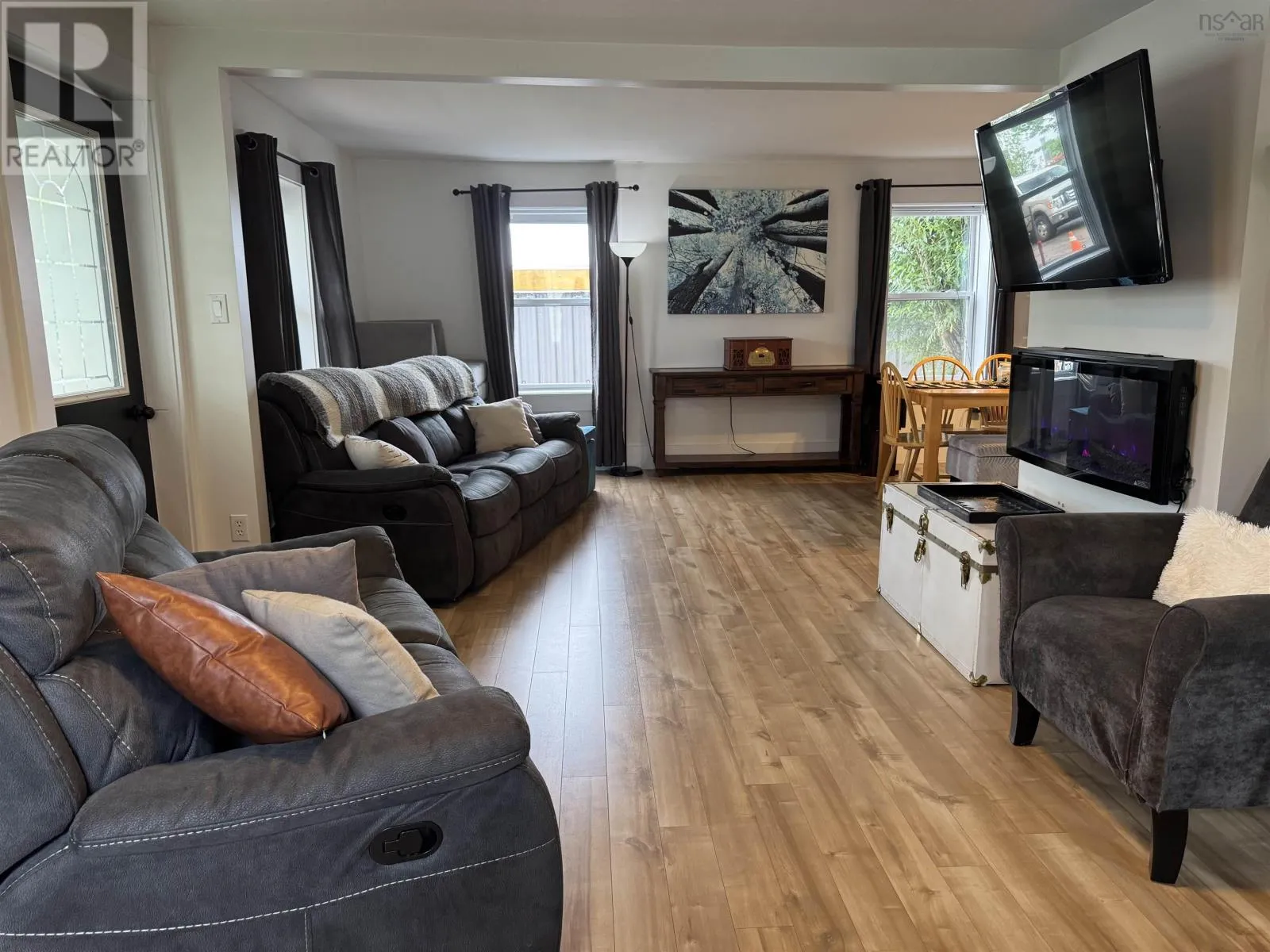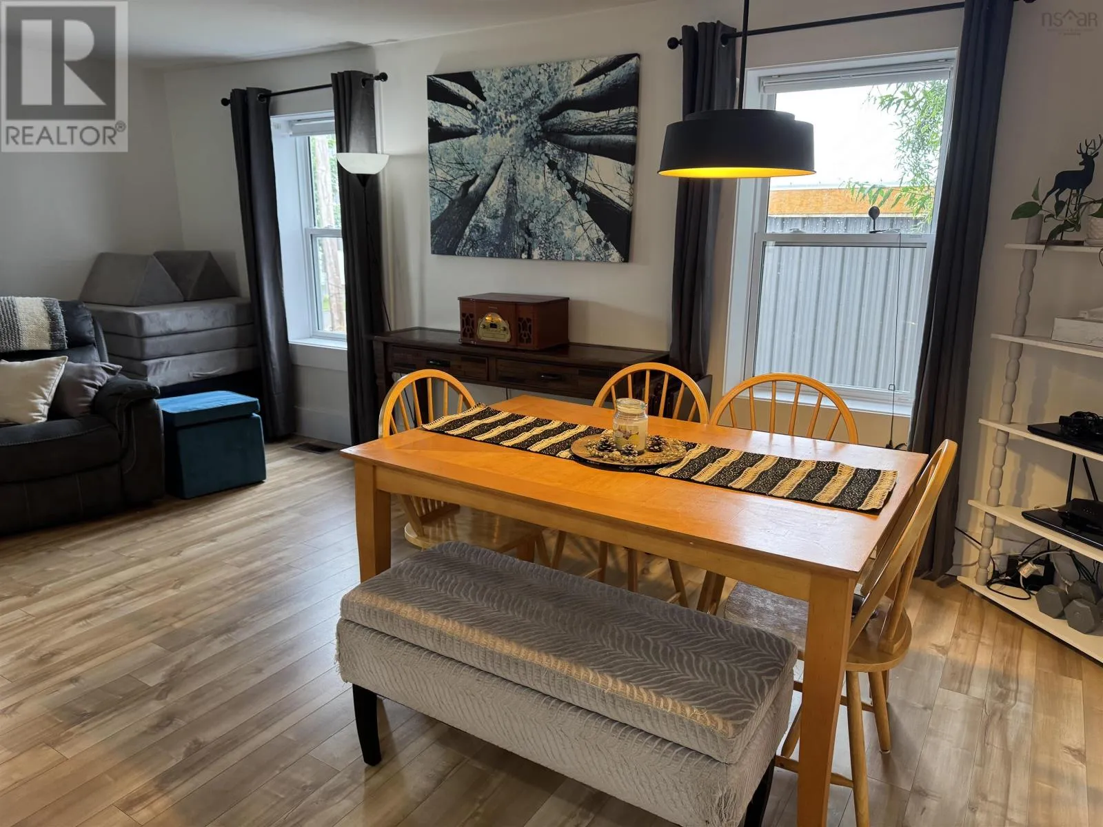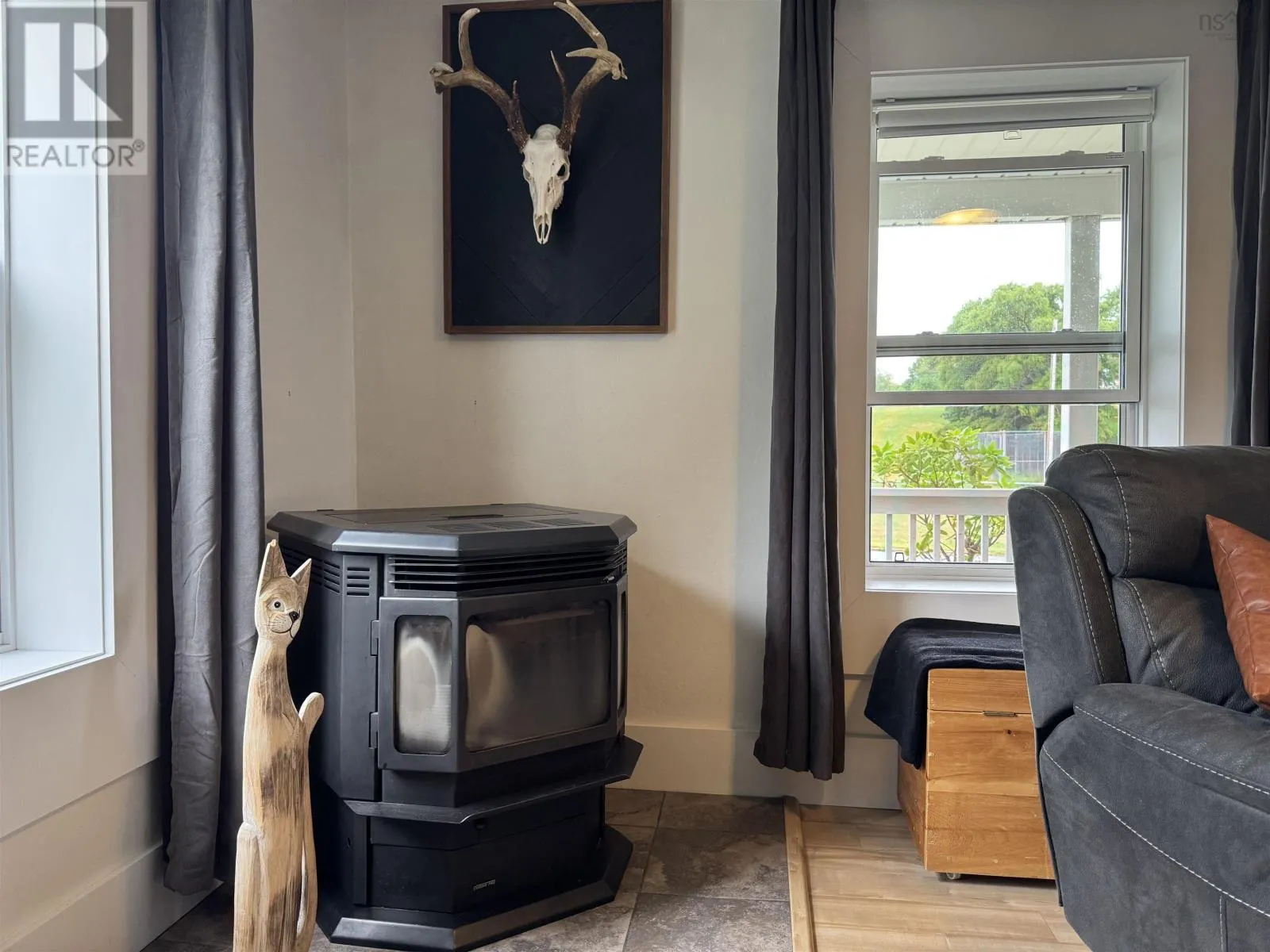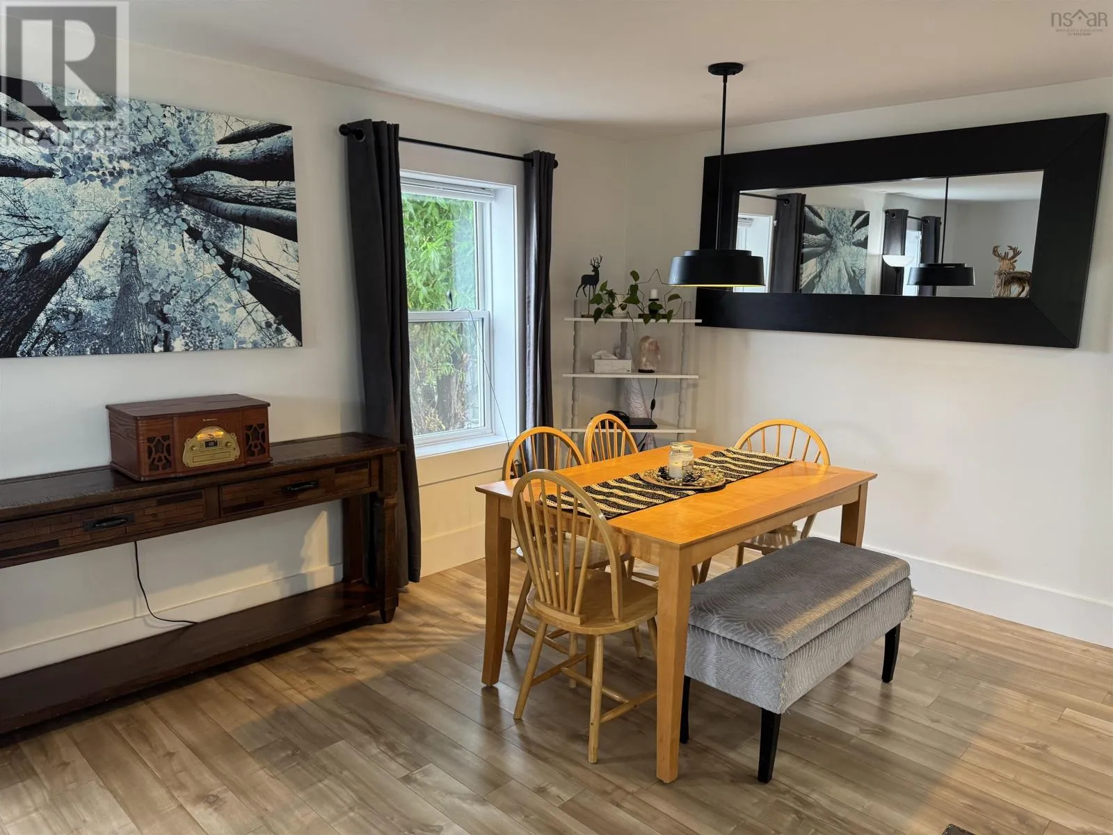 From South Main street turn up Jubilee Ave. Turn left on Stellar Street, property adjacent to the new indoor courts, watch for the sign. Welcome to this charming 4-bedroom, 1.5-bath home nestled on a quiet one-way street in Stellarton, directly across from the ball field and just a short stroll to Main Streets shops, restaurants, and amenities. Step inside to find a beautifully renovated main floor where the living and dining room flow seamlessly together, complete with a cozy pellet stove for those chilly evenings. The kitchen offers plenty of room to cook and gather, and opens onto a two-tiered back deck with a privacy wall perfect for outdoor entertaining or quiet relaxation. Upstairs, you'll find four bedrooms and a full bathroom that has been tastefully updated. With newer windows, insulation, and siding, this home offers both charm and peace of mind. The deep, landscaped backyard is a true retreat with a fire pit, shed, and plenty of room to play or garden. Enjoy your morning coffee on the classic covered front verandah and take in the friendly neighborhood vibe. A wonderful opportunity in a prime location dont miss your chance to make it yours! (id:27476)