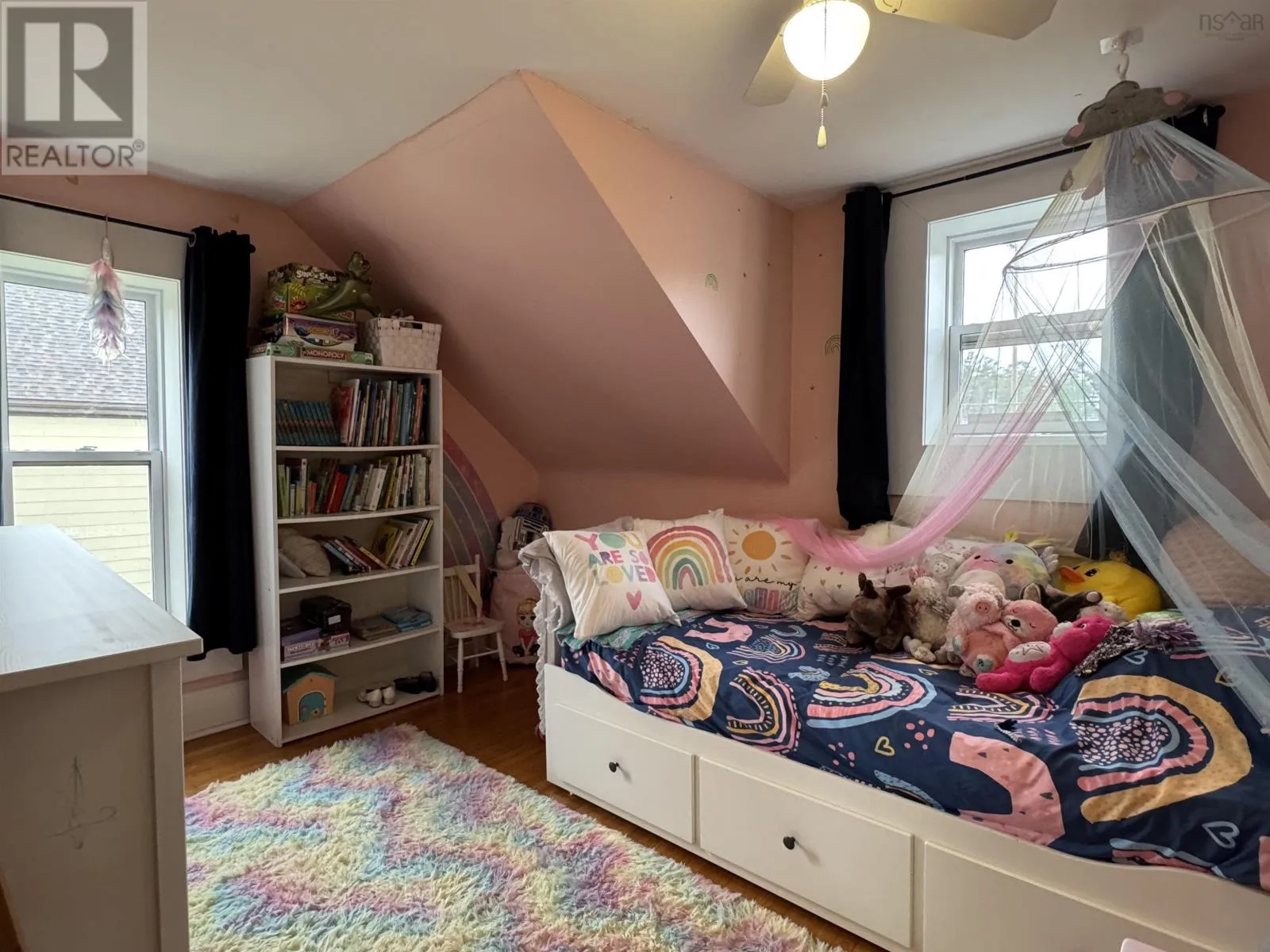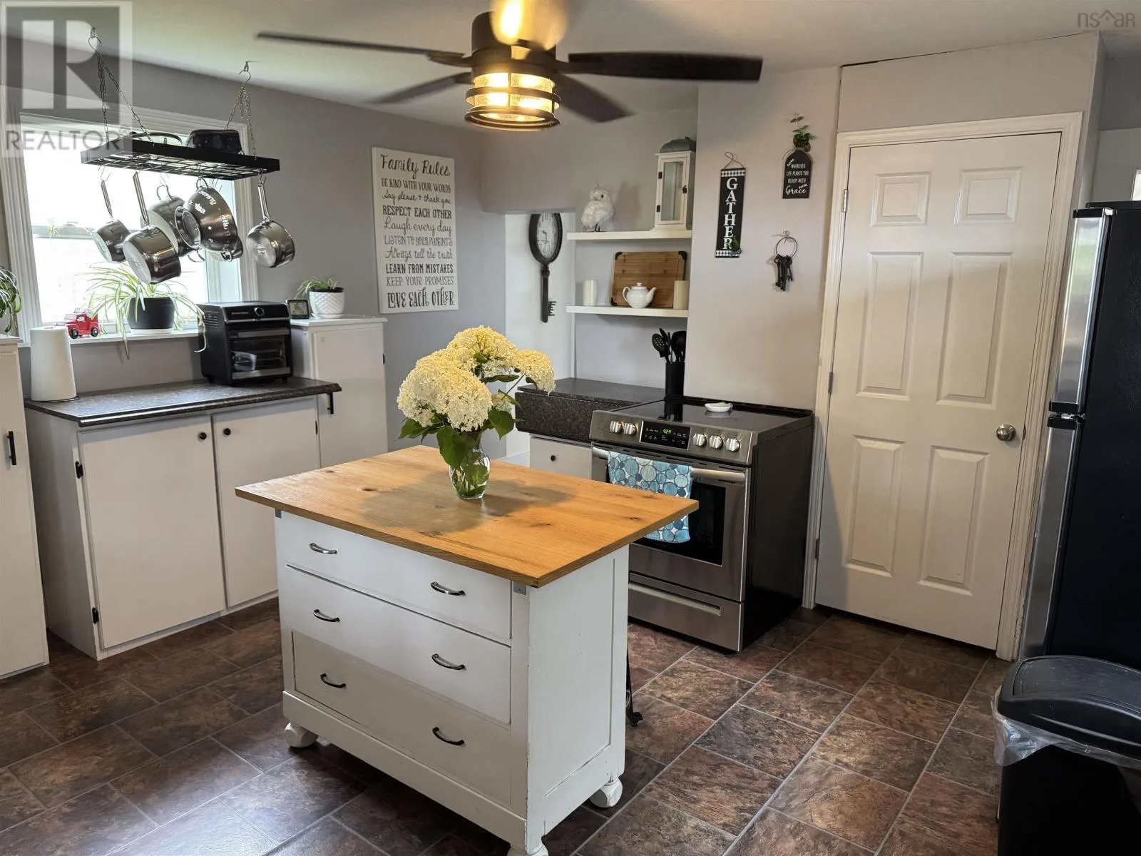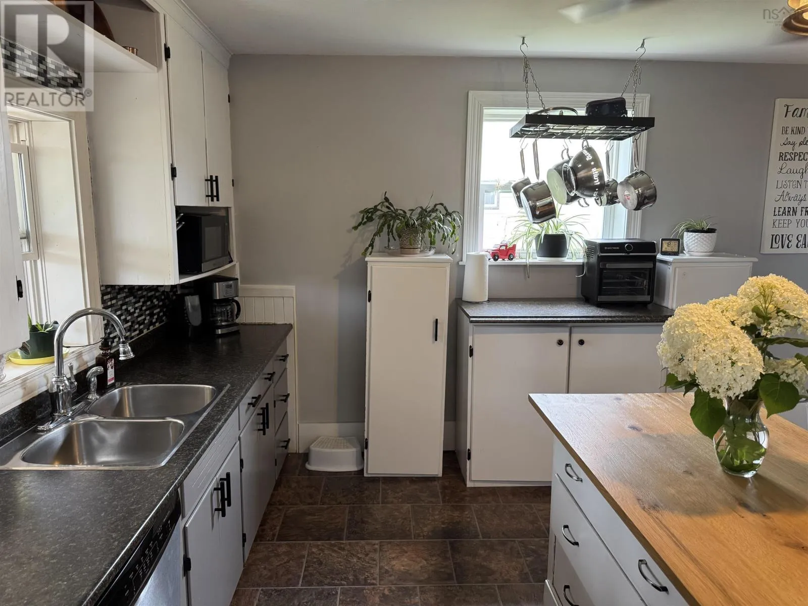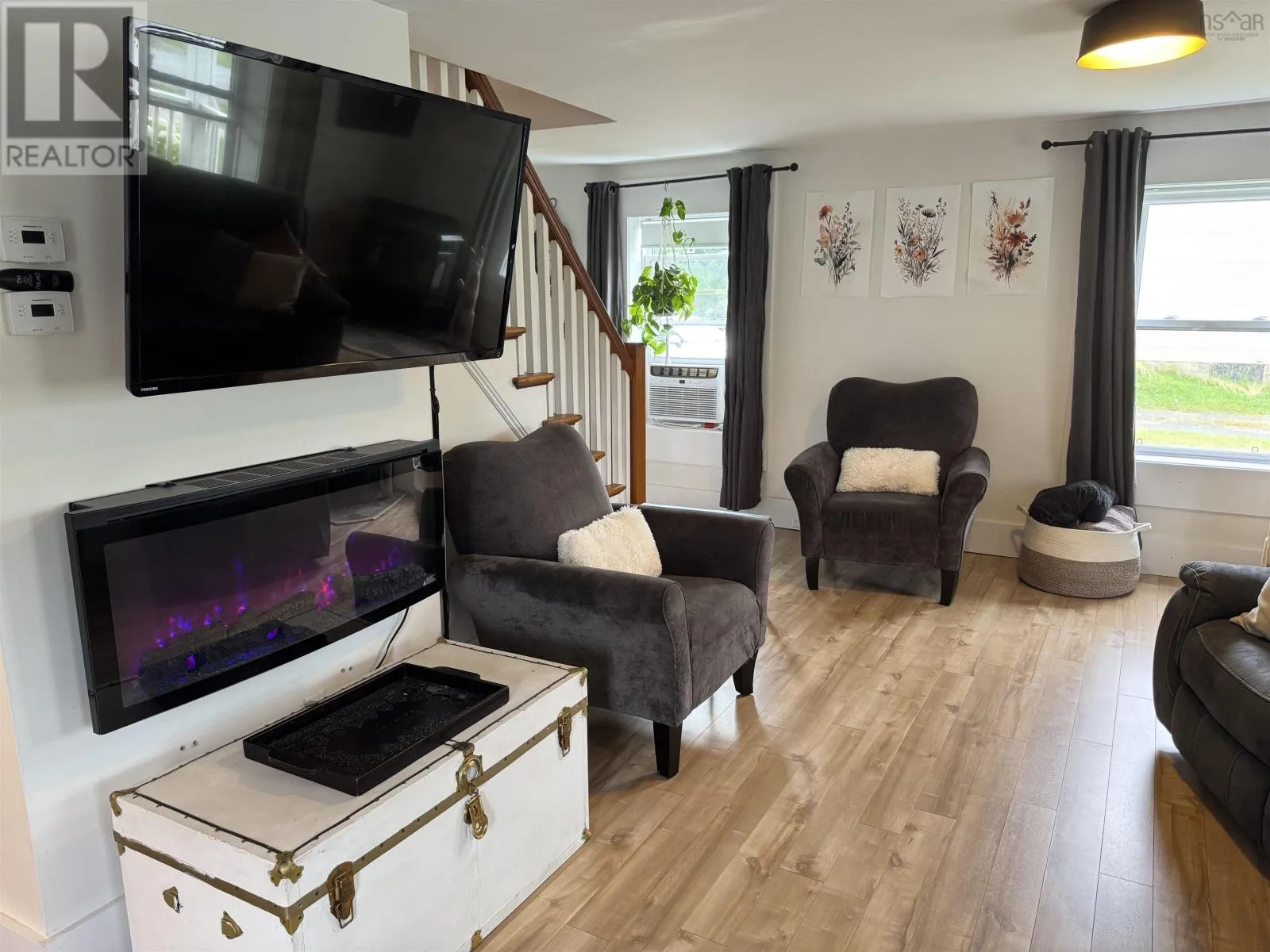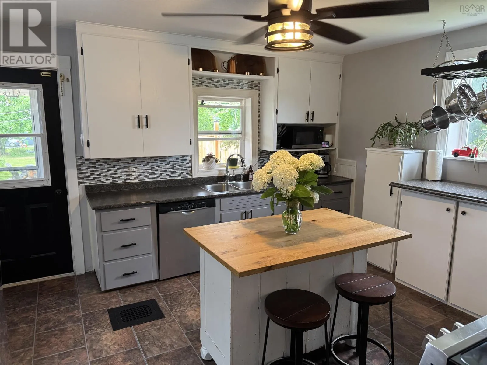 From South Main street turn up Jubilee Ave. Turn left on Stellar Street, property adjacent to the new indoor courts, watch for the sign. Welcome to this charming 4-bedroom, 1.5-bath home nestled on a quiet one-way street in Stellarton, directly across from the ball field and just a short stroll to Main Streets shops, restaurants, and amenities. Step inside to find a beautifully renovated main floor where the living and dining room flow seamlessly together, complete with a cozy pellet stove for those chilly evenings. The kitchen offers plenty of room to cook and gather, and opens onto a two-tiered back deck with a privacy wall perfect for outdoor entertaining or quiet relaxation. Upstairs, you'll find four bedrooms and a full bathroom that has been tastefully updated. With newer windows, insulation, and siding, this home offers both charm and peace of mind. The deep, landscaped backyard is a true retreat with a fire pit, shed, and plenty of room to play or garden. Enjoy your morning coffee on the classic covered front verandah and take in the friendly neighborhood vibe. A wonderful opportunity in a prime location dont miss your chance to make it yours! (id:27476)