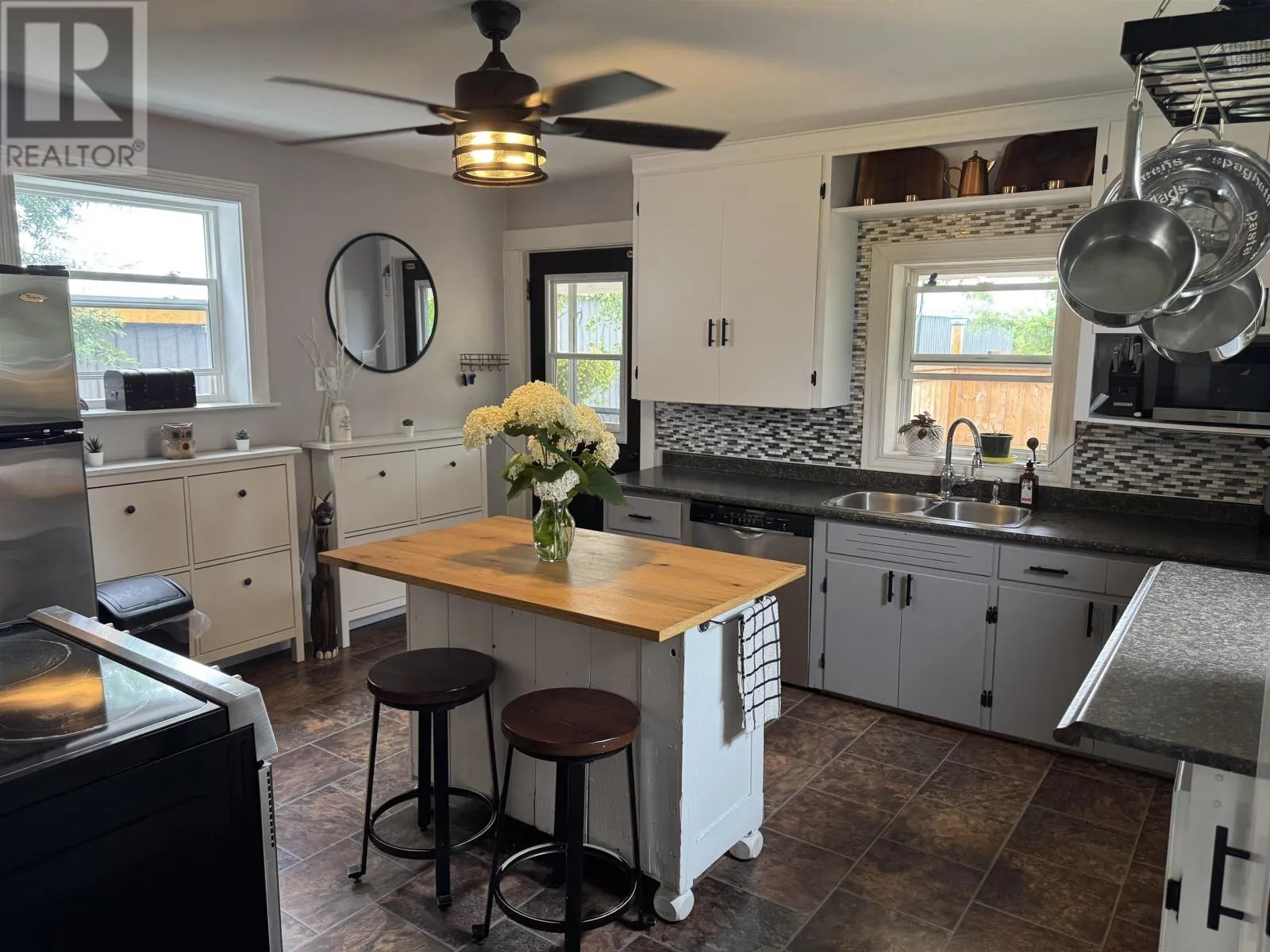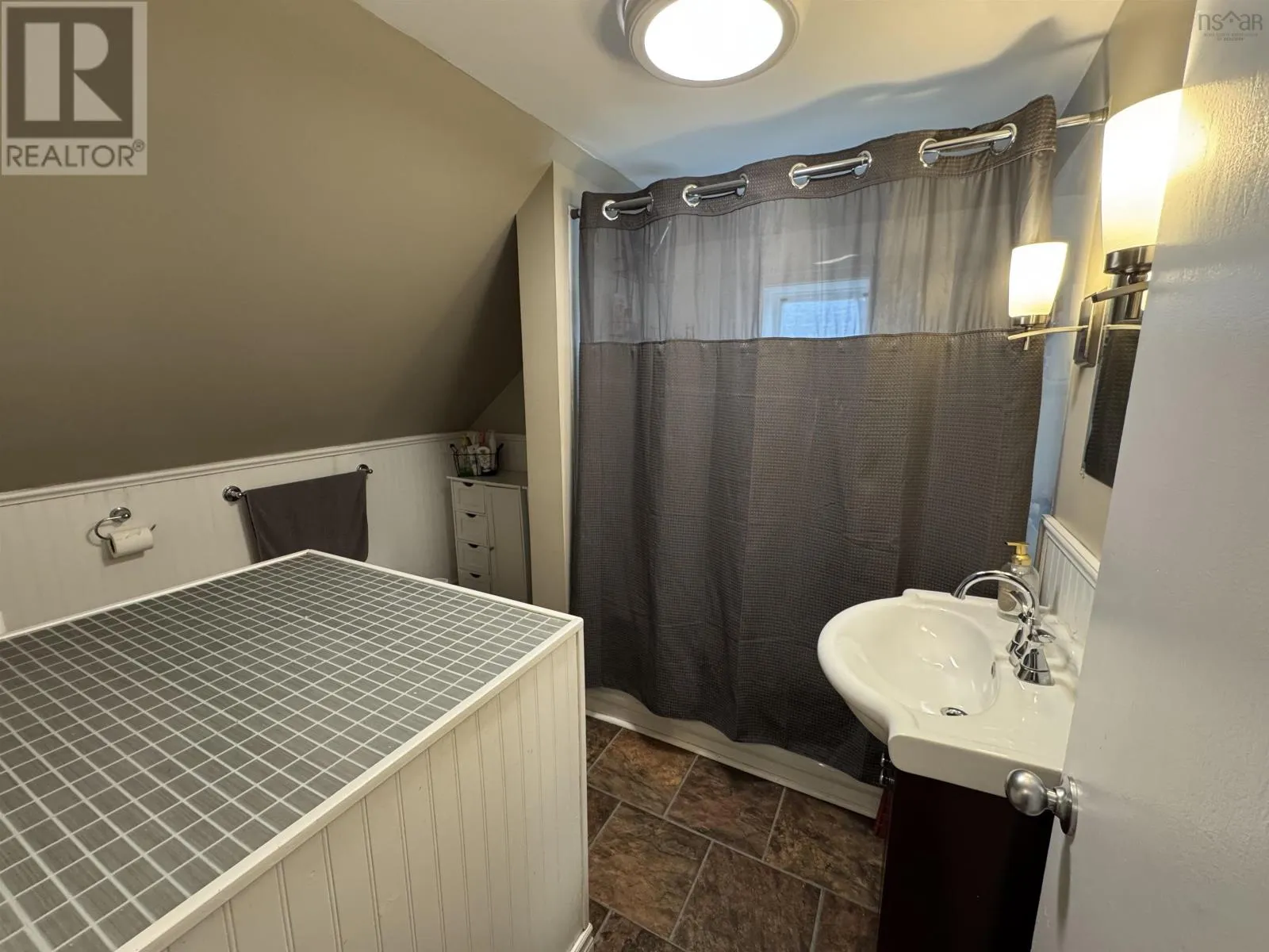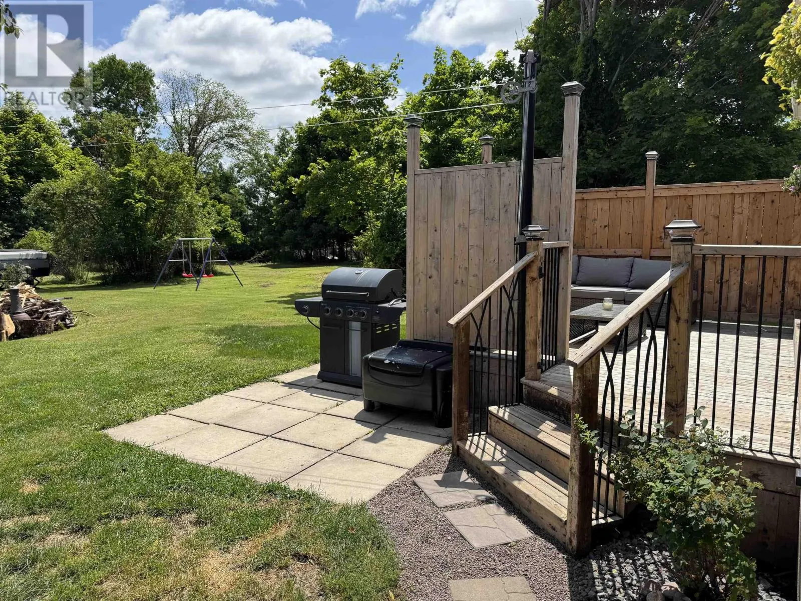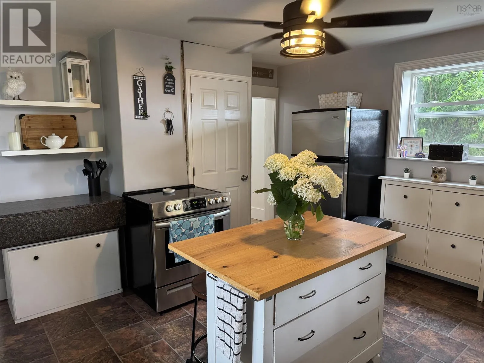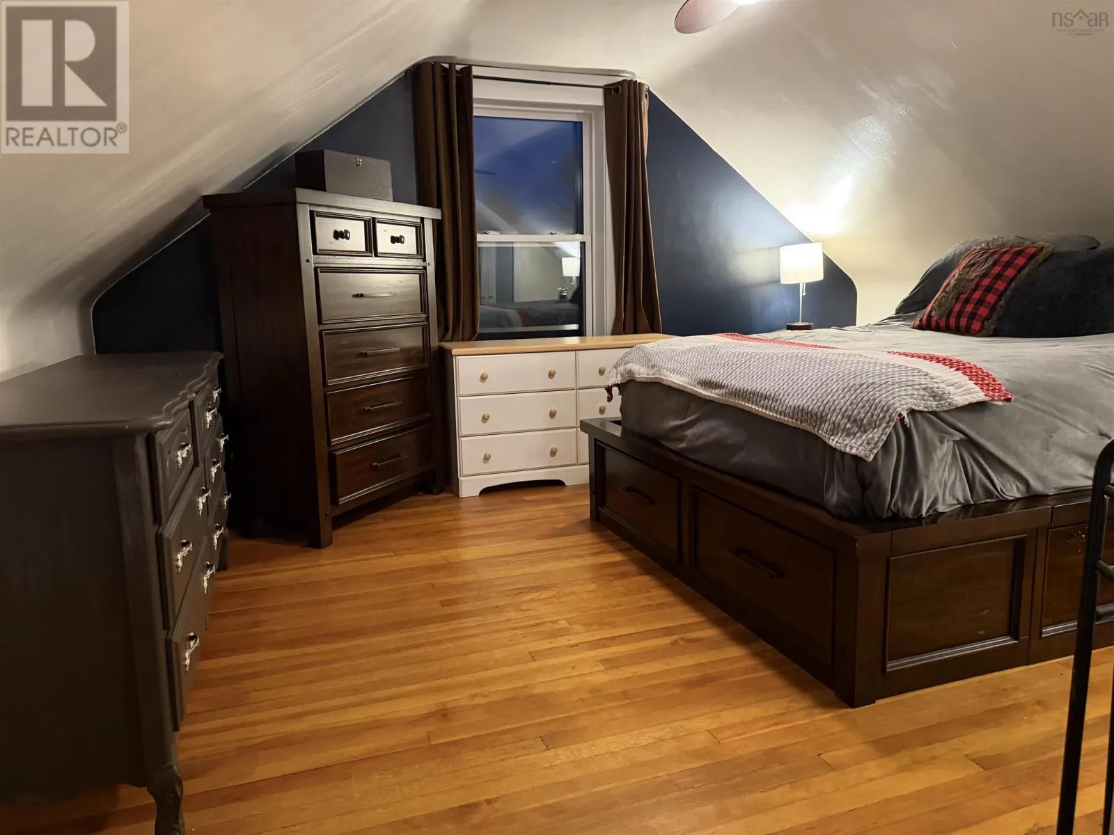 From South Main street turn up Jubilee Ave. Turn left on Stellar Street, property adjacent to the new indoor courts, watch for the sign. Welcome to this charming 4-bedroom, 1.5-bath home nestled on a quiet one-way street in Stellarton, directly across from the ball field and just a short stroll to Main Streets shops, restaurants, and amenities. Step inside to find a beautifully renovated main floor where the living and dining room flow seamlessly together, complete with a cozy pellet stove for those chilly evenings. The kitchen offers plenty of room to cook and gather, and opens onto a two-tiered back deck with a privacy wall perfect for outdoor entertaining or quiet relaxation. Upstairs, you'll find four bedrooms and a full bathroom that has been tastefully updated. With newer windows, insulation, and siding, this home offers both charm and peace of mind. The deep, landscaped backyard is a true retreat with a fire pit, shed, and plenty of room to play or garden. Enjoy your morning coffee on the classic covered front verandah and take in the friendly neighborhood vibe. A wonderful opportunity in a prime location dont miss your chance to make it yours! (id:27476)