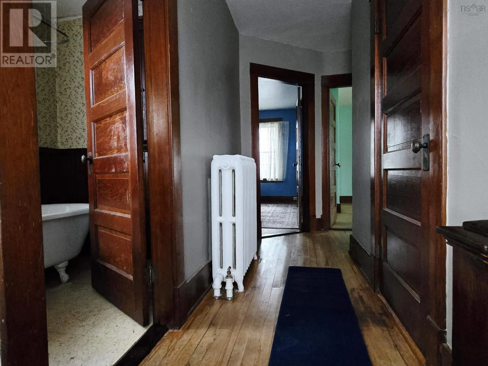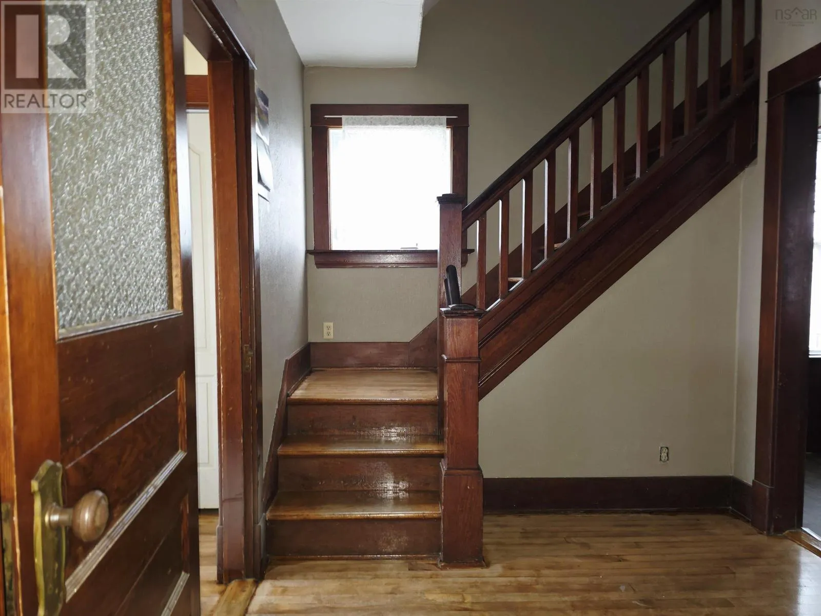 From South Foord turn right onto Claremont. Property is on the left . see sign Welcome to this wonderfully maintained three-bedroom, one-and-a-half bath home located in a family-friendly neighbourhood, just steps from all the conveniences Stellarton has to offer. Bursting with character, this home showcases beautiful original wood trim, gleaming hardwood floors, and a warm, inviting atmosphere throughout. The main level features a traditional layout with spacious living and family rooms, a bright kitchen, and a welcoming dining roomperfect for everyday living and entertaining. Upstairs, youll find two generously sized bedrooms, a full 4-piece bath, and the charming primary bedroom complete with its own balcony overlooking the backyarda cozy retreat to enjoy your morning coffee. The front of the home offers a classic covered porch, ideal for relaxing and watching the neighbourhood go by. Outside, a small garage provides great storage potential and awaits your personal touch. Located within walking distance to NSCC, the grocery store, parks, and more, this property delivers comfort, convenience, and character all in one. A wonderful opportunity for first-time buyers, families, or anyone looking for charm and walkability in Stellartondont miss it! (id:27476)