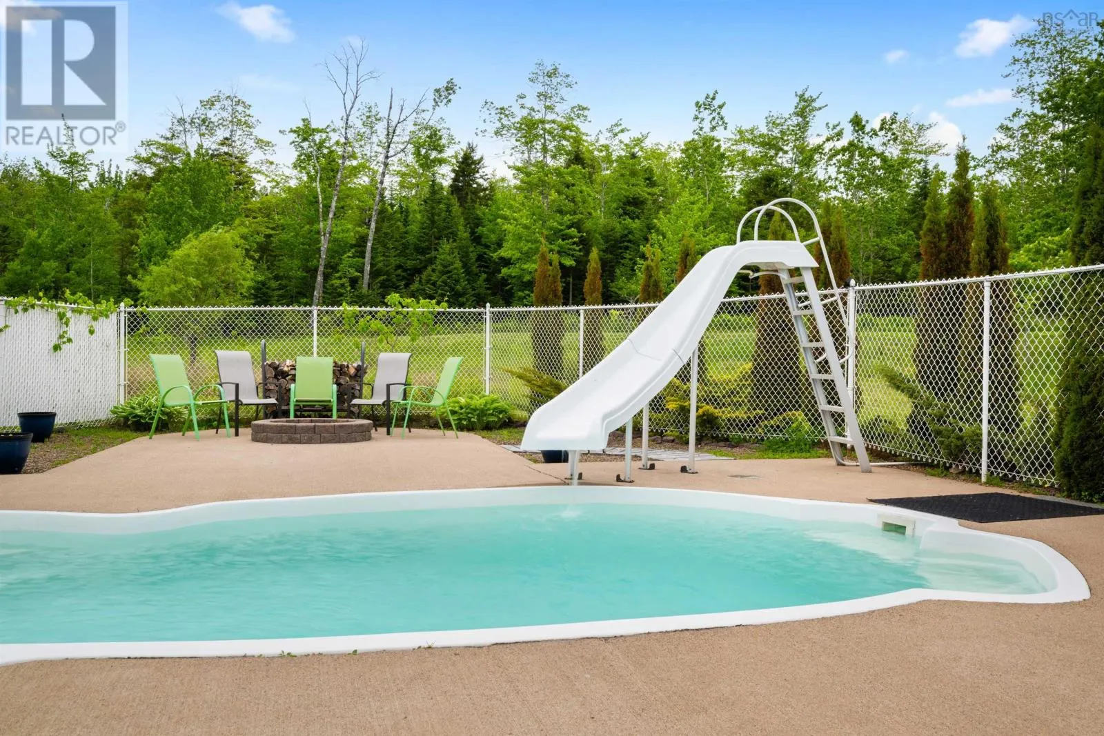 HWY 102 to Stewiacke, right on Main St. Right on St Andrews St - home on right Incredible value with this 1.5 story home on 1.5 acres in the thriving community of Stewiacke! This uniquely laid out home is ideal for the busy family with plenty of space on one floor with the added convenience of single level living. The custom kitchen features quartz countertops, marble tiles, stainless appliances and plenty of storage. Kitchen is open to the family room with pellet stove for those cold winter nights. A second living space can be found just down the hall with bar area, dining and 2 pc bath - this is a great entertainment space. Primary bedroom has his/her walk in closets and soaker tub in separate room which is conveniently attached to the main floor bath. Two more additional bedrooms round out this main level. Exit the back door to the oasis that is your back yard! Fresh (or salt) water in ground pool with water slide! The area has poured concrete for easy maintenance, bar area, gazebo and is fully fenced and private. Need more space? There is a bonus room upstairs which is partially finished ideal for office or guest space. Still need more space? The 24x24 detached garaged is fully finished with heat pump! All of this situated on a large country lot with park-like setting, paved driveway,14x16 shed, covered porch and minutes the amenities of Stewiacke!. Walking distance to Winding River Elementary and 40 minutes to Dartmouth! (id:27476)