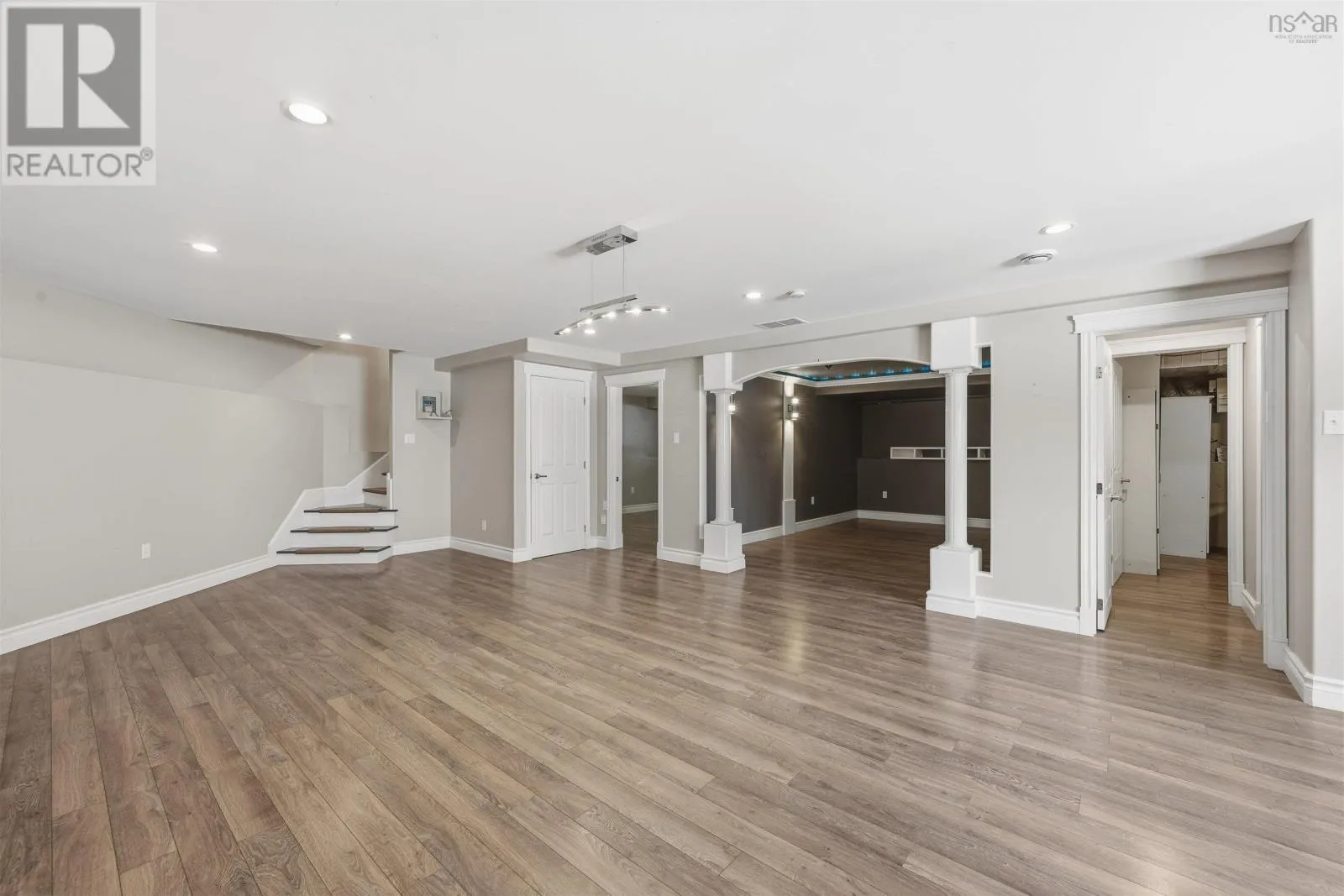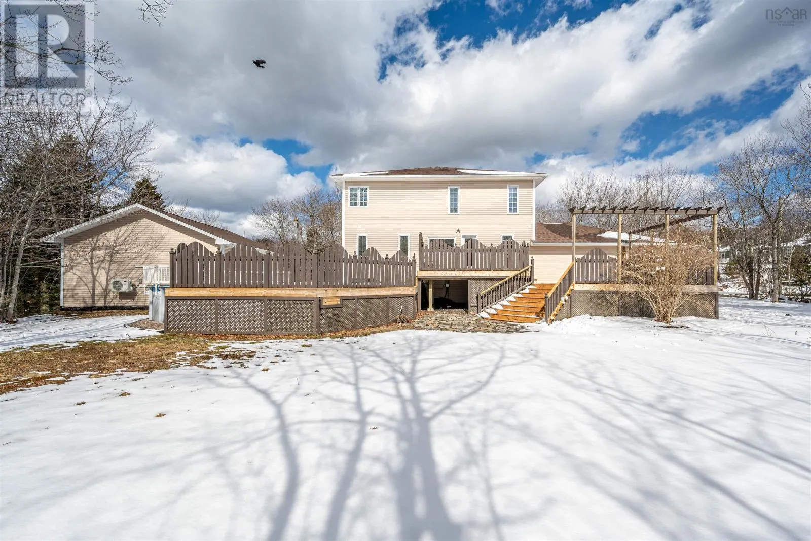 Hammonds Plains to Flat Lake to Windsor to Buckingham to Abbey to Haliburton 9 Haliburton Crescent is a 3+1 bedroom, 3.5 bath family home in a highly desirable neighbourhood offering privacy and tranquil outdoor living. The light and bright eat-in kitchen has ample cabinetry and work spaces, and opens into a spacious living room with a propane fireplace. A separate dining room and powder room complete the main level. Two bedrooms on the upper level are serviced by a full bath. The primary suite includes a large walk-in closet and spa-like ensuite bath. The lower level features a sunny games room with bar and movie nook, plus a guest/teen bedroom and full bath. This home is ideal for executives, families, and multi-generational living. Additional features include a built-in double garage and a detached double garage that is wired and has a heat-pump. Expansive decking and mature gardens offer tremendous potential. Viewings by appointment. Don't hesitate to book a private showing. (id:27476)