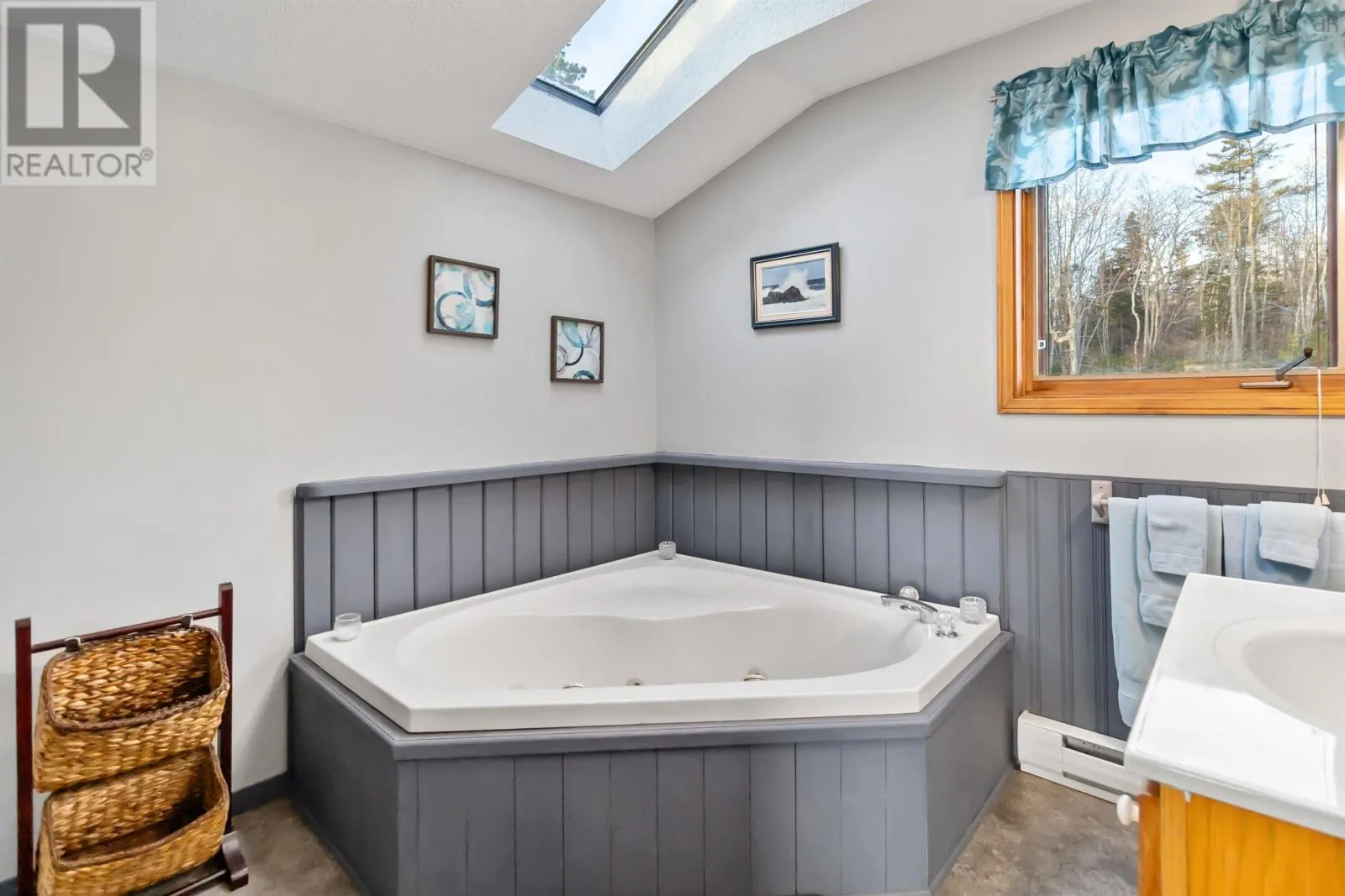 103 Highway left at exit 21, left at stop sign to Summerville, Signs on left just past Quarterdeck Live life like every day's a vacation! This recently updated, post and beam chalet is steps away from Summerville Beach. Sit on the front deck, listen to the waves crash and relax with the smell of fresh salt air! The main level of this four season home offers a large primary bedroom and spacious full bathroom with a corner jet tub below a skylight to enjoy a view of the stars. The kitchen, dining and living room are all open concept with large windows and a cozy wood stove. On the lower level there is a second bedroom, large rec room with walk-out and a half bathroom. The lower level also contains a separated utility room and storage area. Updates have been done throughout with new flooring, paint and kitchen back splash. The chalet comes fully furnished and equipped with everything you need, unpack your clothes and enjoy seaside living! (id:27476)