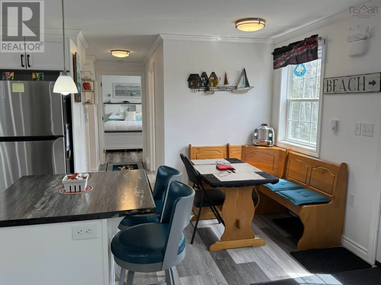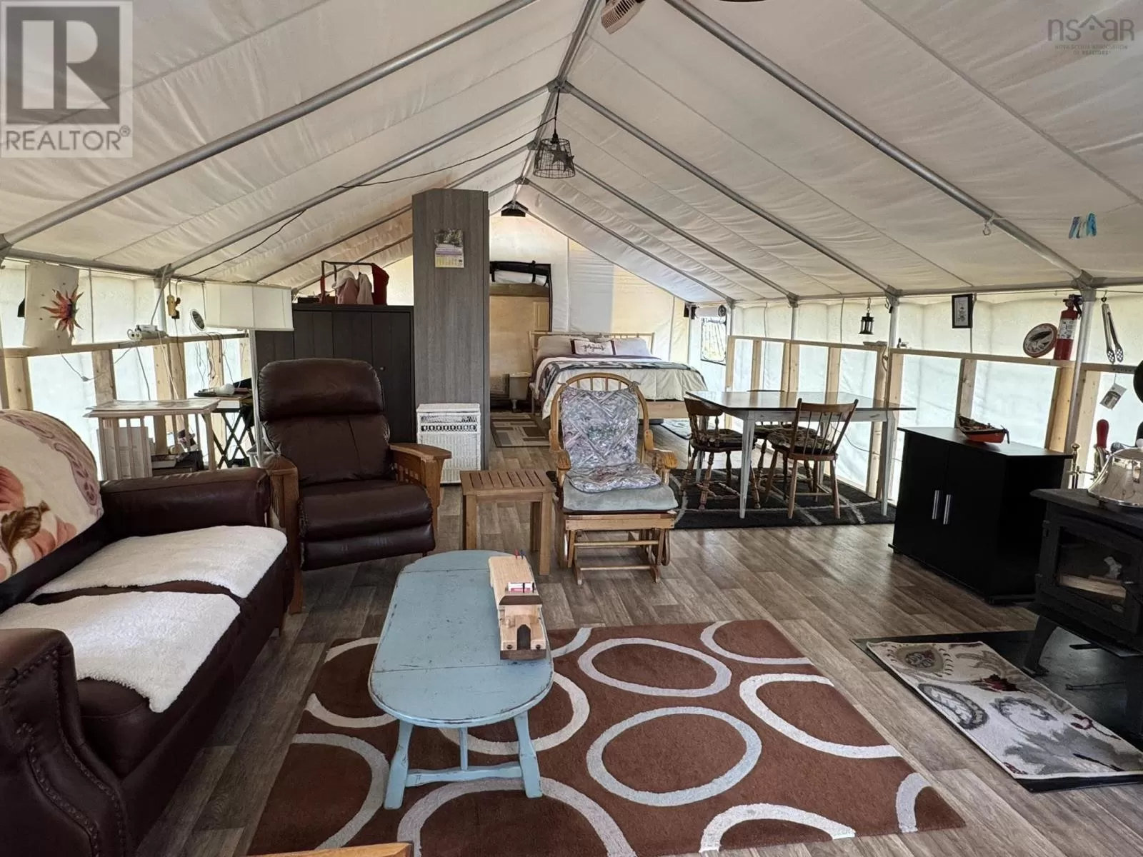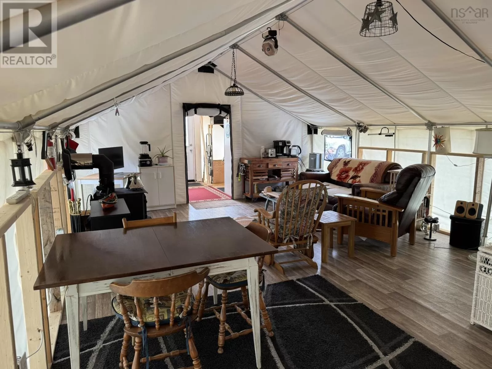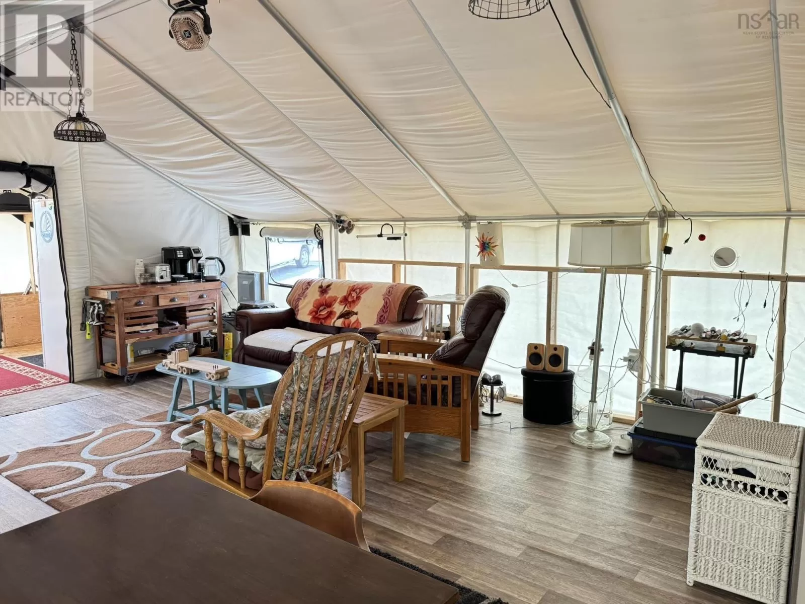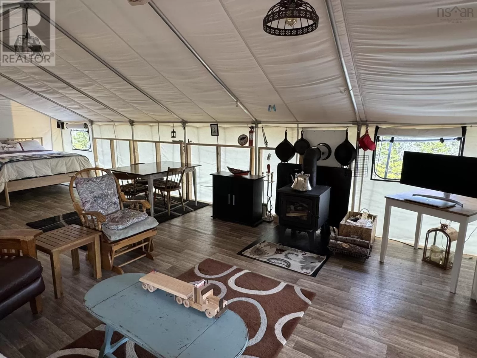 Hwy 3 to Summerville Centre. Civic # 7714. Be sure to watch the drone video for this nearly brand new (2023) immaculate mini-home nestled on 1.4 acres of land within walking distance to the white sands of Summerville Beach. Inside the 60 x 16 home is a pristine and tasteful space with two good sized bedrooms at opposite ends for privacy. Need a space for guests? You can't beat the 40 x 16 Deluxe Wall Tent with insulated walls & floor, fully wired, with bathroom and wood stove with Selkirk chimney, all secured with hurricane straps. The design is impeccable! These renowned tents withstand harsh environments including the Arctic. Another gem on this property is the 40 foot Sea Can, wired with a 100 amp panel, with a separate power meter and includes 30 amp outlets. Your shop is waiting for you! Two storage sheds - 10 x 10 and 12 x 16 are icing on the cake. In the main home you will find crown mouldings throughout, the home's fixtures, hardware and décor are all delightful...this looks and feels like a beach house! Feeding the family or entertaining guests could not be easier with the perfect eat-at island for two and the cozy corner table and bench in the dinette. Bathroom is bright, with a full tub-shower enclosure. Back entry combines with a mudroom / laundry and utility space. Baseboard electric heat is supplemented by a heat pump, which also provides cooling during summer. The features list on file is extensive, and reflective of the high level of detail put into every aspect of this less than two-year-old build in the heart of the South Shore. Whether a move-in ready primary residence, or a vacation destination, this property will impress and exceed expectations. Includes all contents and balance of warranty. (id:27476)