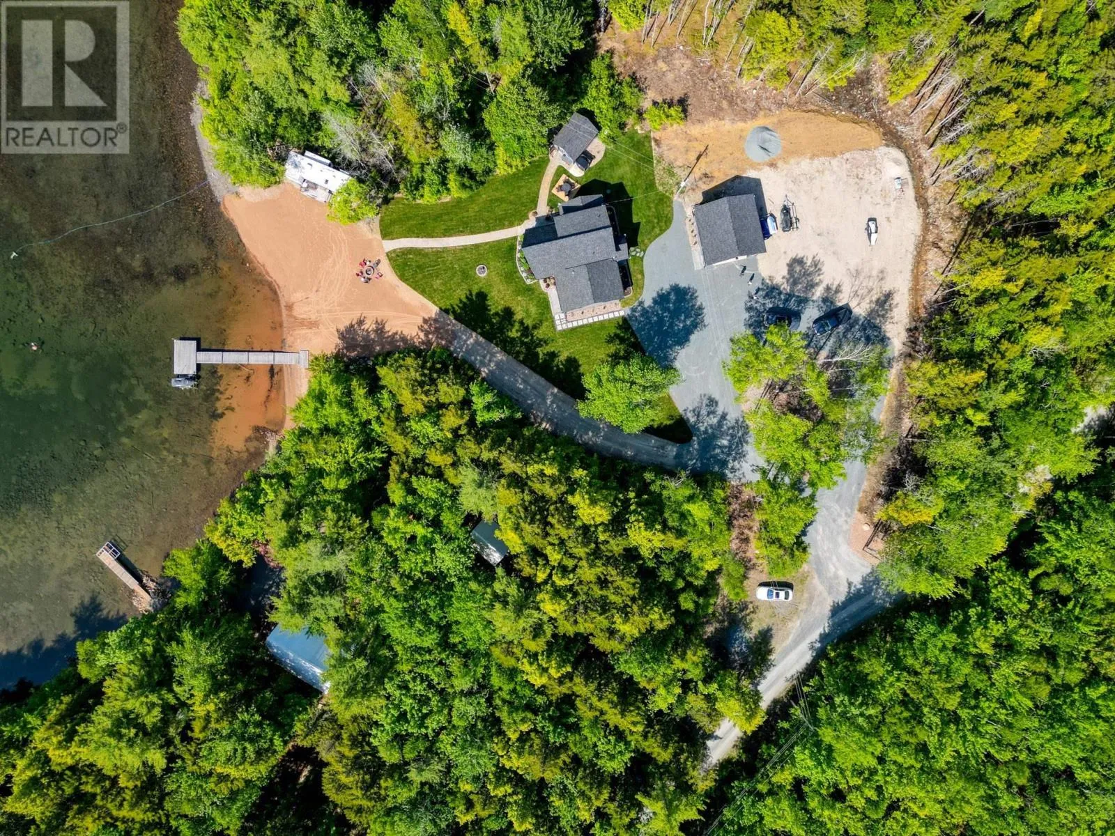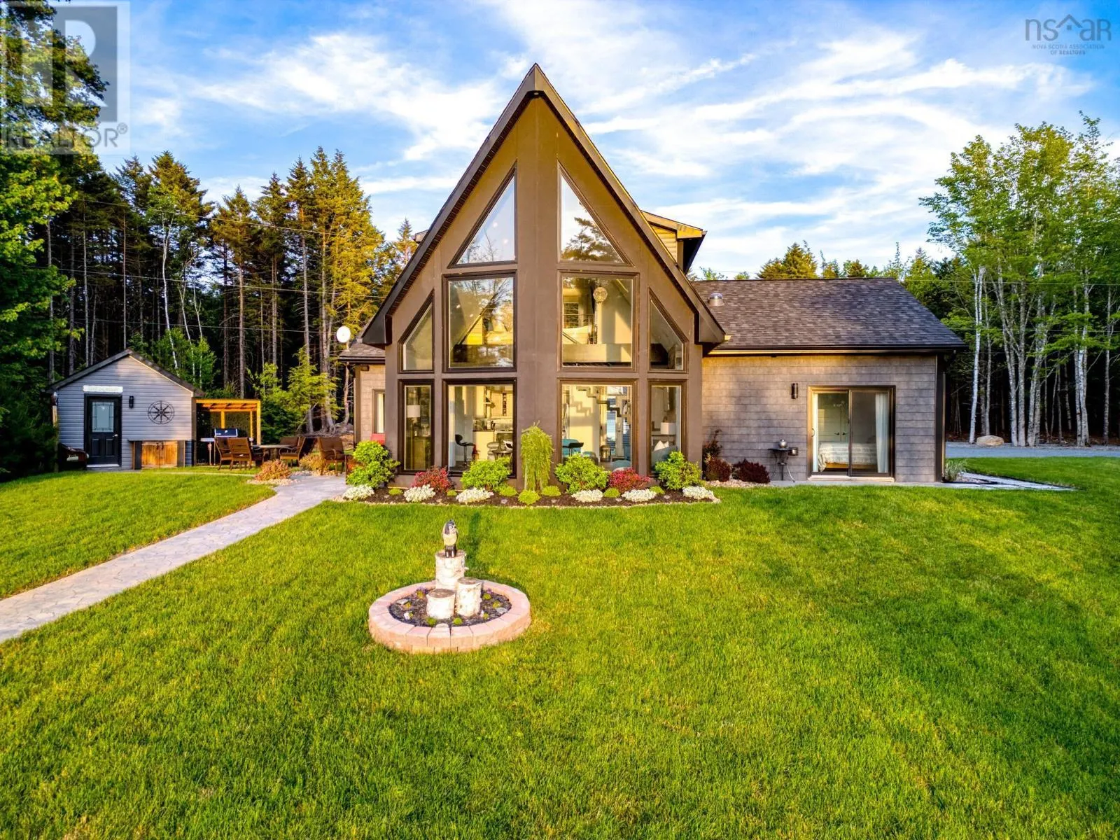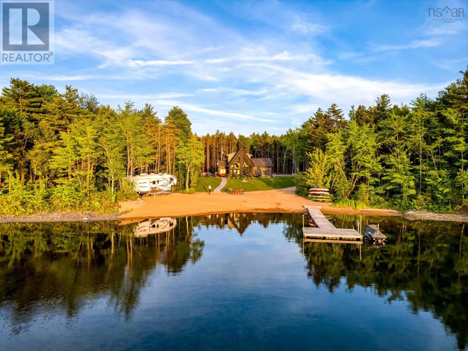 Please Take Hwy 103 to Exit 11 ...turn left onto Hwy 324 towards Blockhouse and then left onto Hwy 325 North towards Bridgewater for approximately 4.5 km and turn right onto Northfield Road. Take Northfield Road North and turn left onto Sweetland Road. Follow Sweetland Road and then turn left onto Joudrey Lane Sign Posted. *** Please note the alternative route form Cornwall Road via Sweetland Road is mainly gravel so please take the route above.*** When one thinks about the most perfect lakefront home you really hope you can find a gentle sloping sand beach and protected cove and west facing views to enjoy those magical sunset views. This property provides you all of the above and much more. A custom designed three bedroom home with a breathtaking cathedral ceiling in the living room with large windows that frames perhaps one of the best lakefront views anywhere. A large kitchen with separate pantry and dining space allows one to entertain family and friends with that view ever present. A laundry room and full three piece bathroom and two additional bedrooms one with walkout complete the main floor living space. As one traverses the custom designed floating metal staircase you arrive at the Spa like Primary Bedroom Suite complete with soaker tub and separate ensuite bath with tiled shower and large walk in closet. A large detached wired garage provides ample storage for a boat or trailer and the lakehouse off the patio makes a great space for the outside barbeques. This really is a fantastic opportunity to own a turn key home on Big Mushamush Lake facing west into the sun for the perfect days and nights at the lake. (id:27476)