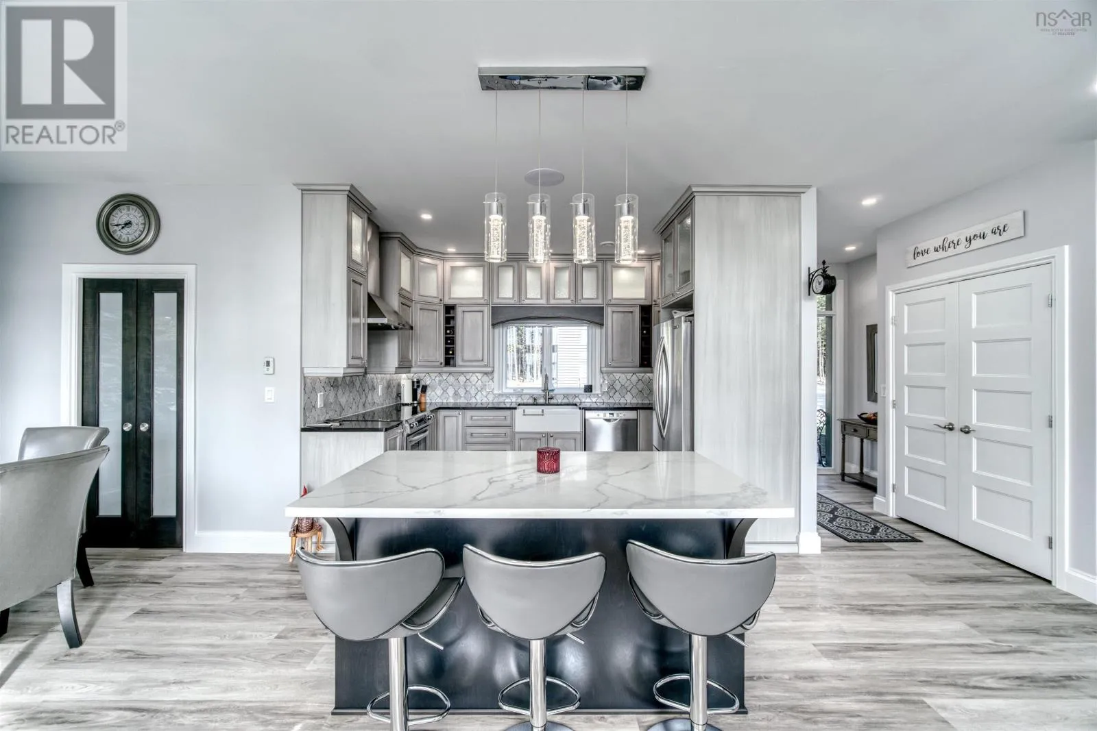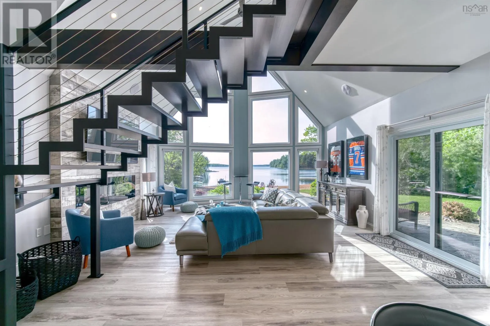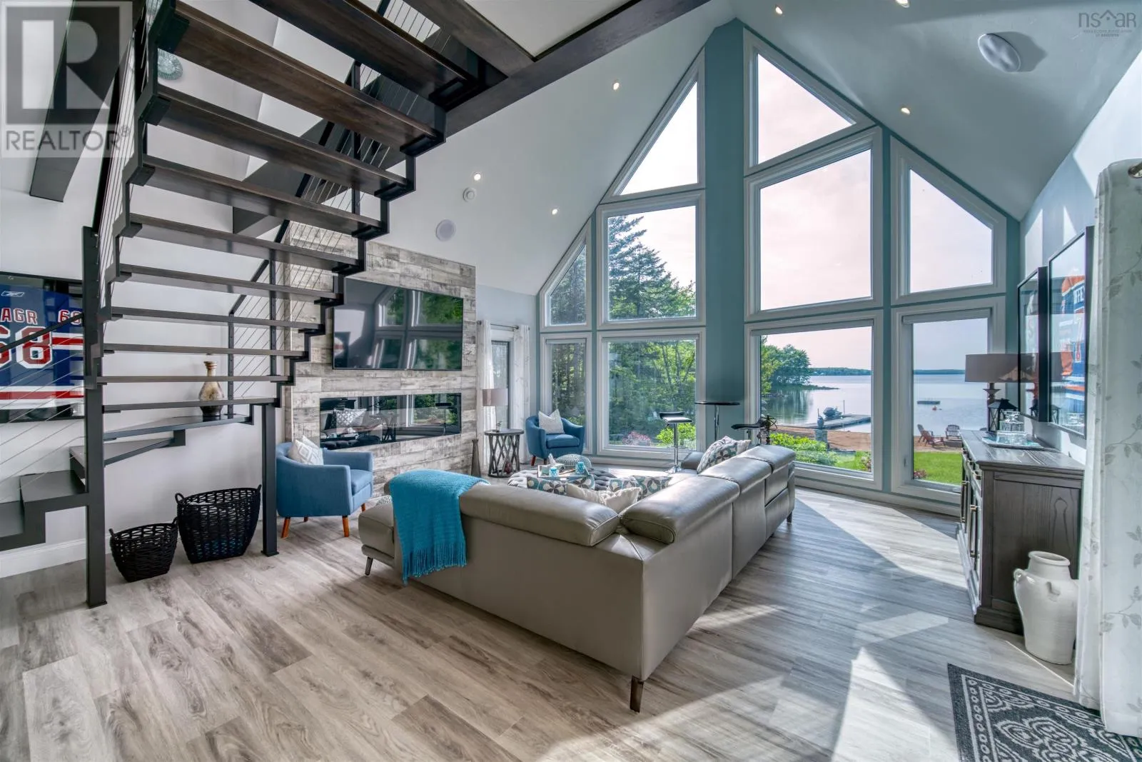 Please Take Hwy 103 to Exit 11 ...turn left onto Hwy 324 towards Blockhouse and then left onto Hwy 325 North towards Bridgewater for approximately 4.5 km and turn right onto Northfield Road. Take Northfield Road North and turn left onto Sweetland Road. Follow Sweetland Road and then turn left onto Joudrey Lane Sign Posted. *** Please note the alternative route form Cornwall Road via Sweetland Road is mainly gravel so please take the route above.*** When one thinks about the most perfect lakefront home you really hope you can find a gentle sloping sand beach and protected cove and west facing views to enjoy those magical sunset views. This property provides you all of the above and much more. A custom designed three bedroom home with a breathtaking cathedral ceiling in the living room with large windows that frames perhaps one of the best lakefront views anywhere. A large kitchen with separate pantry and dining space allows one to entertain family and friends with that view ever present. A laundry room and full three piece bathroom and two additional bedrooms one with walkout complete the main floor living space. As one traverses the custom designed floating metal staircase you arrive at the Spa like Primary Bedroom Suite complete with soaker tub and separate ensuite bath with tiled shower and large walk in closet. A large detached wired garage provides ample storage for a boat or trailer and the lakehouse off the patio makes a great space for the outside barbeques. This really is a fantastic opportunity to own a turn key home on Big Mushamush Lake facing west into the sun for the perfect days and nights at the lake. (id:27476)