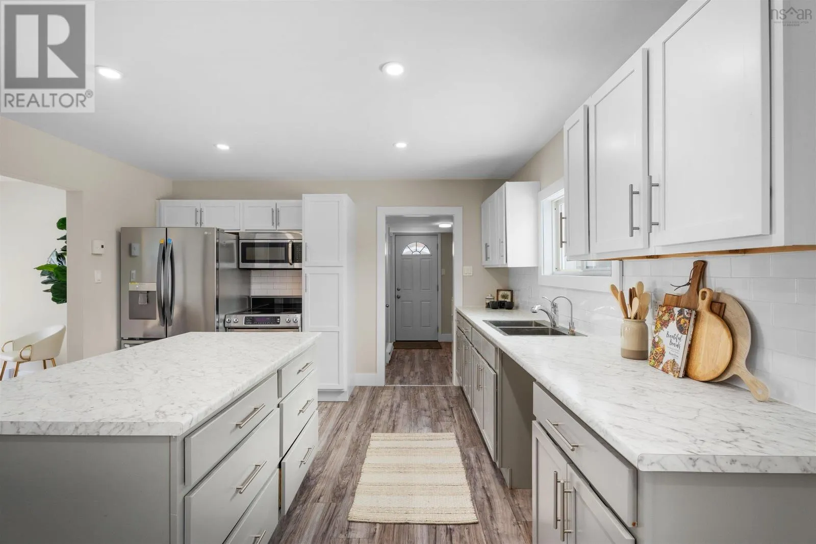 Hwy 101 to Wentworth rd Perfect for Multi-Generational Living or Income Potential! Step into effortless single-level living on the main floor, featuring three bedrooms with a spacious primary, an inviting office/den, and a bright, modern kitchen refreshed with brand-new countertops. Recent upgrades (Nov/Dec2025) include fresh paint throughout, a stylish tub surround, and a sleek bathroom vanity, while most vinyl windows were replaced just this January for added energy efficiency and curb appeal. Downstairs, a fully finished lower level offers a private entrance, a complete kitchen, bathroom, and laundry hookupideal for a secondary suite, guest quarters, or rental income. Entertain year-round on the expansive wrap-around deck and pergola, perfect for three-season enjoyment. A double-wide driveway provides ample parking for friends and family, and the generous lot is framed by mature trees at the rear. Conveniently situated between Windsor and Brooklyn, youll enjoy easy access to top-rated schools, local amenities, and Highway 101. This is a great opportunity to own a versatile home with loads of living potential! (id:27476)