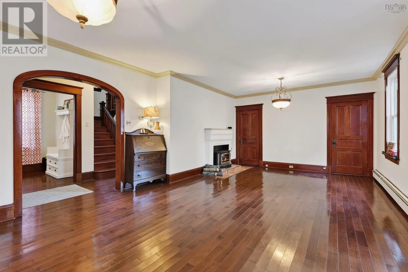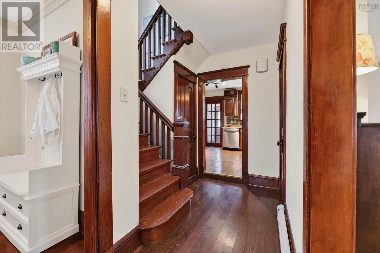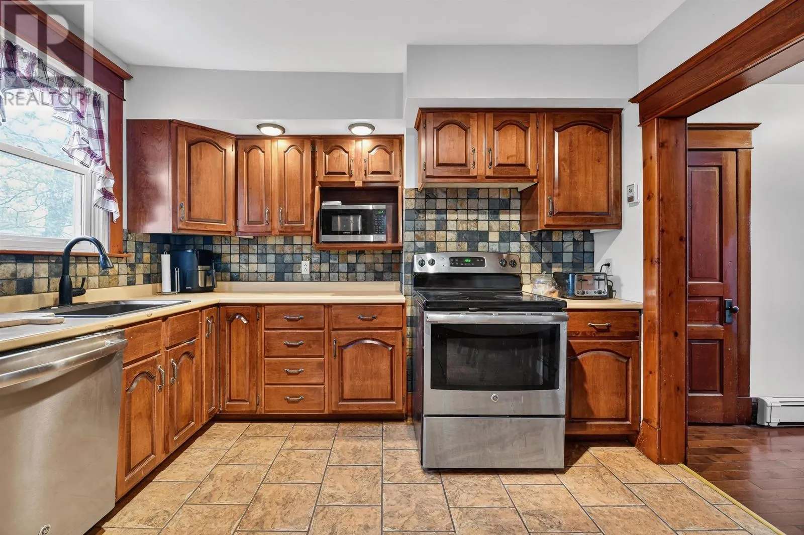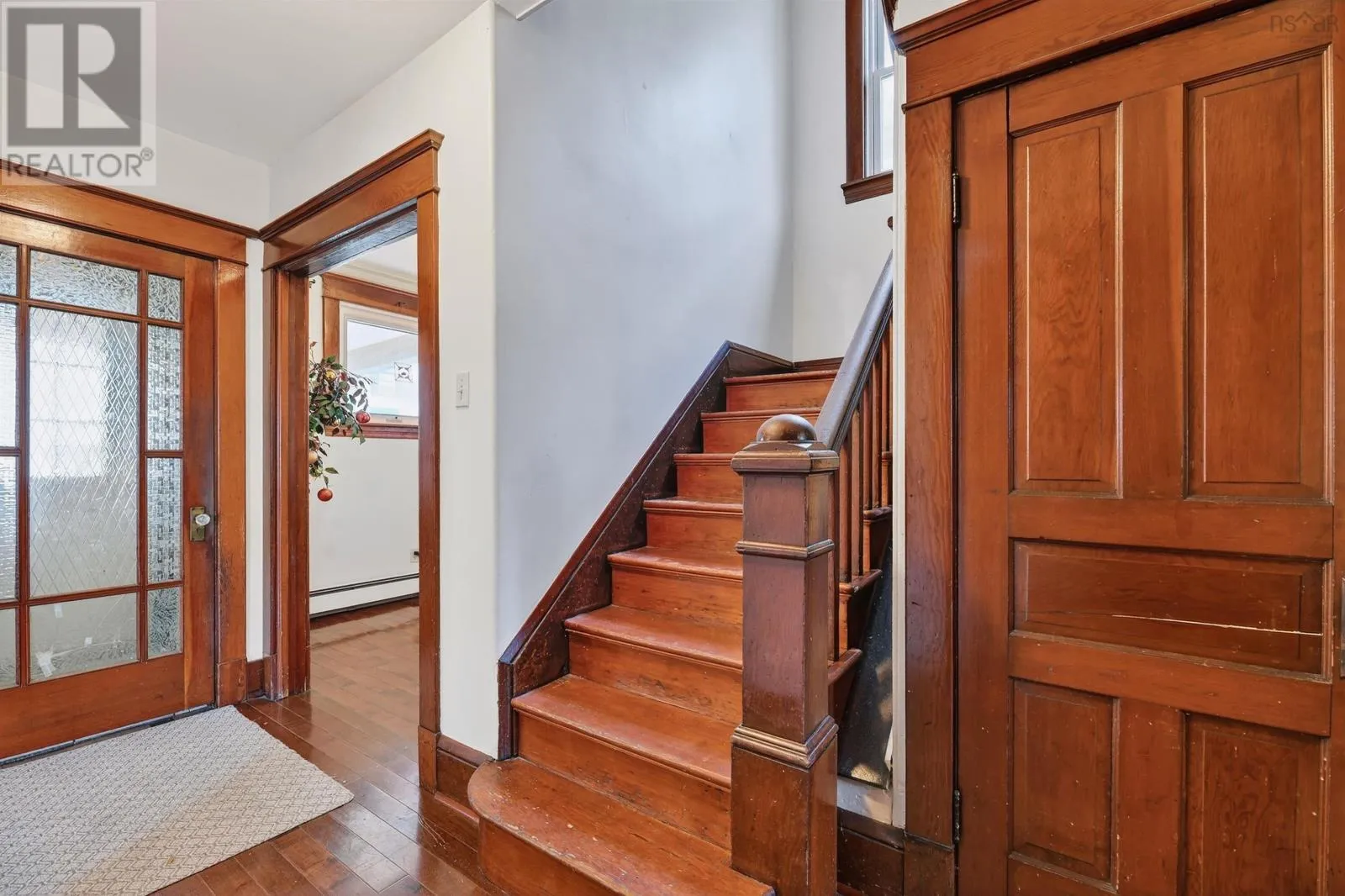 Turn off of George Street to Lorway. Home on the right side. Welcome to 42 Lorway Avenue, Sydney! This character-filled home is ideally located within walking distance to downtown Sydney and beautiful Wentworth Park. Showcasing timeless craftsmanship, the home features rich wooden trim throughout, complemented by hardwood and tile floors that bring warmth and charm to every room. The main level offers a comfortable living room with a cozy wood stove, a flexible office or den space, and a newly renovated half bath. The efficient kitchen opens to a back porch leading to a large fenced backyard perfect for outdoor living, pets, and play complete with a storage shed and leading to your paved parking. Upstairs, youll find four inviting bedrooms and a full bath, offering plenty of space for family or guests. The basement provides laundry facilities and useful workshop and utility areas, with potential for further finishing if desired. A classic home in a sought-after location, full of character and convenience. (id:27476)