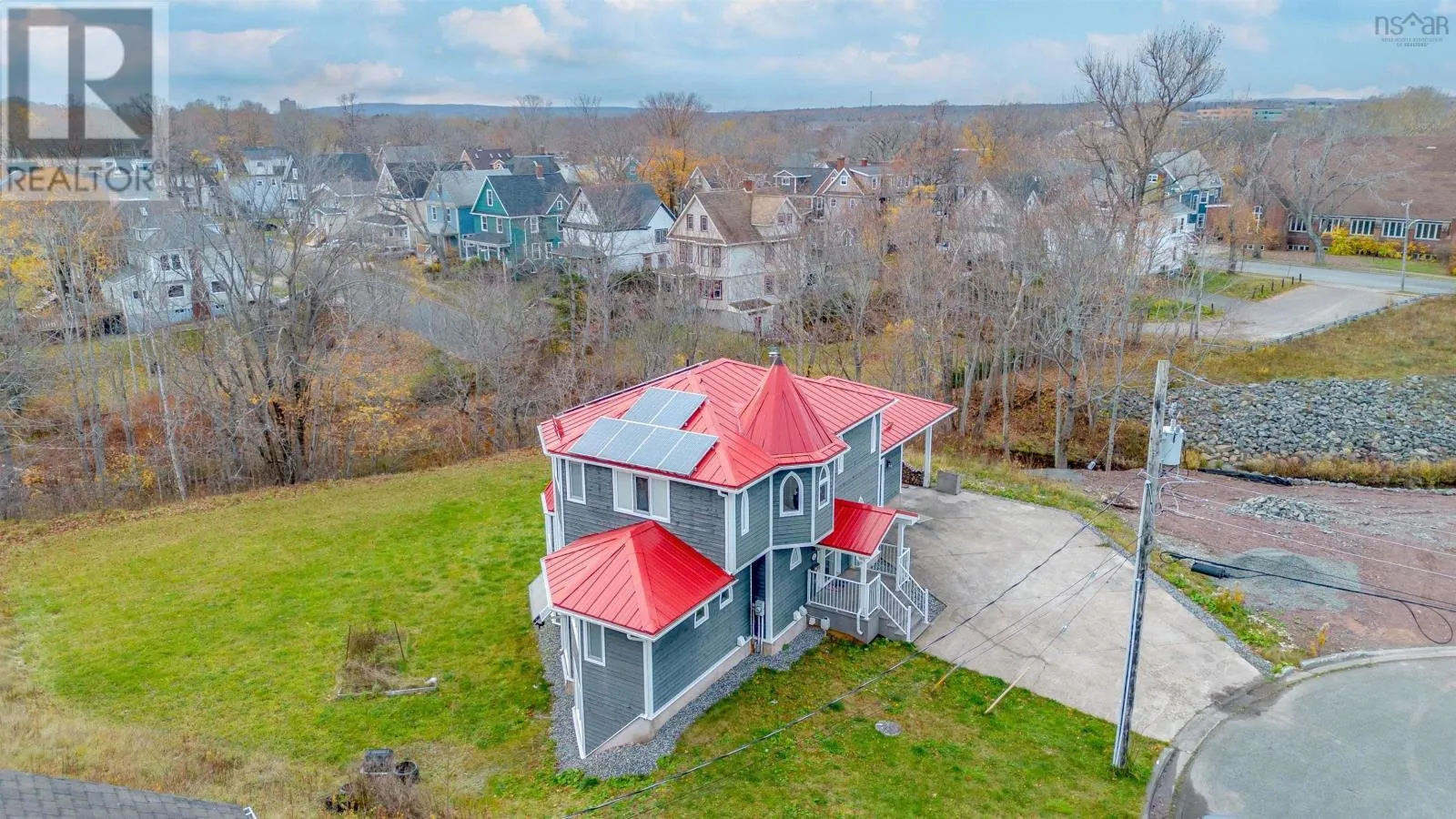 From St. Peter's Road to Hospital Street to Howe Court. A unique opportunity to own the the first solar home in Sydney proper. The house is passive solar, oriented so that the long bank of windows faces exactly to solar south, it has high-efficiency, Polytech windows throughout, as well as Solera translucent by Advanced Glazings of Sydney. These features, combined with high-efficiency spray-foam insulation, means that the house heats itself with sunlight in shoulder seasons and on many sunny winter days. The house also has a 3.2 Kw roof-mounted solar electric system. At peak season this can produce 30 KW-hrs of energy per day, enough to run the house and more. The system is net-metered, where overproduction in peak season is stored with NS Power. Through much of the year all the hot water is produced by the sun. The heating system is a Nordic ground-source water-to-air whole-home heat pump, with a cozy woodstove in the dining/living area. Some other notable features include over one half an acre lot, metal roof with super strong gutter system, whirlpool tub in ensuite, large pantry off the kitchen, large walk-in closet with built in shelves. Centrally located minutes to CB Regional Hospital, downtown Sydney, running track and one kilometer to Kiwanis pool. Don't miss out on this amazing opportunity to own this unique home in a great neighborhood. (id:27476)