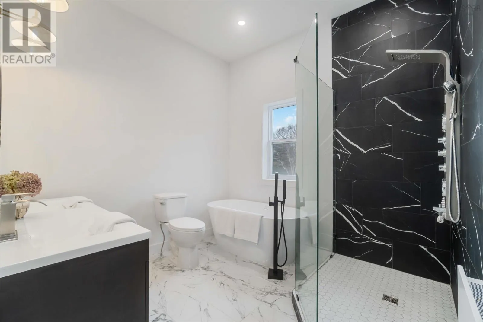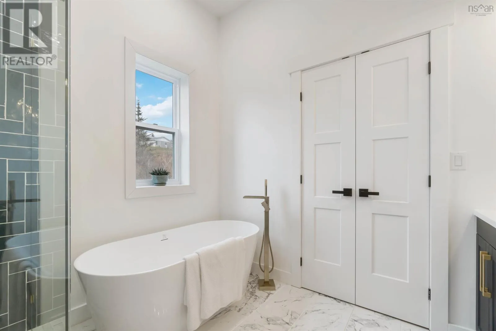 Prospect Road to Terence Bay Road to Civic Ocean views, New Build, Energy efficient, Exceptional quality, AND Permitted for 2 units! New build. Ocean view. Energy efficient. Permitted for 2 units. Flooded with natural light from multi-pane windows, this stunning Terence Bay home captures sweeping Atlantic Ocean views from both expansive decks and the bedrooms. The main living space is on the top floor for the best views, of course where ¾" maple hardwood floors flow through an airy, open layout designed for comfort and connection. The kitchen features sleek white cabinetry, quartz countertops, stainless steel appliances, and a walk-in pantry roughed in for optional main floor laundry. Step out to the 36' x 10' deck with a wood pergola the perfect spot to relax or entertain while enjoying the ocean breeze. The serene primary bedroom offers a spa-inspired 5-piece ensuite with a soaker tub, custom tiled shower, double vanity, and walk-in closet. A second bedroom on this level also enjoys ocean views and access to a luxurious 5-piece cheater bath. The bright, fully above-ground lower level offers incredible flexibility with large windows throughout, a cozy den/office, two bedrooms (one with cheater ensuite to the third 5-piece bath), a powder room, and a spacious recreation room discreetly roughed in for a second kitchen. Perfect for guests, extended family, or easy conversion to a rental suite. Built to exceed standards, this home delivers outstanding efficiency: two 24,000 BTU heat pumps, wall heaters in every room, and extra insulation including 24" of blown-in insulation in the attic to keep comfort high and utilities low. Outdoor enthusiasts will love the location: kayak rentals nearby, two golf courses within 15 minutes, and easy access to Prospect Road shops and services. Just 20 minutes from Bayers Lake or Peggys Cove, this home blends coastal beauty, thoughtful design, and modern efficiency the best of East Coast living. (id:27476)