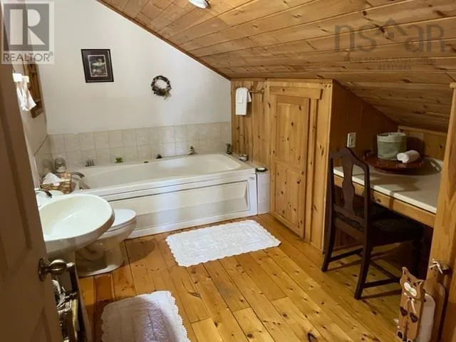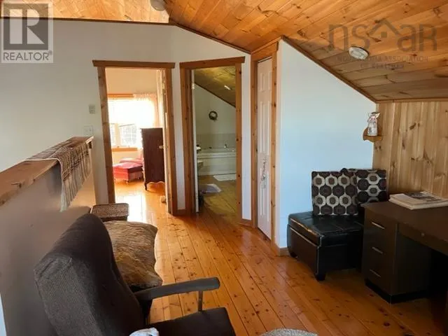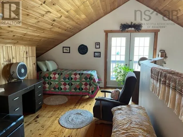 From St. Peter's to Pepperell St., turns into West Bay Hwy., approx. 20 KM, watch for civic #. Looking for an incredible Bras d'Or Lake beach? As you wind along the driveway to the shore, out of view by a nice mixed forest, you drive through the gate to an open area. An incredible beachfront find on the Bras d'Or Lake. 4 acres +- to enjoy. Tastefully landscaped and the home nestled in the trees. Main floor open concept living room/kitchen/dining, large enough for a Ceilidh. Cathedral ceiling in the living room section. Loads of cabinets and room for the family. A gorgeous den to sit and read and a recent attached sun room, great for all seasons and a 3 piece bath. The upper floor contains the master bedroom, a huge 3 piece bath with lots of built-ins, along with a large sitting area which opens to a second floor deck with incredible views. The basement of the home has two guest bedrooms along with additional 3 piece bath and laundry with the best of finishes. The home has a large front deck that can seat the whole family. The grounds has a 2 storey garage for his projects and the upper floor contains a studio apartment that just needs some finishing touches. Large separate shed for all your garden supplies and tools. (id:27476)