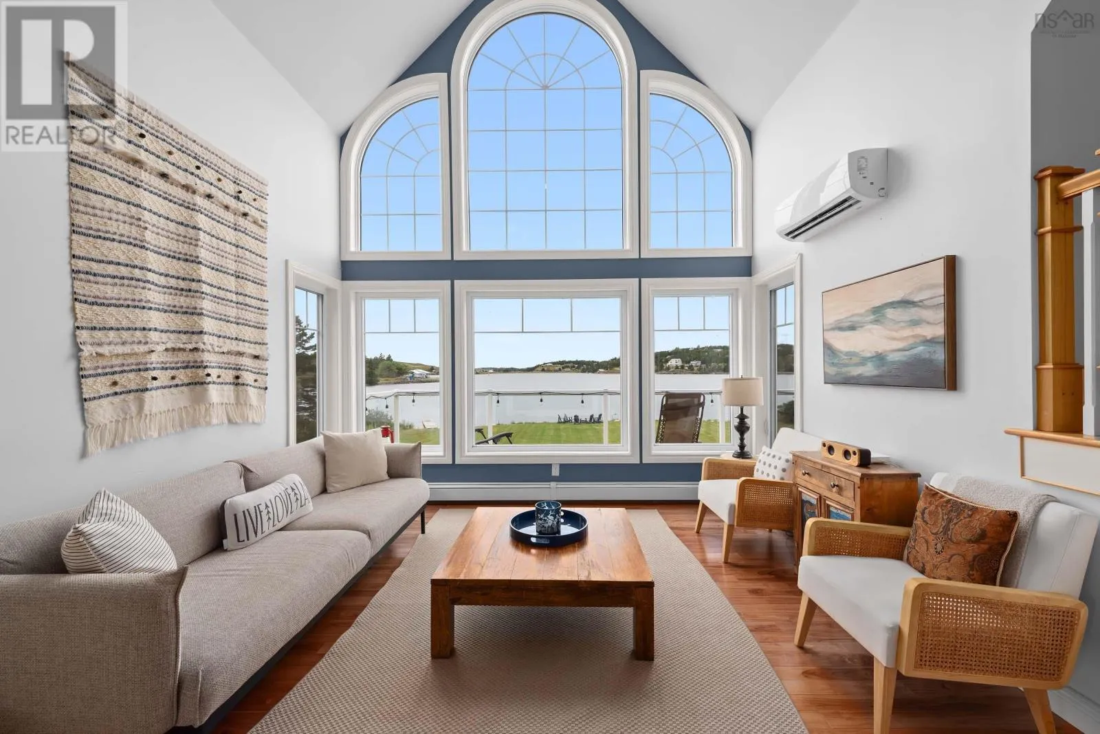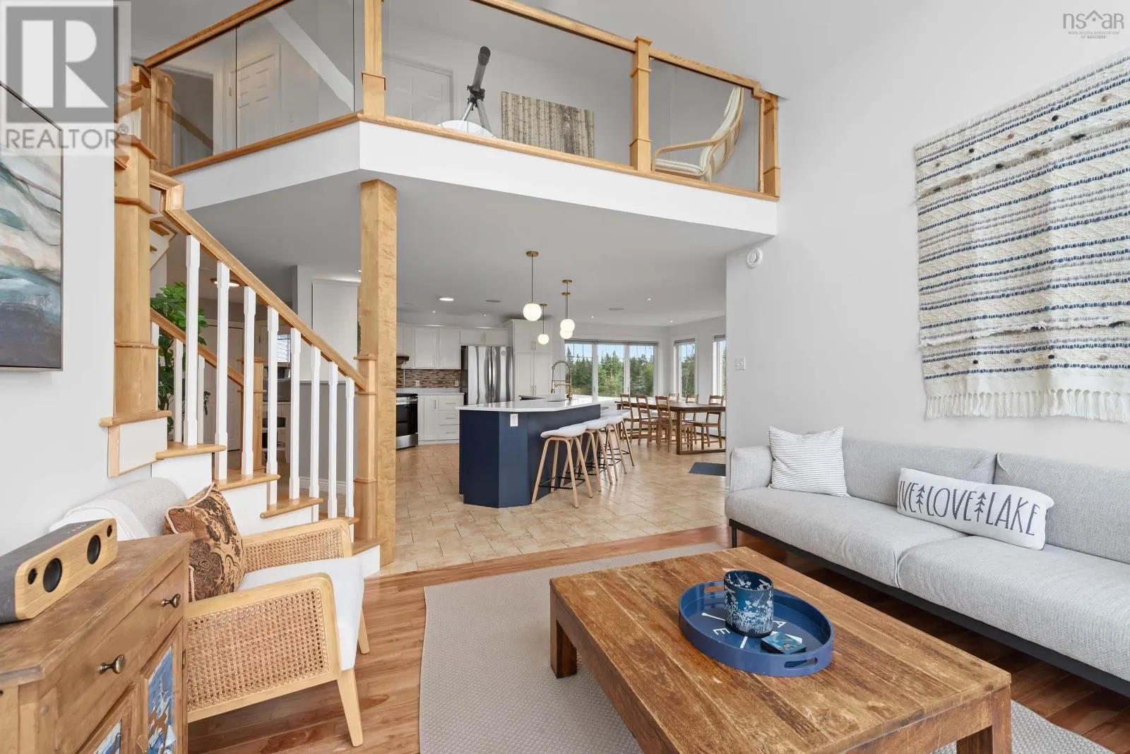 Hwy 207 to Emerald drive. First property on the left. Lakefront living reaches new heights with this stunning custom home set on a private 2-acre property along the shores of Nova Scotias largest lake. From the moment you arrive, the flat driveway and gentle slope to the water signal how effortlessly this property blends luxury with lifestyle ideal for launching your boat and creating unforgettable family memories on the expansive lawn and waterfront. Step inside to a welcoming foyer with a convenient mudroom off the oversized attached garage. The heart of the home is a bright, modern kitchen featuring a massive island and adjoining dining space perfect for entertaining. A cozy family room invites you to relax while soaking in serene lake views with your morning coffee. The main level also offers a spacious living room, access to two exceptional decks, a laundry room, and a full bath. Upstairs, retreat to your private primary suite complete with a walk-in closet and elegant four-piece ensuite. Two additional bedrooms each with generous closets and beautiful water views share another full bath, while a large storage room adds practical convenience. The walk-out lower level expands your living space with an oversized rec room designed for flexibility games, media, fitness, or all three. Guests will feel right at home in the fourth bedroom featuring its own walk-in closet and breathtaking lake vistas. An unfinished three-piece bath and utility room offer future potential. With coveted southwest exposure, the home is drenched in natural light and delivers spectacular sunset views night after night. Beyond the property, enjoy being just minutes from Lawrencetown Beach, renowned surfing spots, scenic walking trails, and an easy commute to Cole Harbour and Halifax. This is more than a home its a year-round waterfront lifestyle in one of Nova Scotias most sought-after settings. (id:27476)