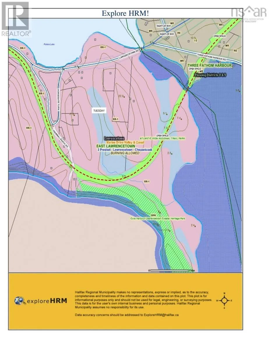 Easiest is to enter the trail from Three Fathom Harbour Road, cross the bridge over Rocky Run. The property begins on the other (Western) side of the bridge. A rare opportunity to own 40 acres on the ocean, so close to downtown Dartmouth/Halifax! This undisturbed acreage overlooking the harbour and the Atlantic ocean, is bordered by the Cross Canada Trail on the north and Provincial parkland on the south and has an estimated 4,000 feet of ocean frontage, woodland, some marshland, ponds and privacy. There is a Deeded common right of way off Highway 207 from horseshoe Turn along Terminal Beach Road. (id:27476)