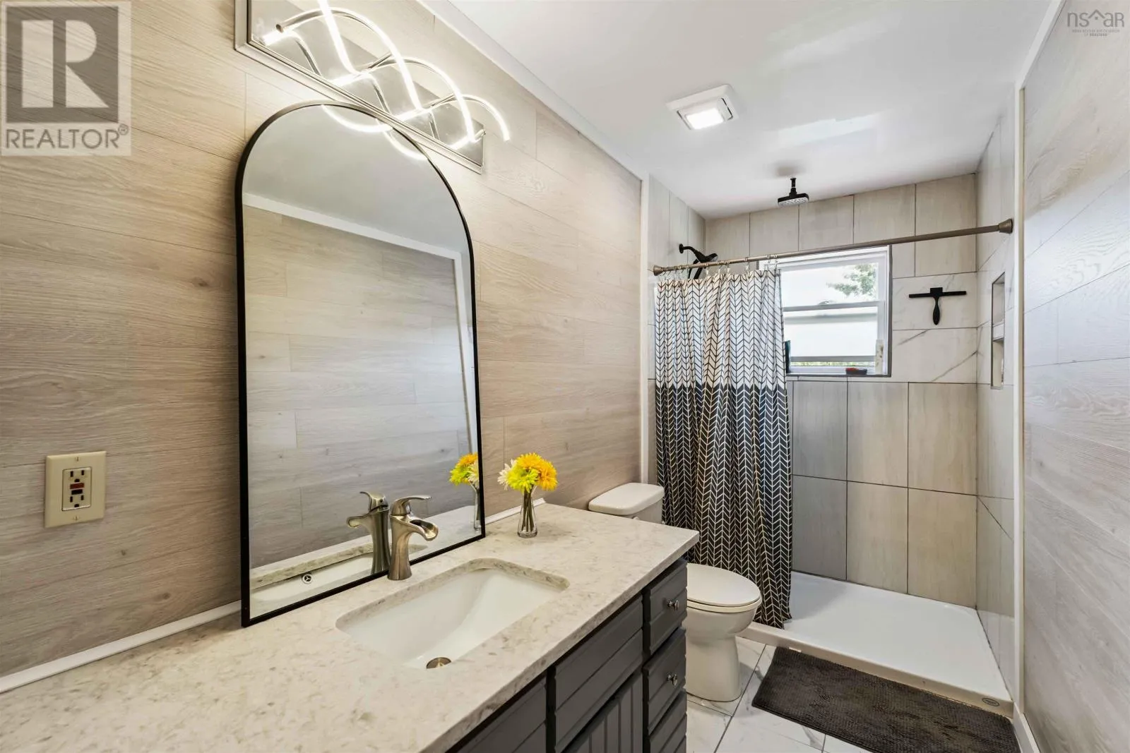 Hwy 101, exit 4, approx 5km, house on the left. Road is being redone, allow time for construction delays. Rentable Basement Apartment = Income Potential | Mortgage Helper Just 10 minutes from the charming riverside town of Windsor, this beautifully updated home blends serenity with amenities. Set on a quiet 0.3-acre lot with a gentle brook out back, it's a place to breathe deep and feel at home. The sun-filled main level features a spacious, renovated kitchen perfect for quiet mornings or entertaining guests. The living room leads to three comfortable bedrooms and a stunning new bathroom with quartz counters and walk-in, tiled shower. Step outside to a new 12'x12' deck ideal for morning coffee or evening stargazing. A heat pump ensures year-round comfort. Downstairs, a fully finished lower level offers flexibility: a large rec room, bonus den (or 4th bedroom), new 3-piece bath, and laundry. Plus, a brand new one-bedroom apartment with private entrance, kitchen with quartz counters and new appliances, laundry combo, and separate power meter/hot water tank perfect for in-laws, guests, or rental income. Backflow protecter and sump pump. A 14'x13' wired, insulated shed is included "as-is." Just 40 minutes to the airport and 50 to downtown Halifax, youre close to wineries, markets, and city culture yet a world away. This is more than a home its your next chapter. (id:27476)