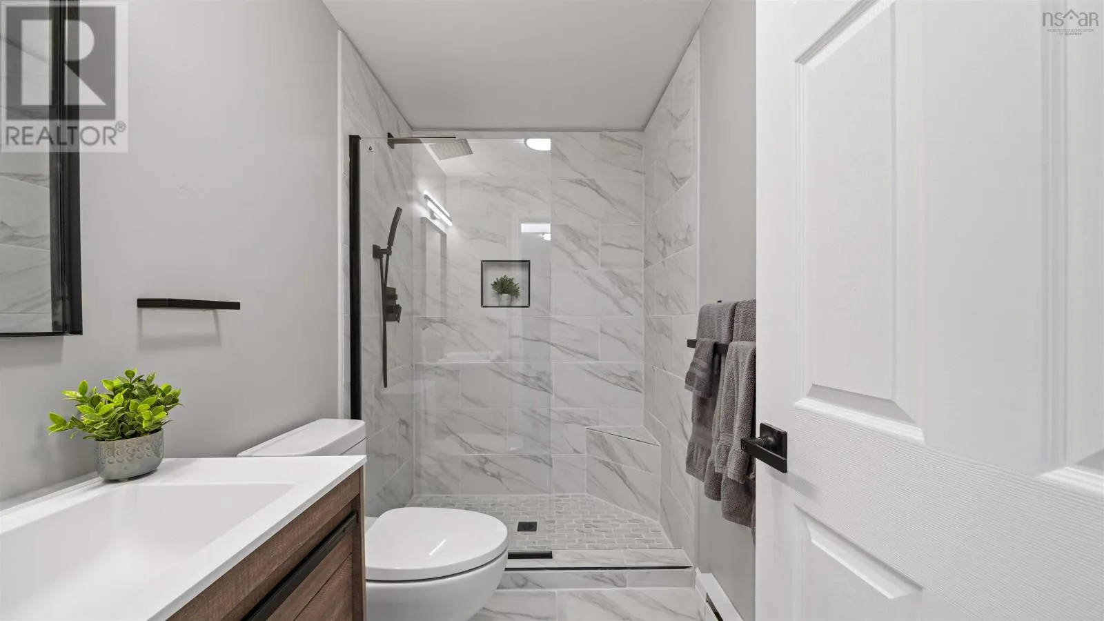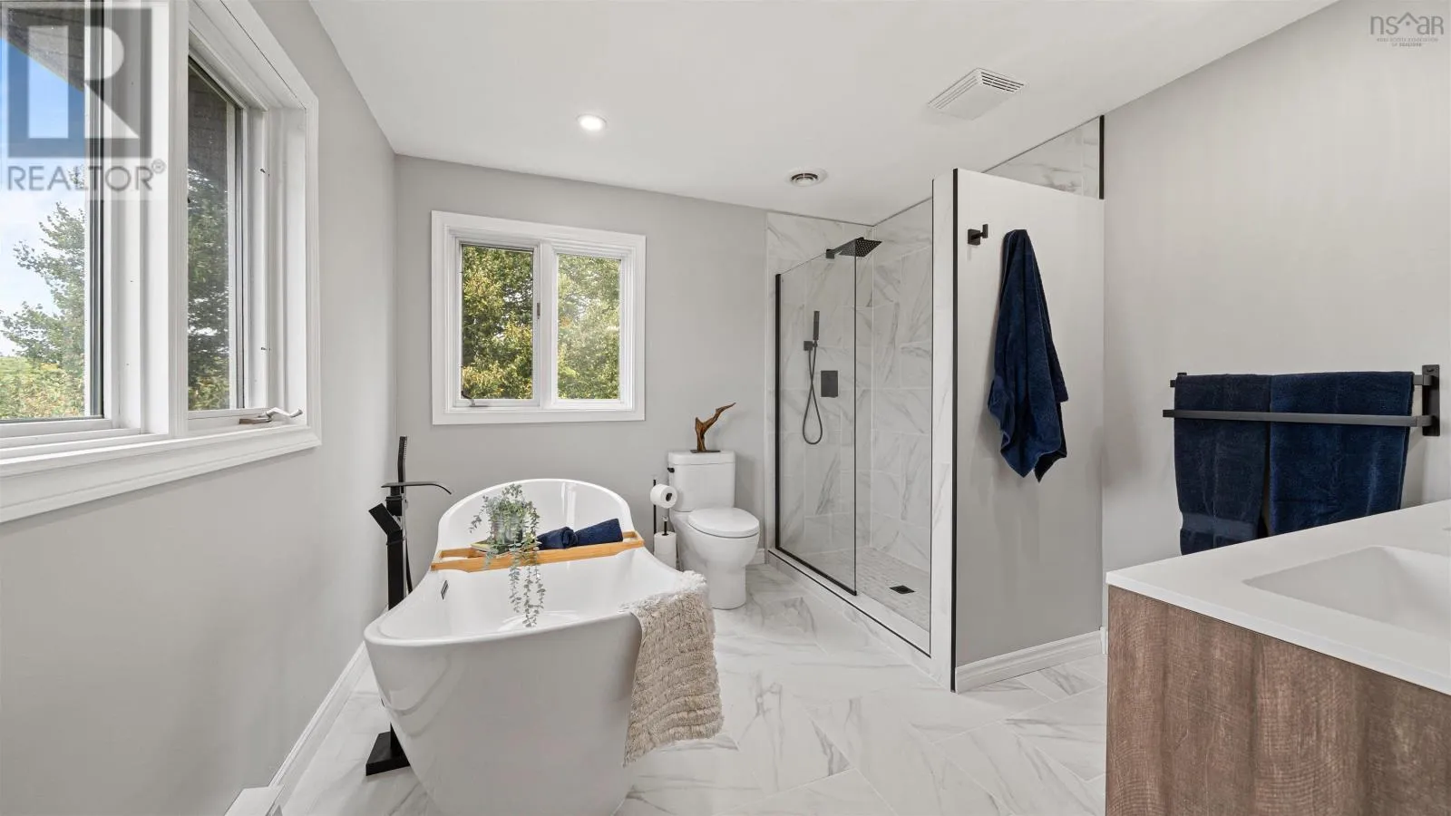 St Margarets Bay Rd. Welcome to this peaceful waterfront retreat that offers the best of both worlds with nature at your doorstep and city convenience just minutes away. Set on over half an acre with approximately 140 feet of lake frontage, this five-level side split looks out across the water to the protected Blue Mountain Birch Cove Lakes Wilderness Area. With no backyard neighbours except for the trees and local wildlife, it feels like a world away while still being close to everything. Inside, the home is warm, spacious, and thoughtfully updated. The main level features a formal dining room with hardwood floors and a large country-style kitchen with Corian countertops, stainless steel appliances, and patio doors leading to a private, tree-lined backyard. A bright home office offers space for remote work with a view. Upstairs, you'll find a sunny living room currently also used as a gym, three generous bedrooms, and a newly added primary ensuite with double sinks, a freestanding tub, and a beautiful glass and tile shower. The main bathroom has also been updated with a modern touch. On the lower level, a cozy family room with a woodstove, bar, and patio doors is perfect for relaxing or entertaining. The basement features a one-bedroom secondary suite, ideal for extended family, guests, or potential income. Just across the road, youll find the BLT Trail and a public transit stop, making it easy to enjoy outdoor adventures or commute to downtown Halifax. This home offers space to grow, places to unwind, and a setting that invites you to slow down and truly feel at home. (id:27476)