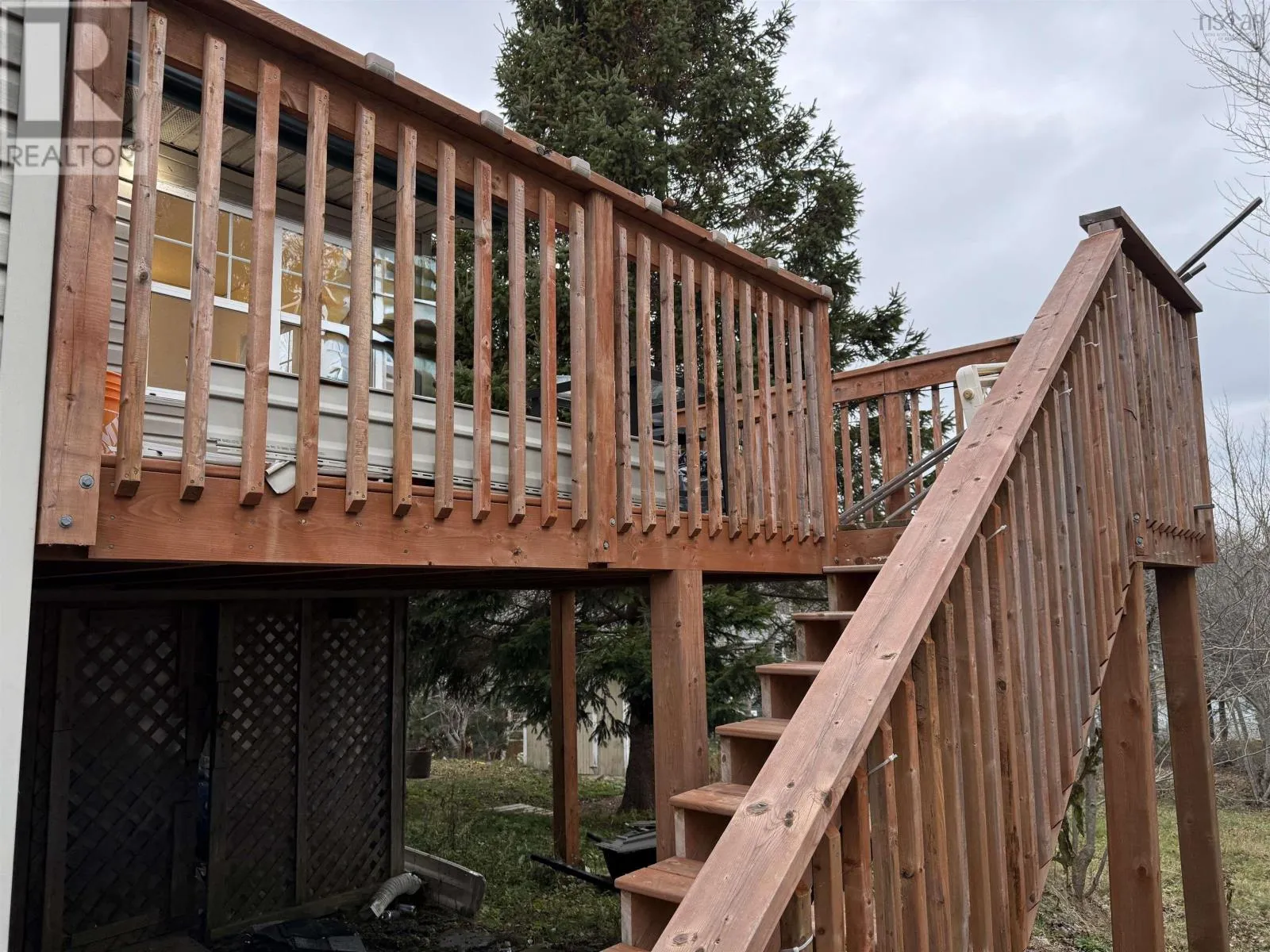 St Margarets Bay Rd to Governors Lake Dr to Mathers Court Welcome to 16 Mathers Court, a charming 3-bedroom semi-detached home located on a quiet cul-de-sac in Timberleas Governors Lake subdivision. This property features an extra-large lot, upgraded light fixtures, lake views, and a bright open-concept layout ideal for family living. The main floor includes a spacious kitchen and dining area open to the living room, along with a lovely sunroom offering access to the new deck (2025) and backyard. The lower level includes all three bedrooms, a full bath, and laundry facilities. Extra large lot with two shed (one with power) and large enough for a potential garage. Two heat pumps provides efficient heating and summer cooling. Conveniently located minutes from Bayers Lake, The Links at Brunello, and just a short commute to downtown Halifax. Walking trails, daycares, schools, and shopping are nearby. A great opportunity for first-time buyers, investors, or those looking to downsize. (id:27476)